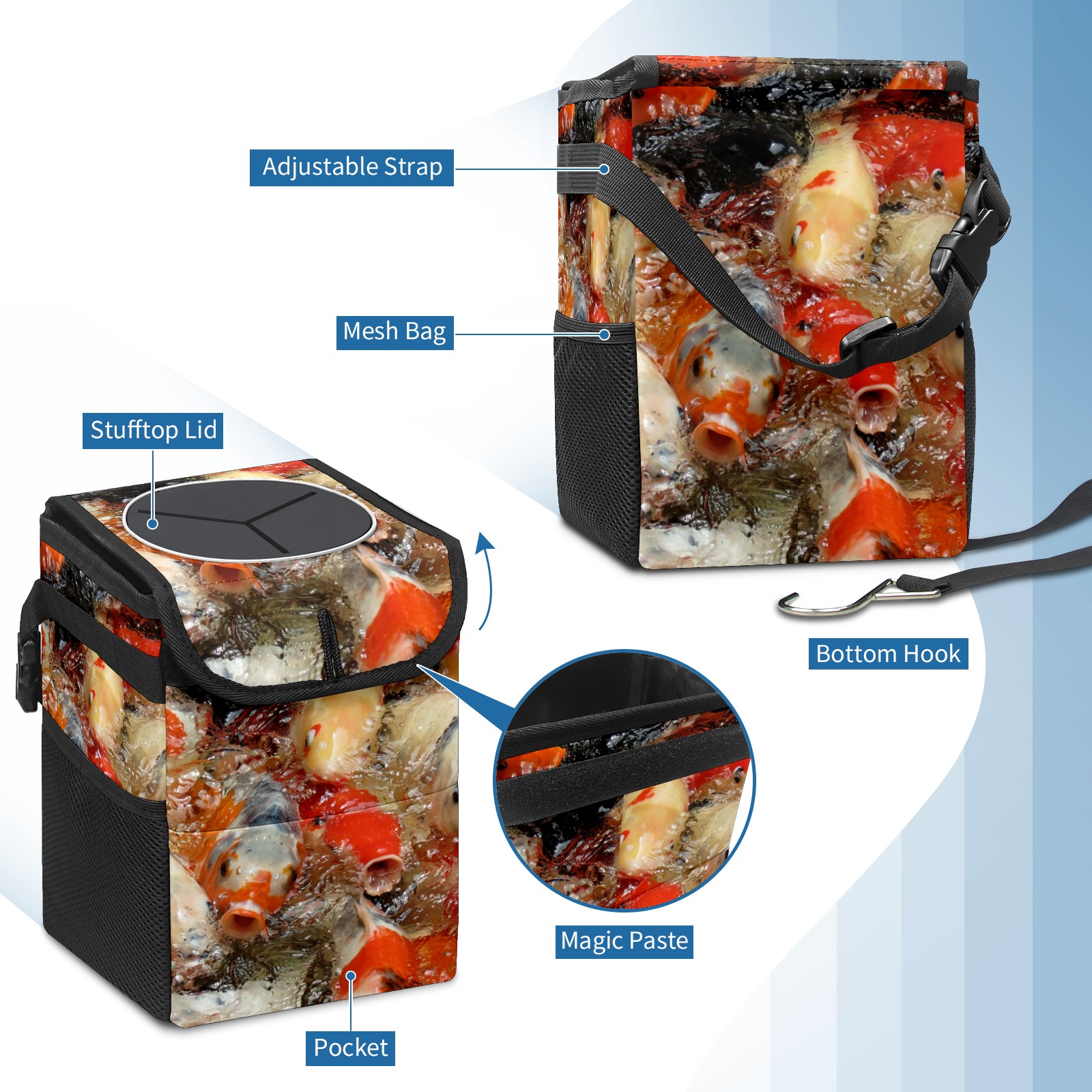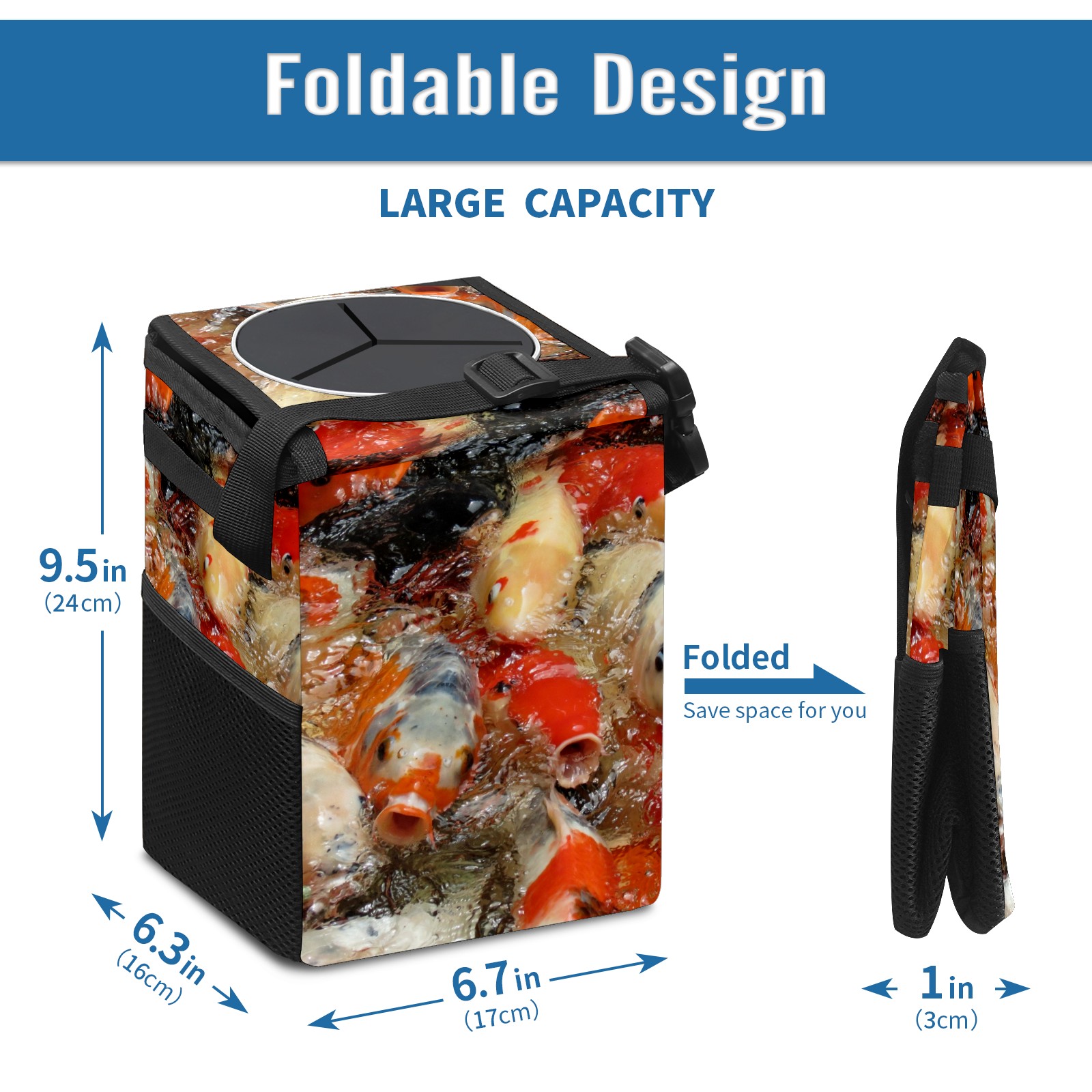 Car Garbage Can — Multi-functional, Lightweight Portable, Reusable Vehicle Trash Can, Waterproof with Sufficient Storage Capacity Color Carp