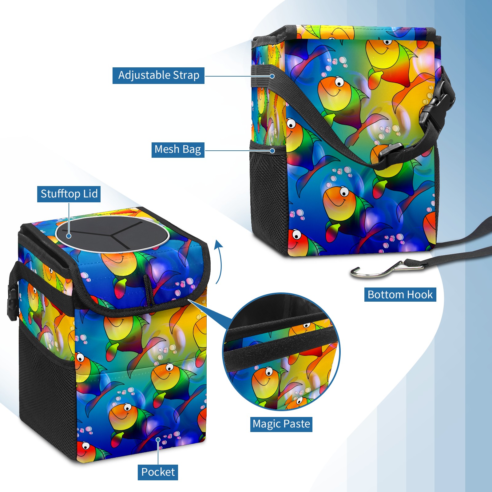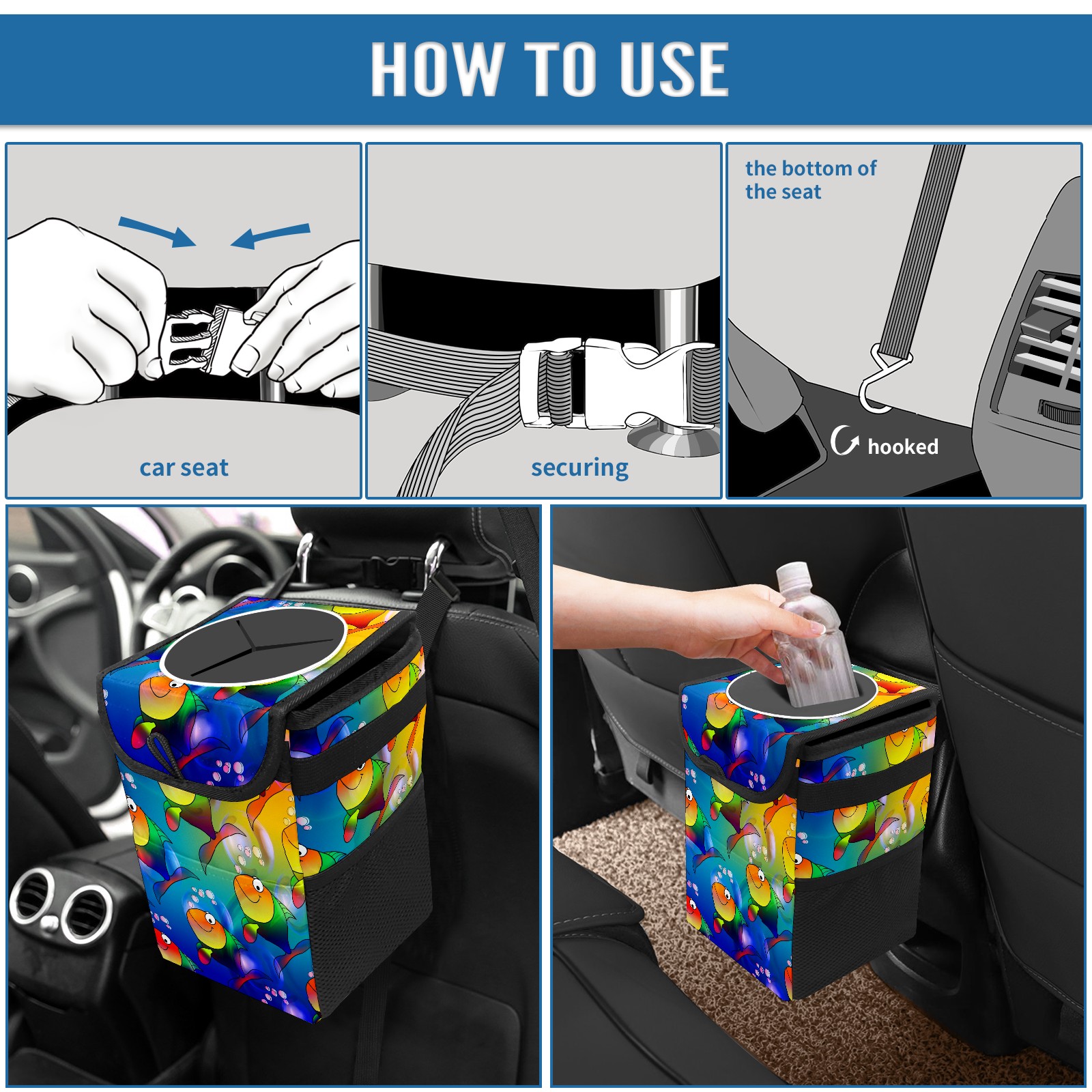 Car Garbage Can — Multi-functional, Lightweight Portable, Reusable Vehicle Trash Can, Waterproof with Sufficient Storage Capacity Abstract Fish