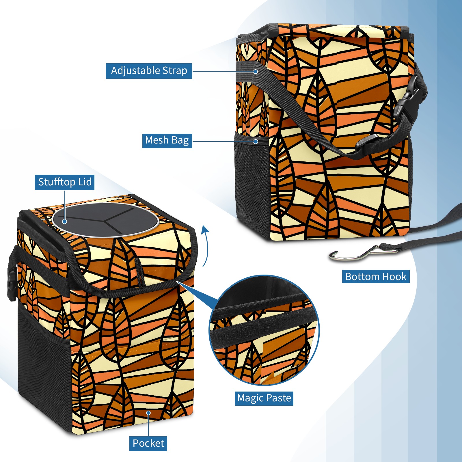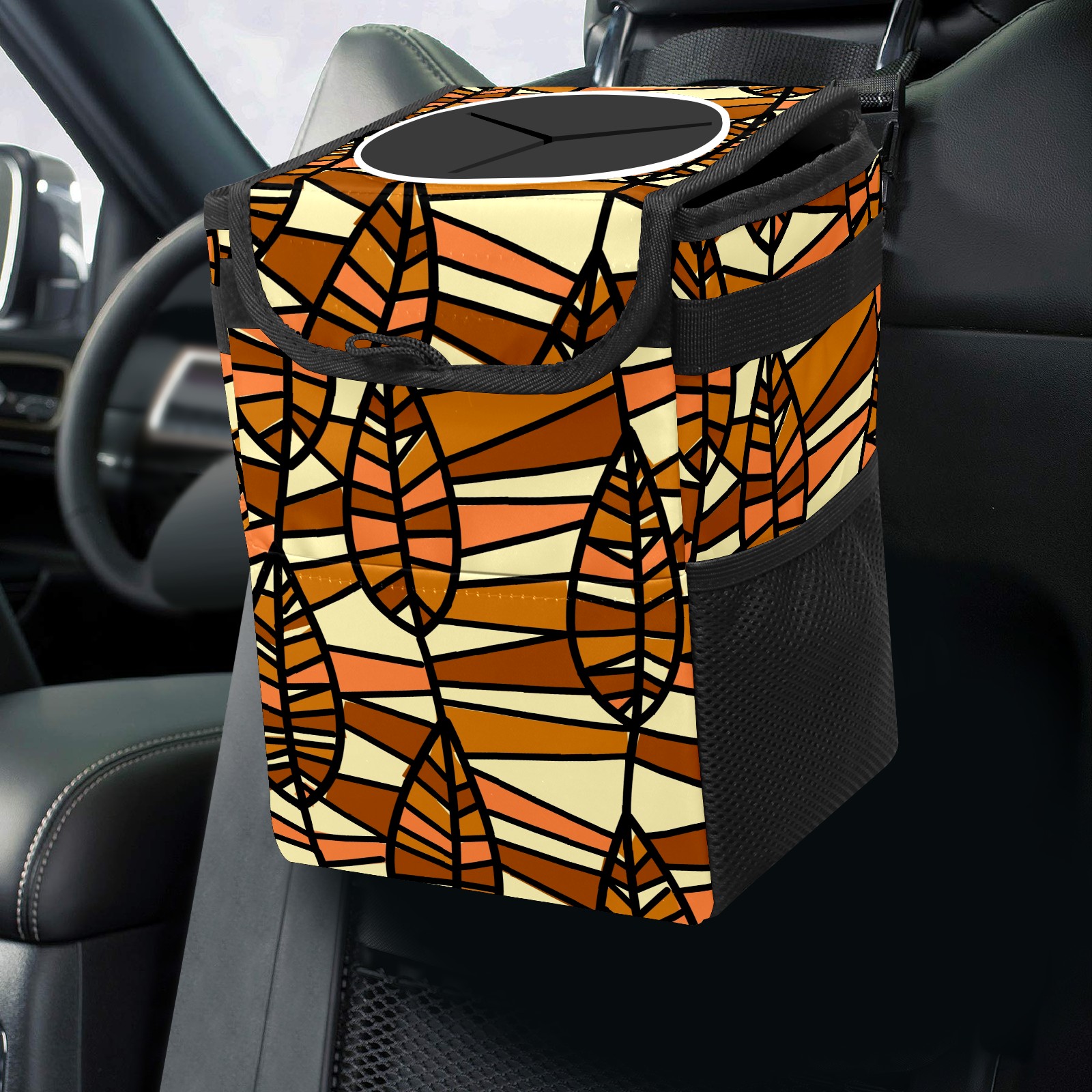 Car Garbage Can — Multi-functional, Lightweight Portable, Reusable Vehicle Trash Can, Waterproof with Sufficient Storage Capacity Autumn Leaf
