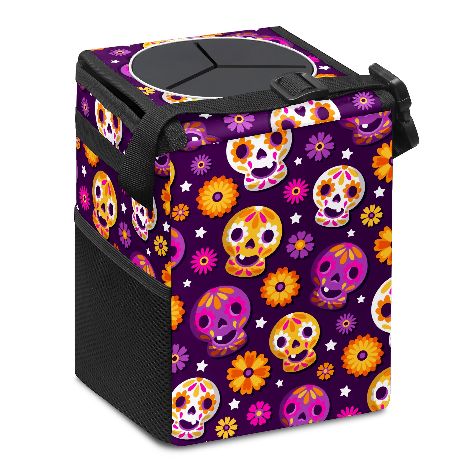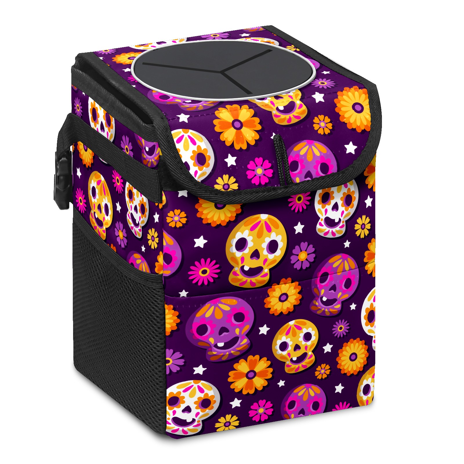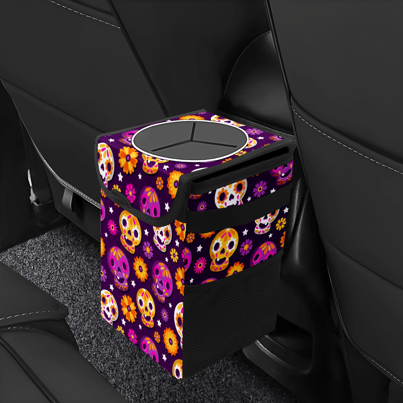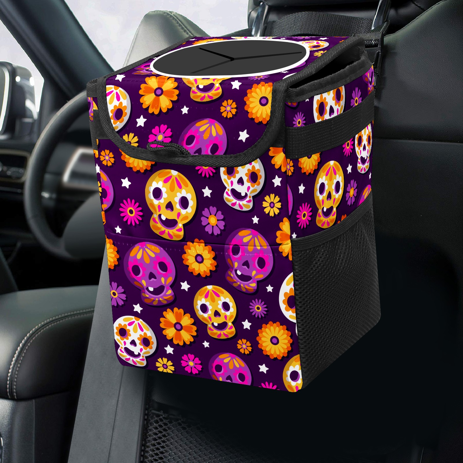 Car Garbage Can — Multi-functional, Lightweight Portable, Reusable Vehicle Trash Can, Waterproof with Sufficient Storage Capacity Flower Skull