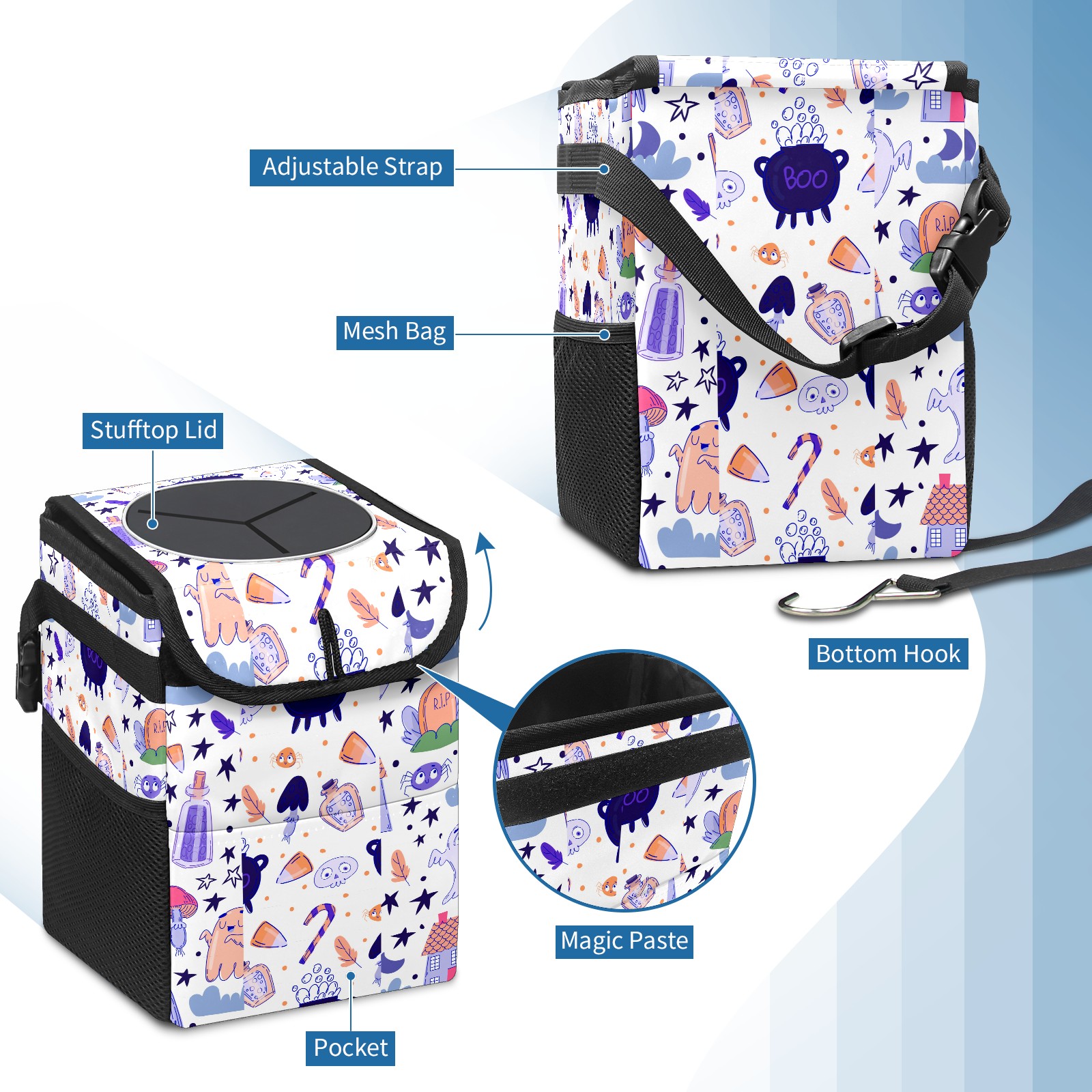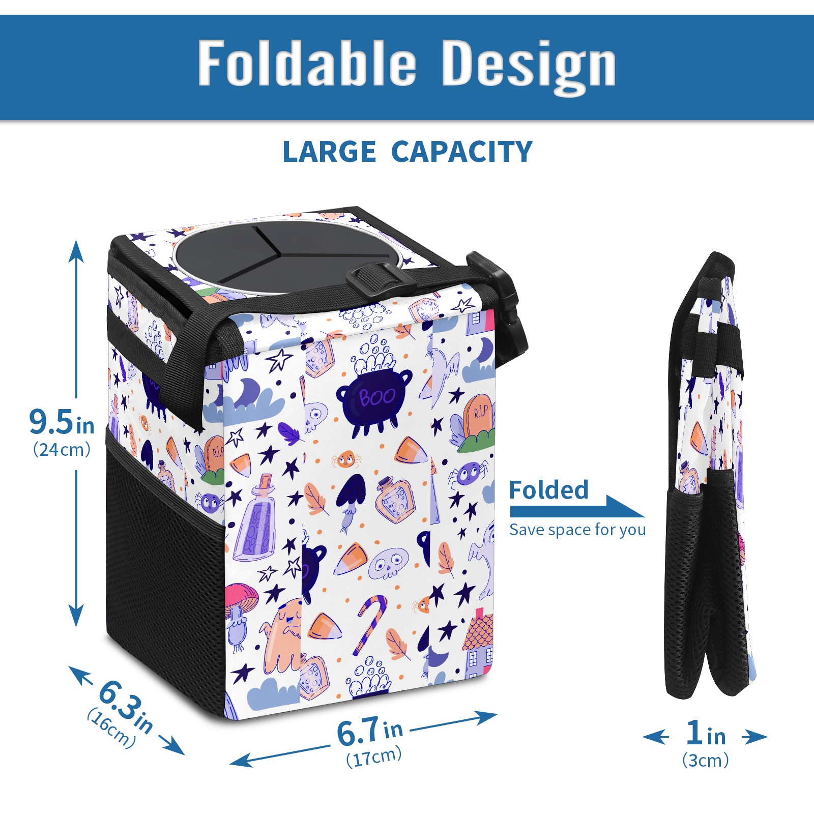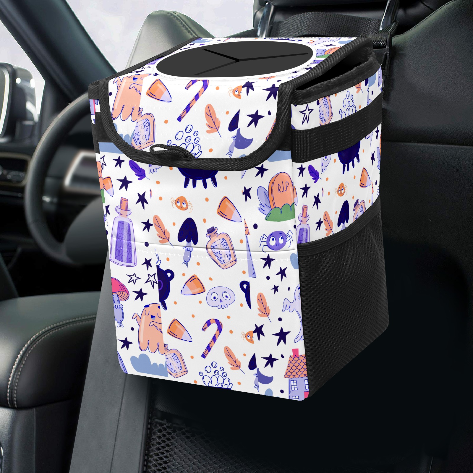 Car Garbage Can — Multi-functional, Lightweight Portable, Reusable Vehicle Trash Can, Waterproof with Sufficient Storage Capacity Ghost Broom