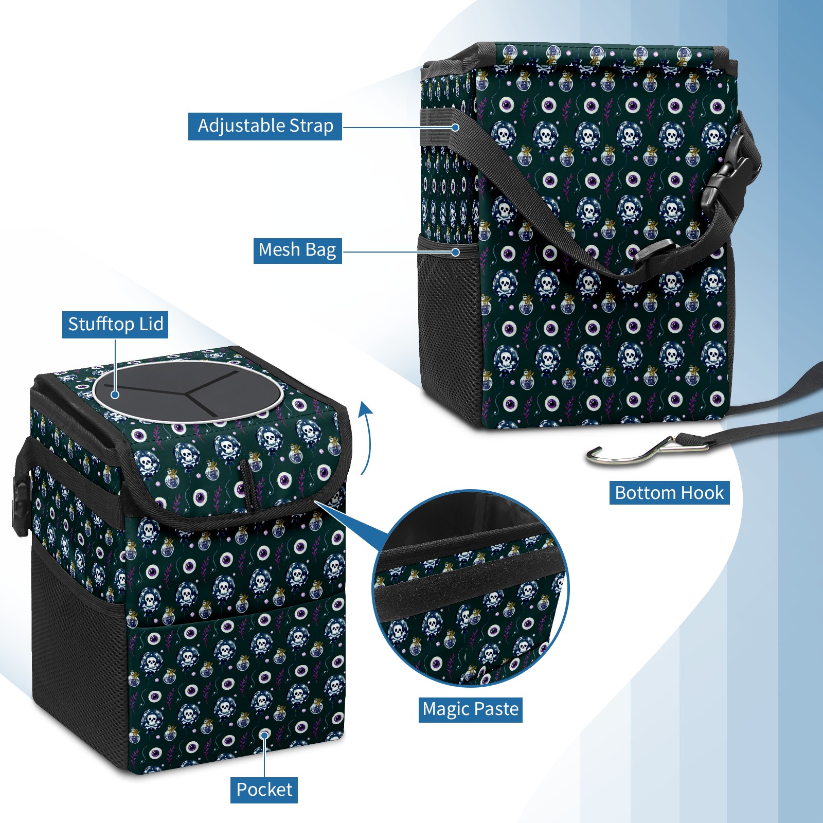 Car Garbage Can — Multi-functional, Lightweight Portable, Reusable Vehicle Trash Can, Waterproof with Sufficient Storage Capacity Skull Eye