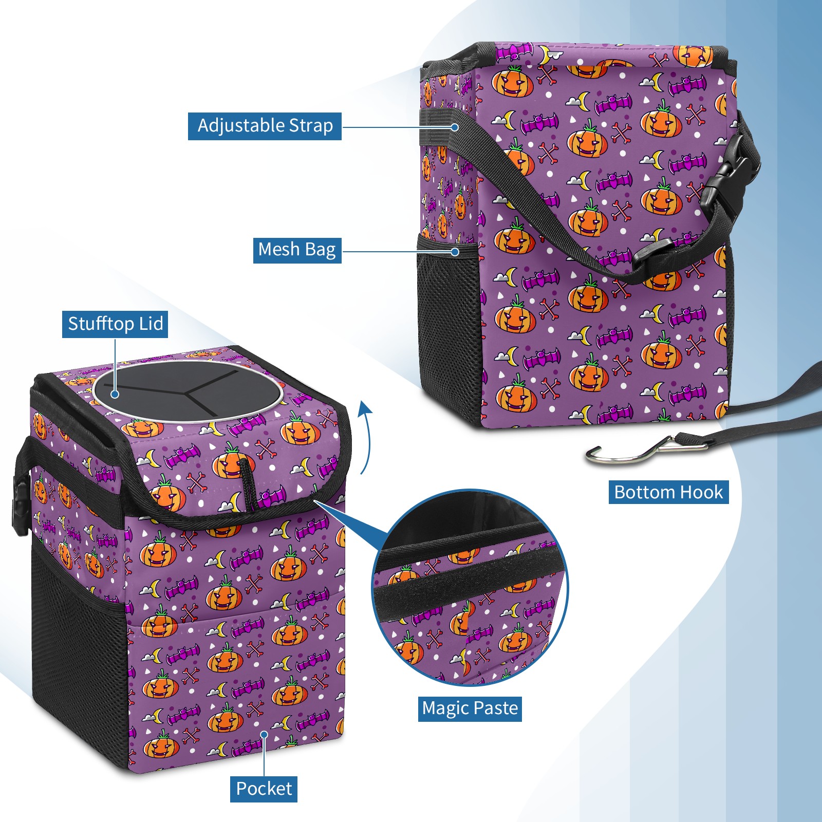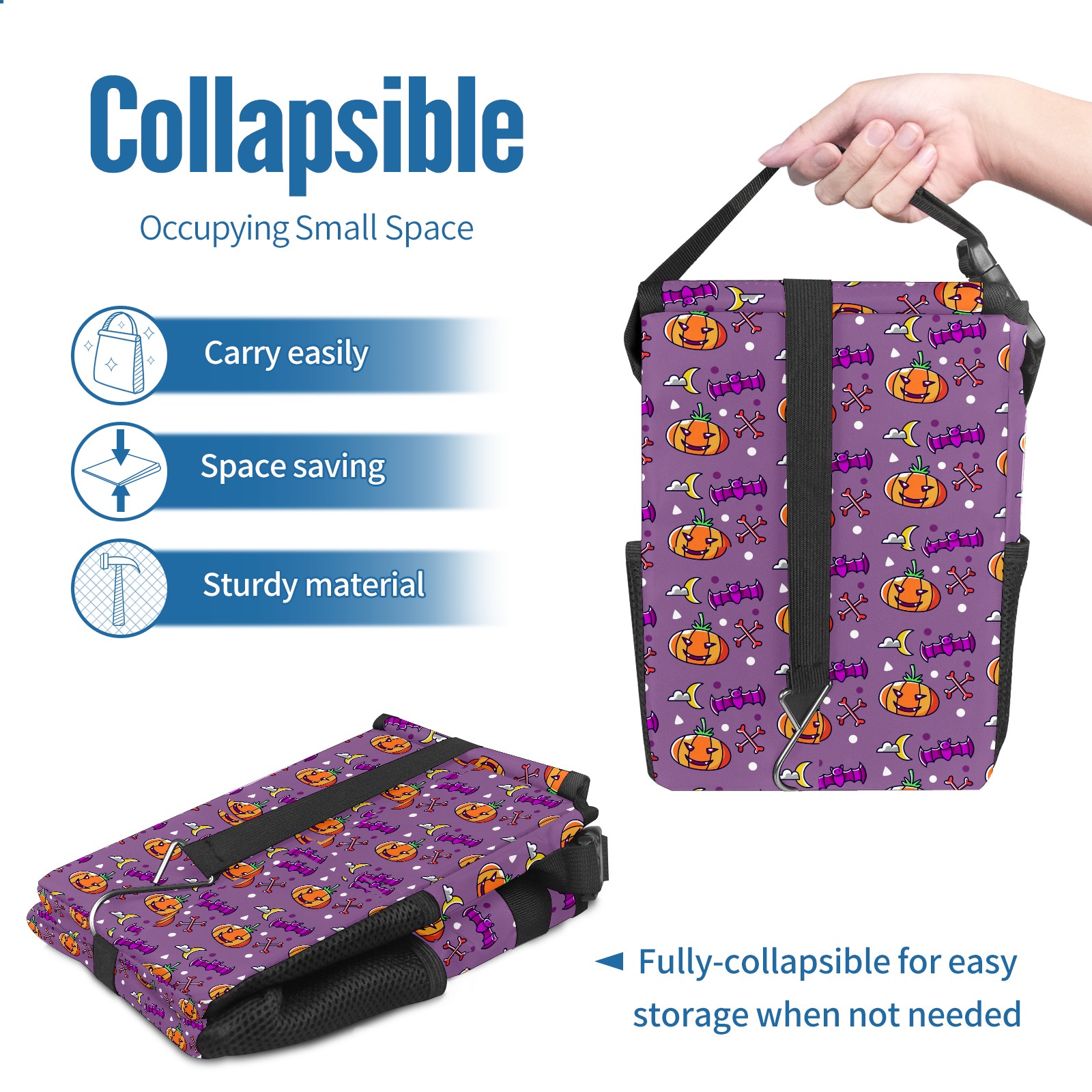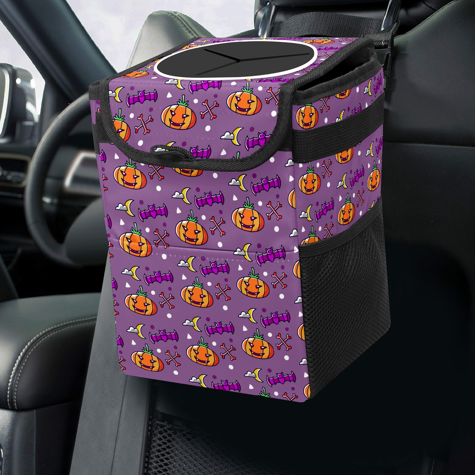 Car Garbage Can — Multi-functional, Lightweight Portable, Reusable Vehicle Trash Can, Waterproof with Sufficient Storage Capacity Pumpkin Pattern