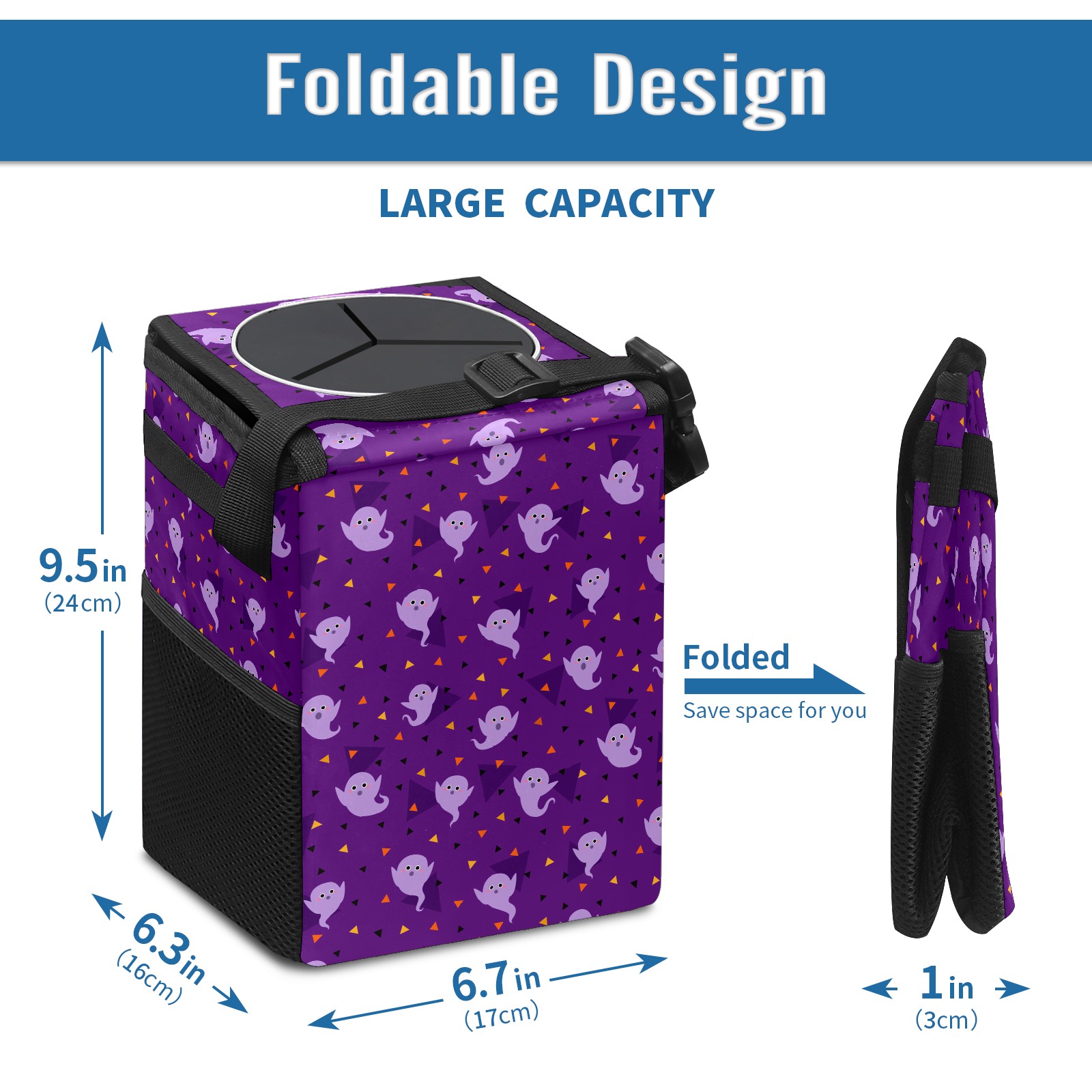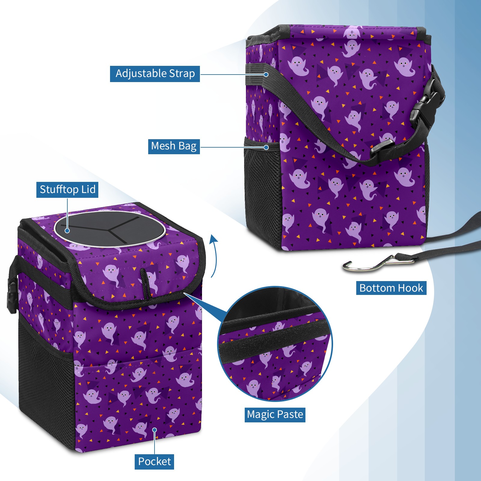 Car Garbage Can — Multi-functional, Lightweight Portable, Reusable Vehicle Trash Can, Waterproof with Sufficient Storage Capacity Purple Ghost
