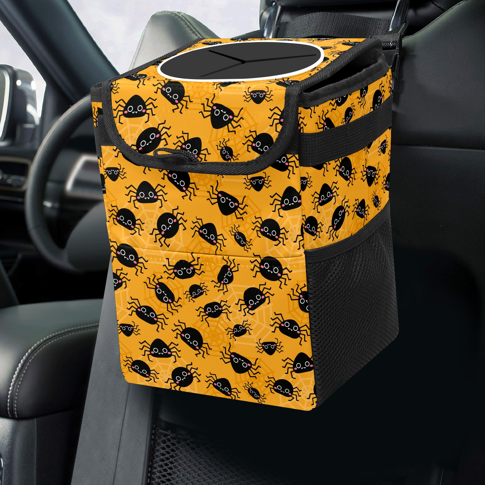 Car Garbage Can — Multi-functional, Lightweight Portable, Reusable Vehicle Trash Can, Waterproof with Sufficient Storage Capacity Black Spider