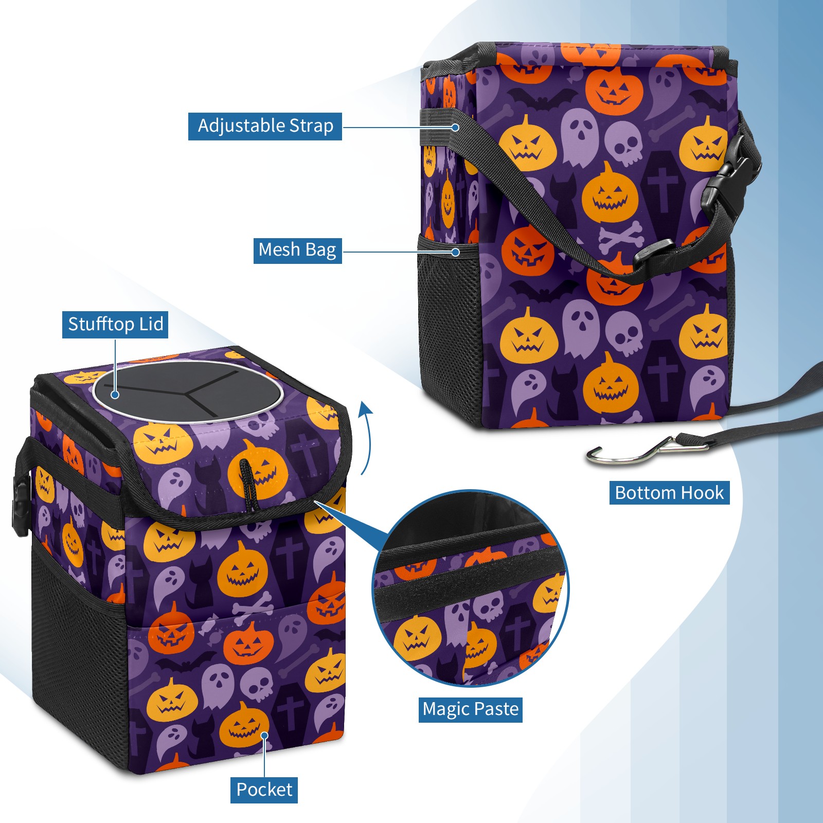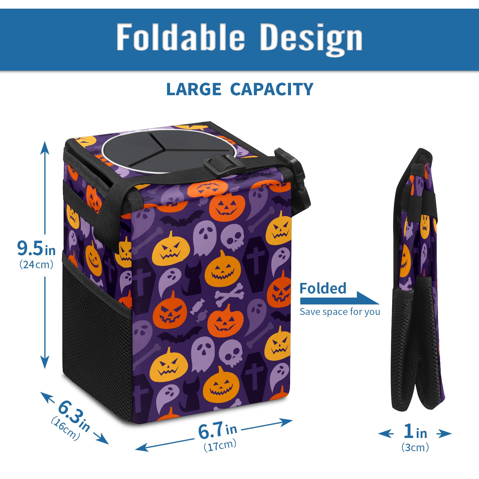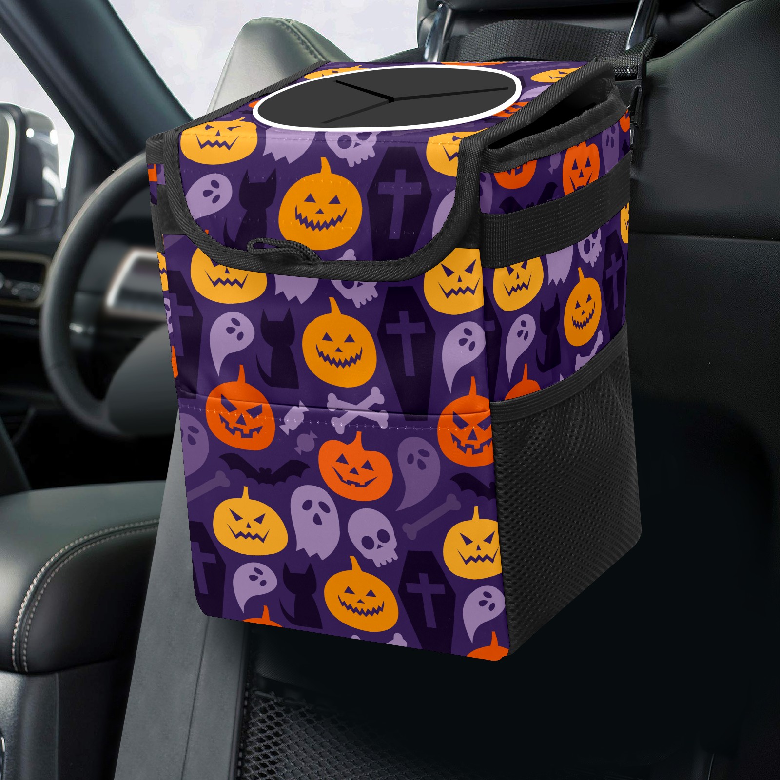 Car Garbage Can — Multi-functional, Lightweight Portable, Reusable Vehicle Trash Can, Waterproof with Sufficient Storage Capacity Pumpkin Ghost