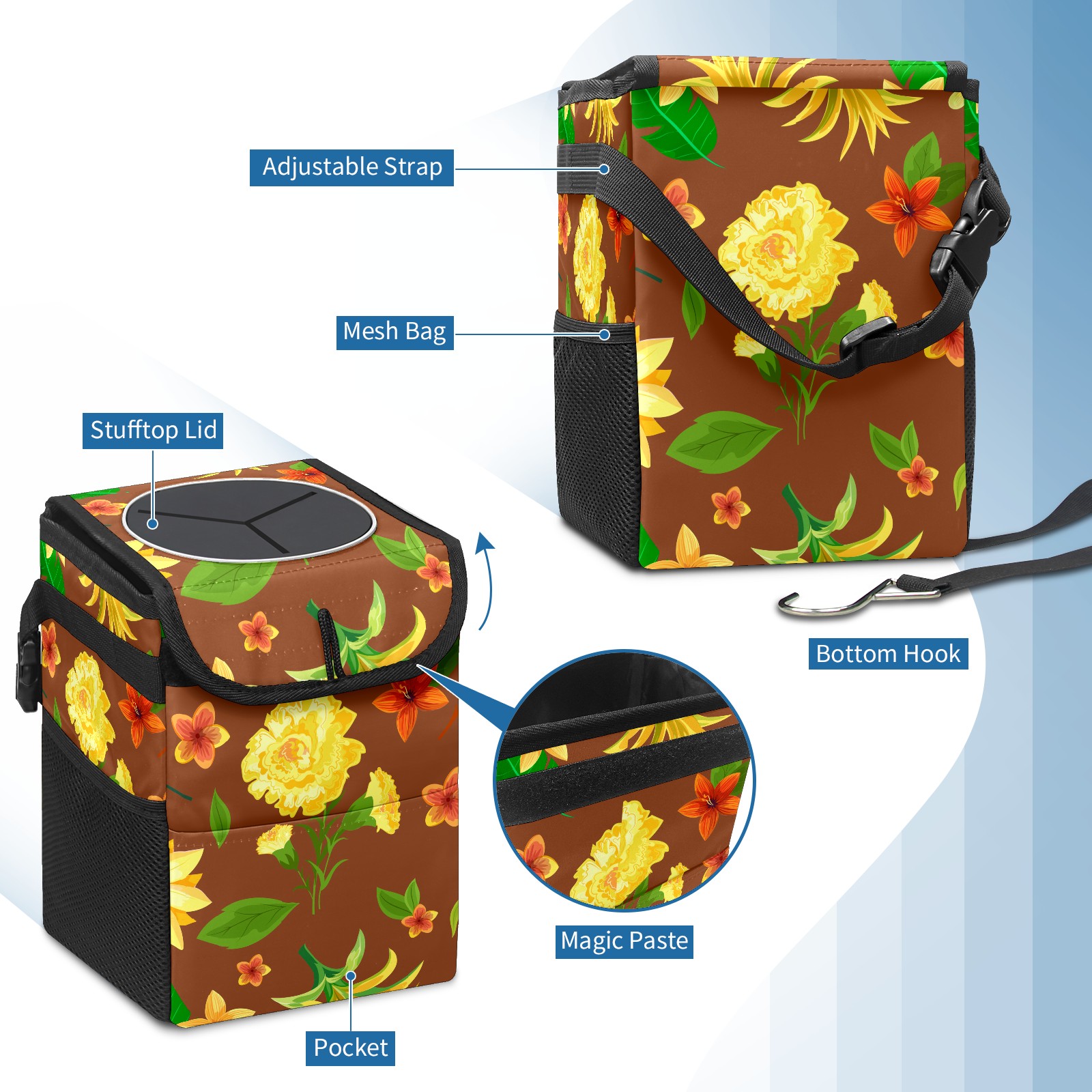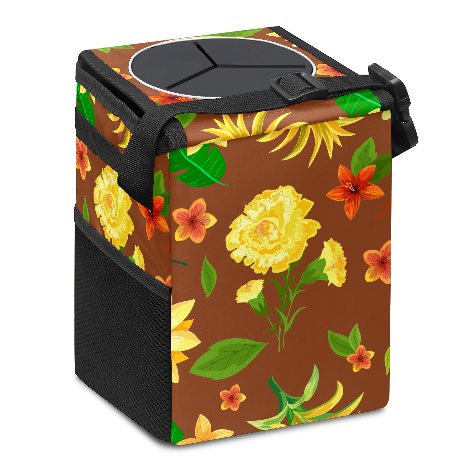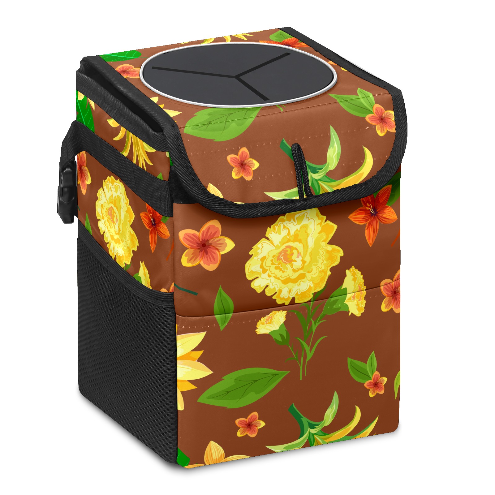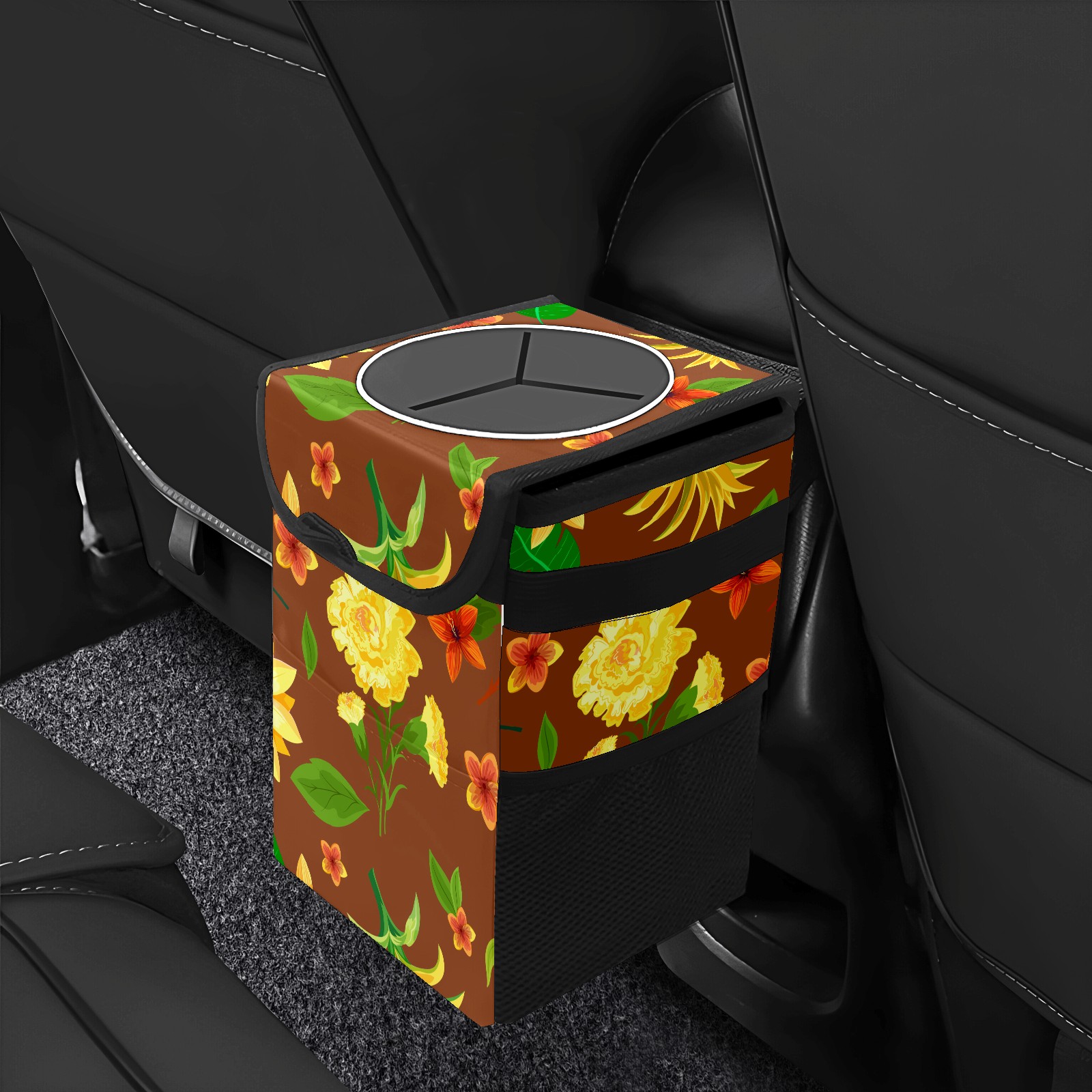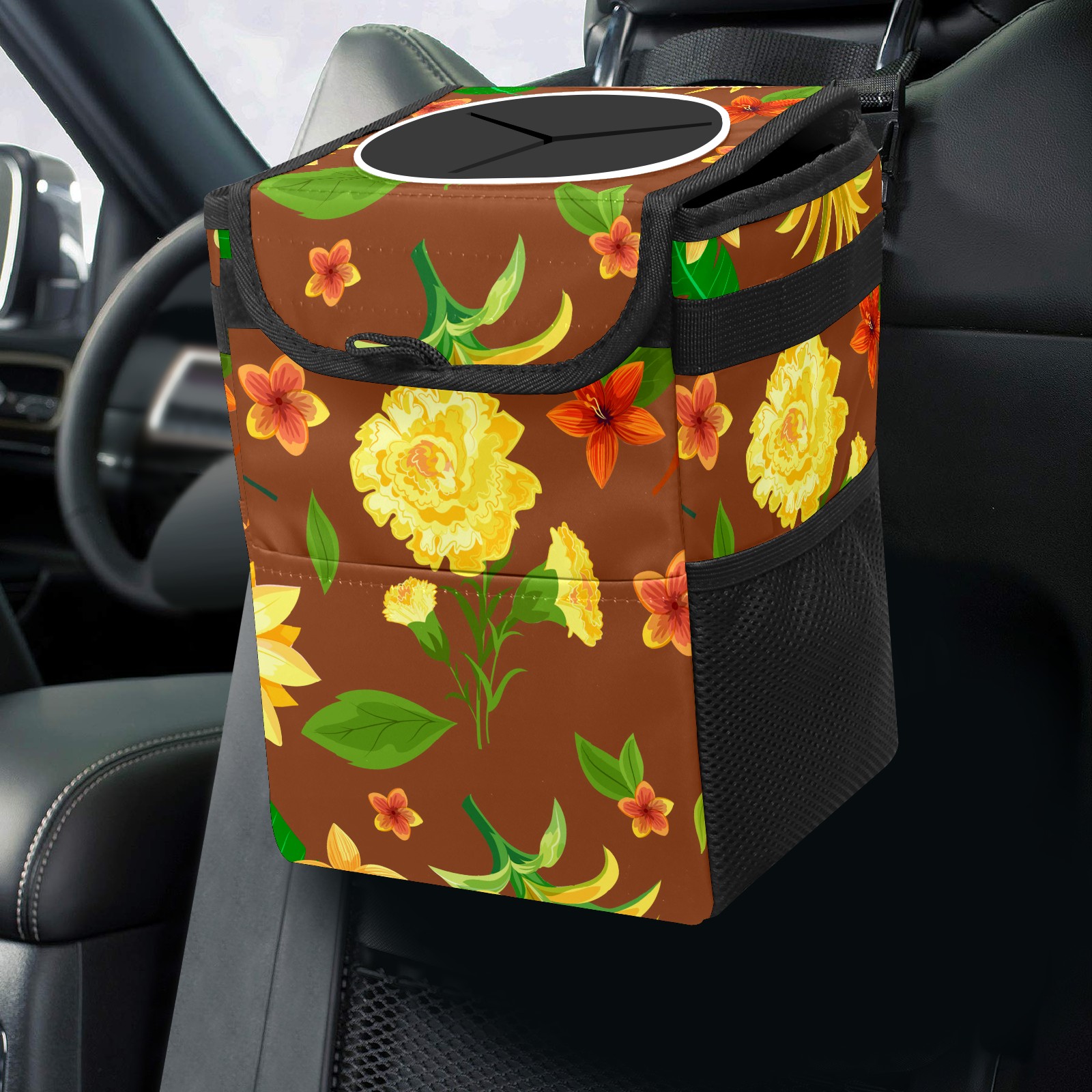 Car Garbage Can — Multi-functional, Lightweight Portable, Reusable Vehicle Trash Can, Waterproof with Sufficient Storage Capacity Yellow Flower