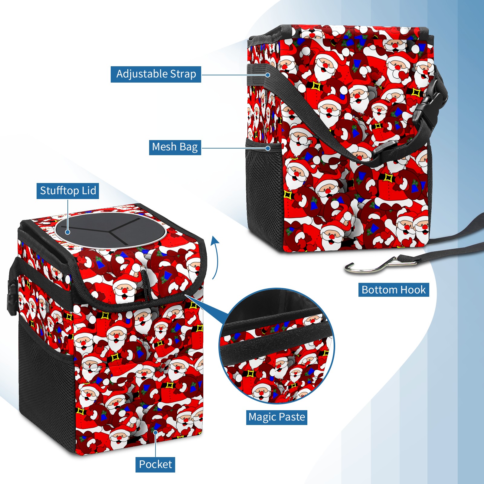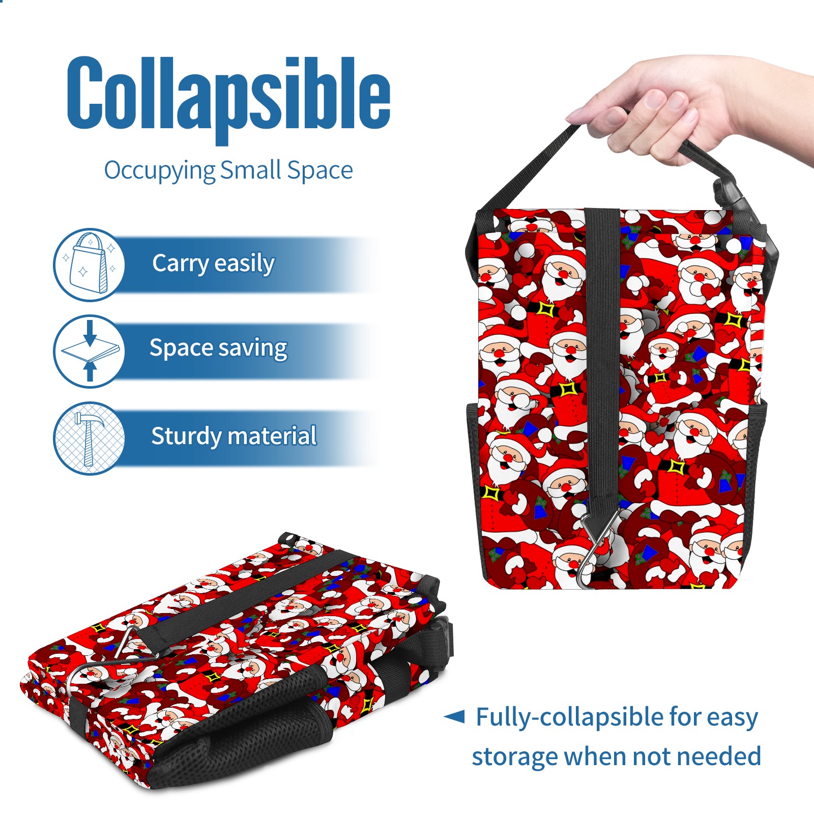 Car Garbage Can — Multi-functional, Lightweight Portable, Reusable Vehicle Trash Can, Waterproof with Sufficient Storage Capacity Santa Claus