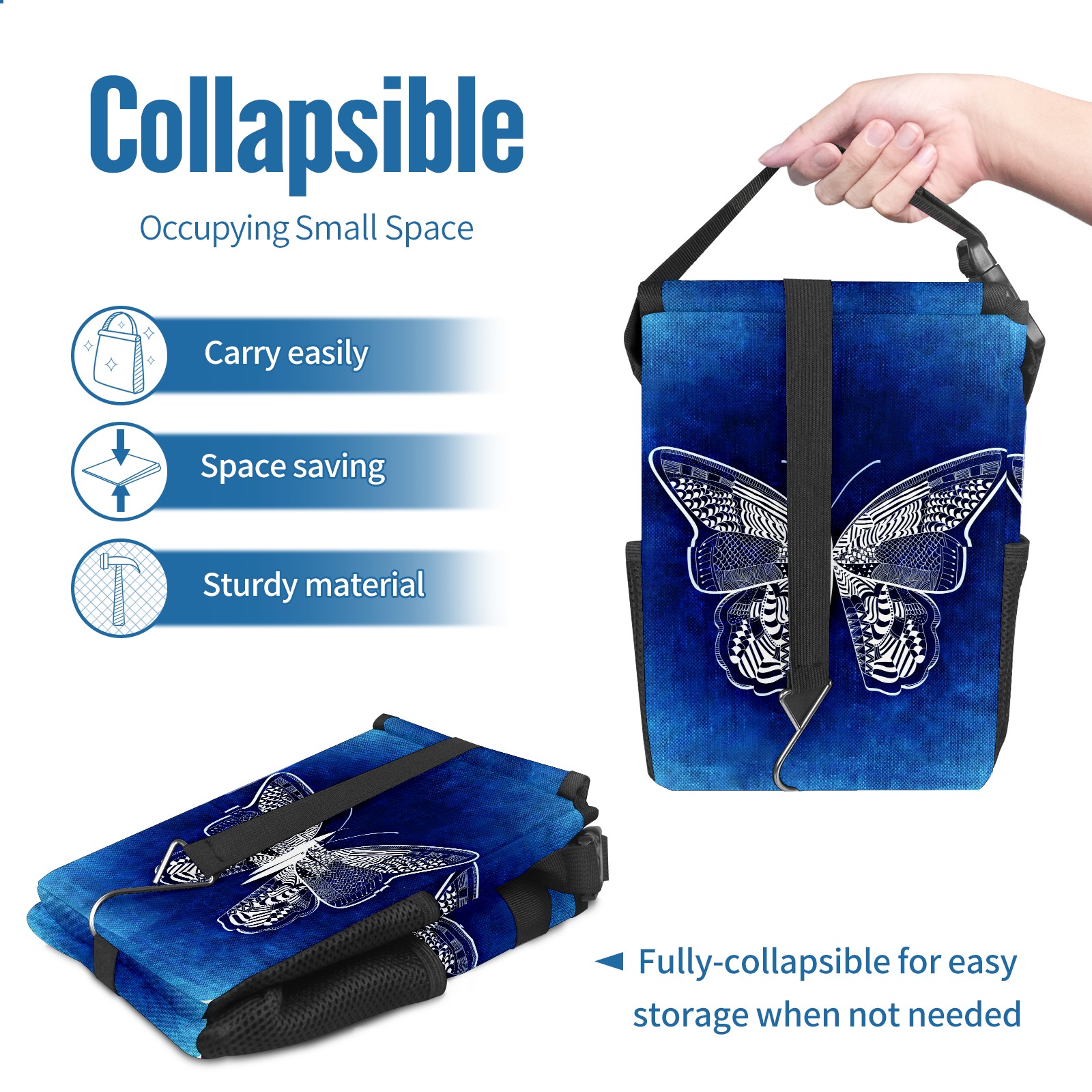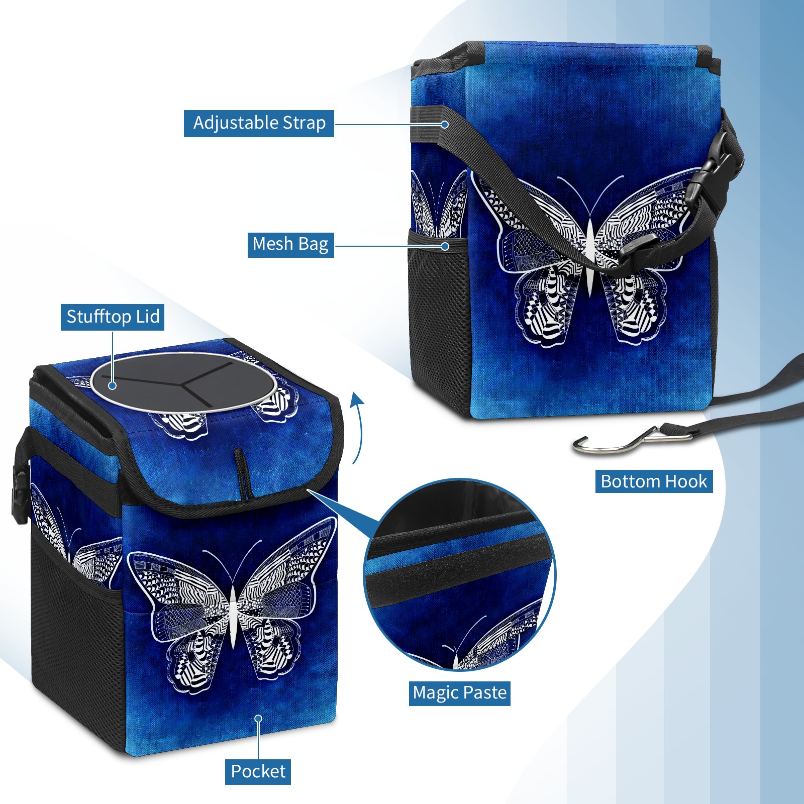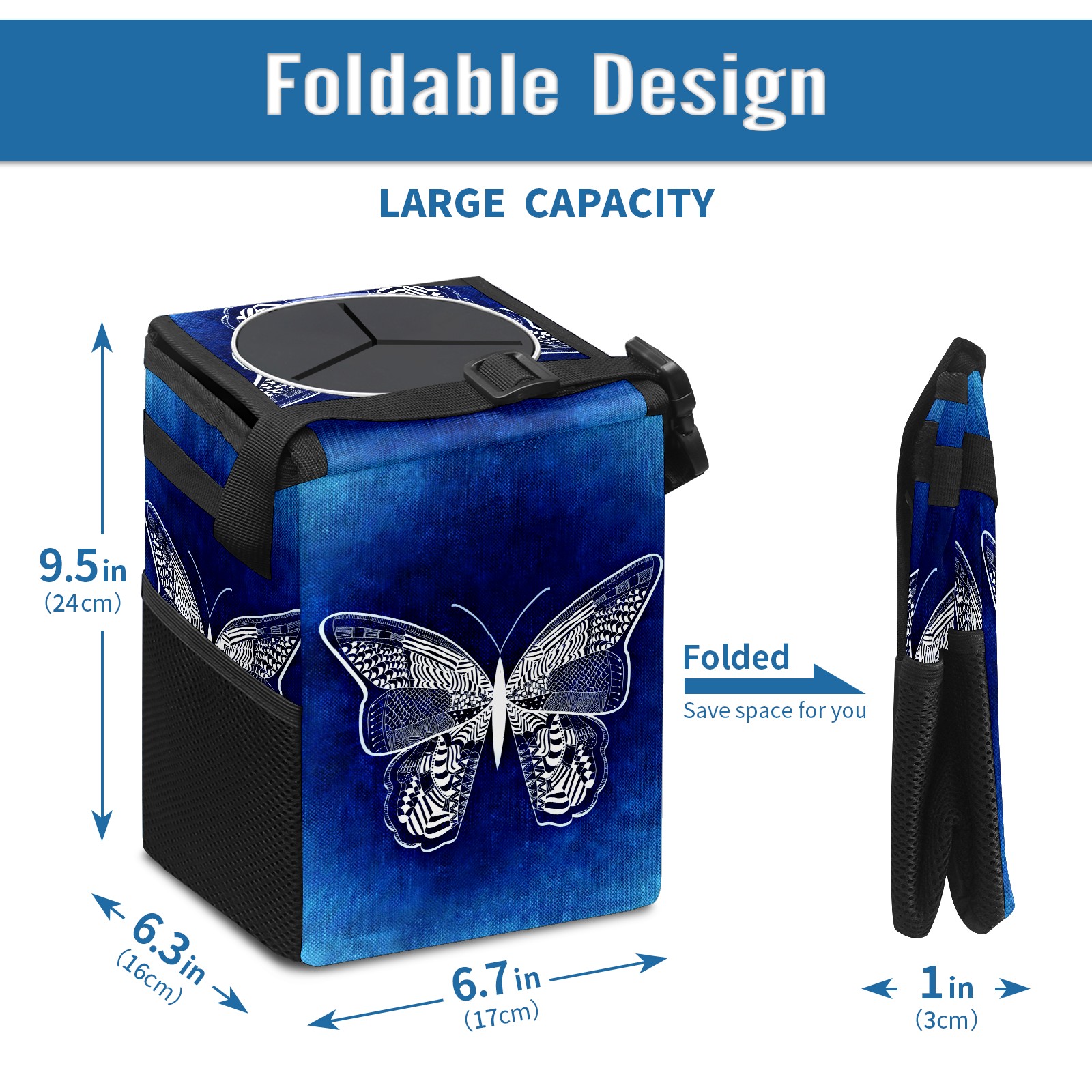 Car Garbage Can — Multi-functional, Lightweight Portable, Reusable Vehicle Trash Can, Waterproof with Sufficient Storage Capacity Art Butterfly