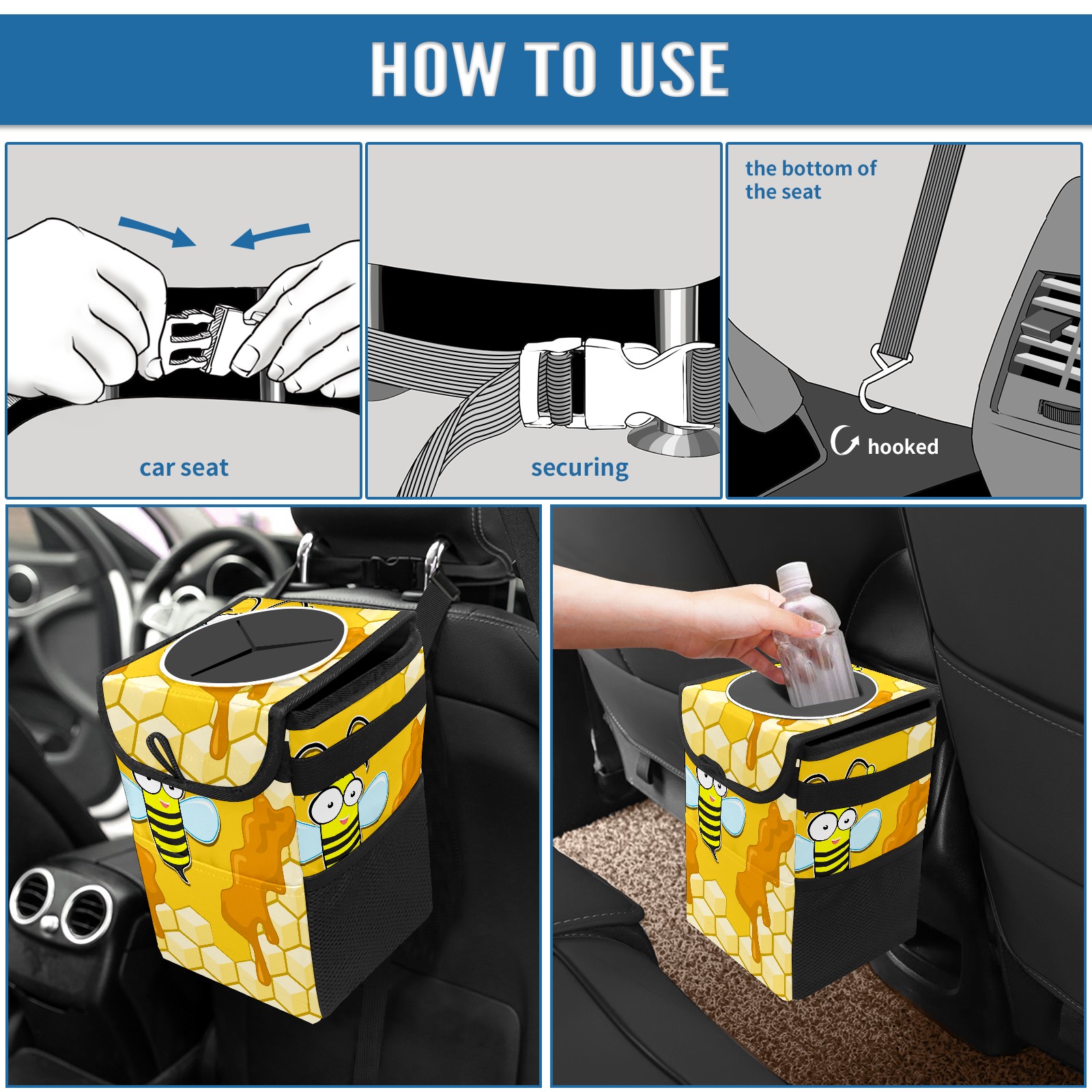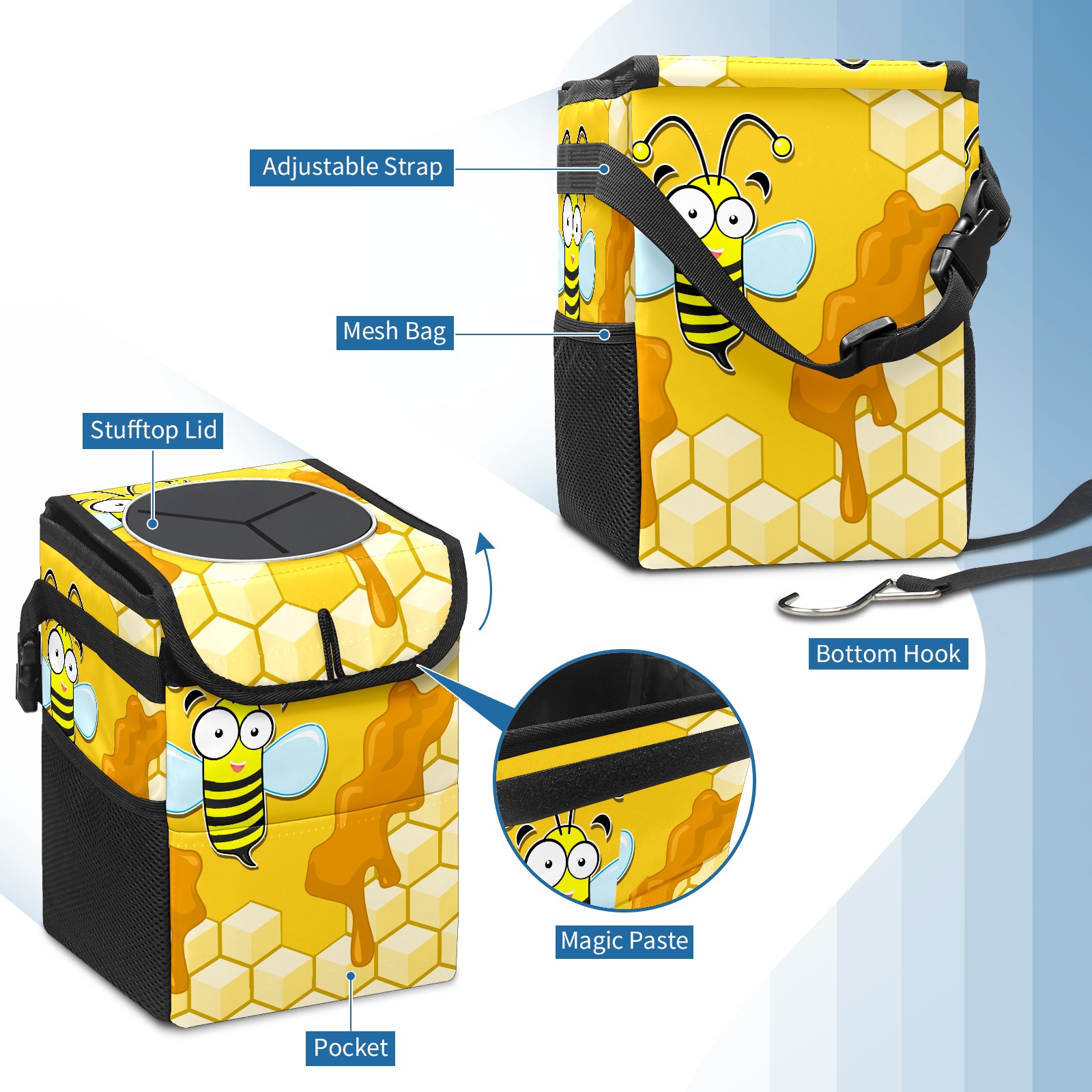 Car Garbage Can — Multi-functional, Lightweight Portable, Reusable Vehicle Trash Can, Waterproof with Sufficient Storage Capacity Bee Honeycomb