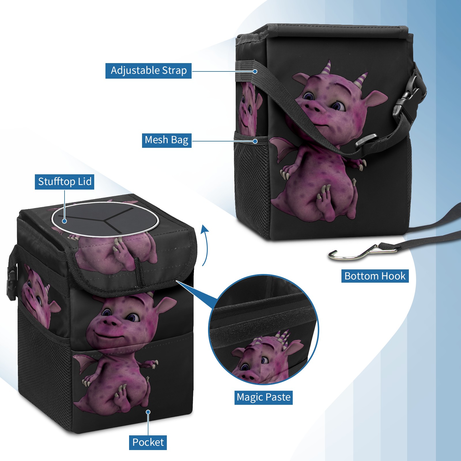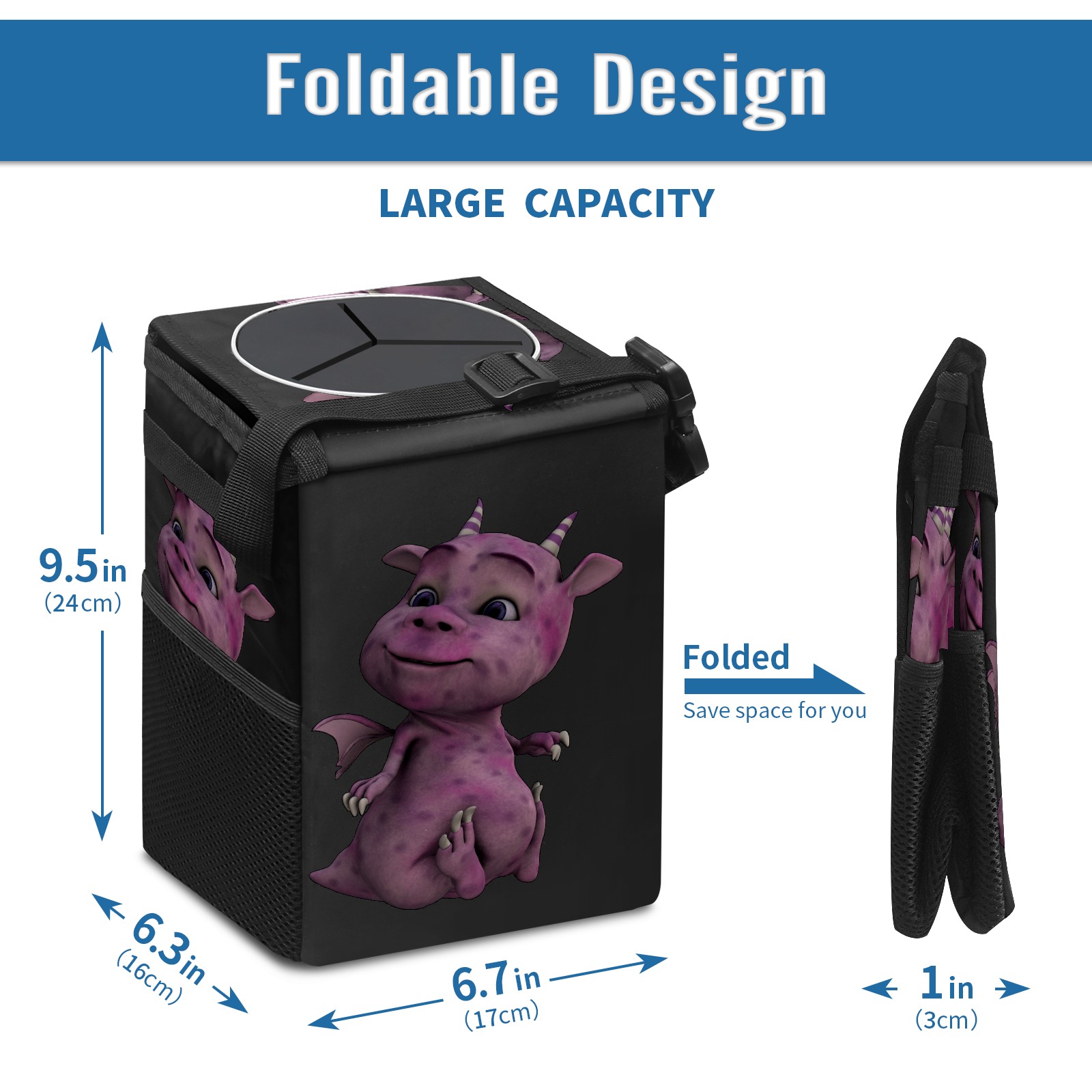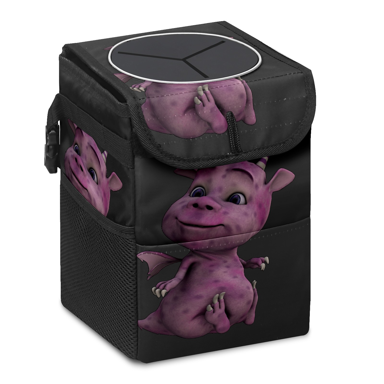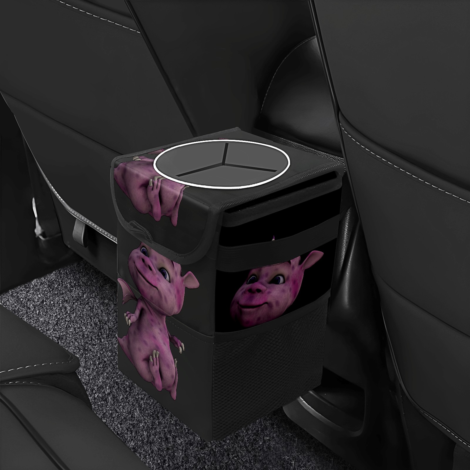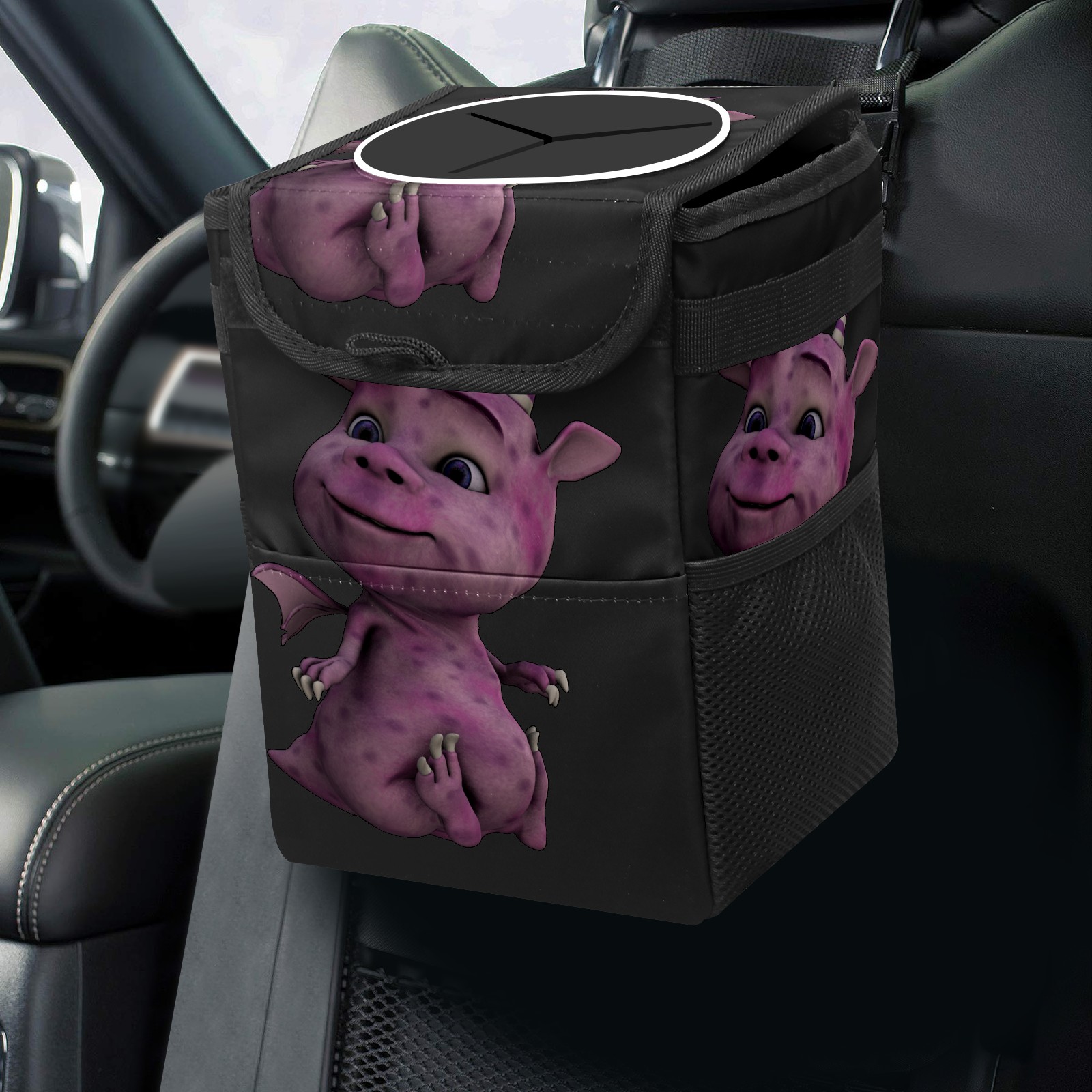 Car Garbage Can — Multi-functional, Lightweight Portable, Reusable Vehicle Trash Can, Waterproof with Sufficient Storage Capacity Purple Dinosaur