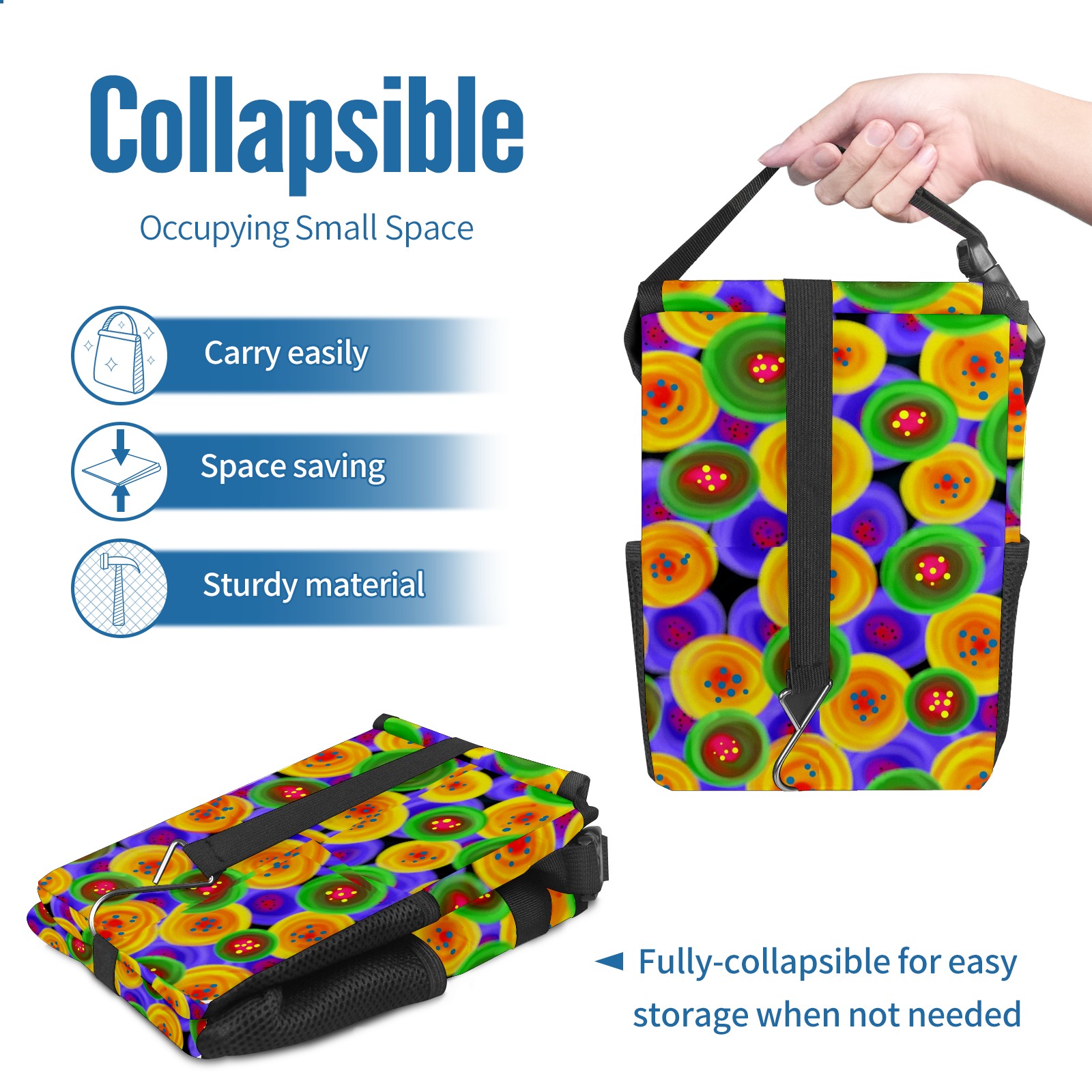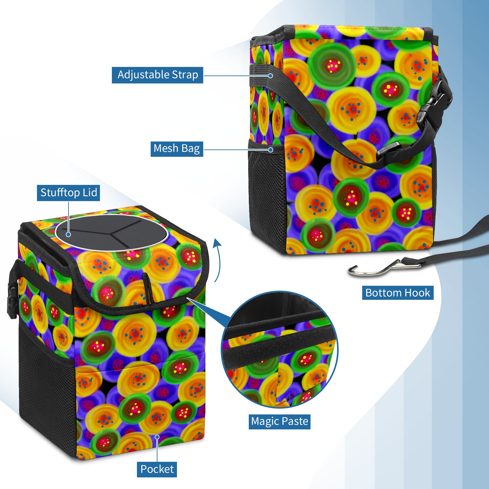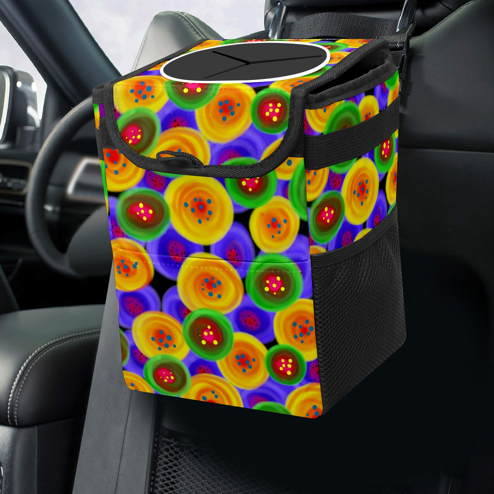 Car Garbage Can — Multi-functional, Lightweight Portable, Reusable Vehicle Trash Can, Waterproof with Sufficient Storage Capacity Colorful Abstract
