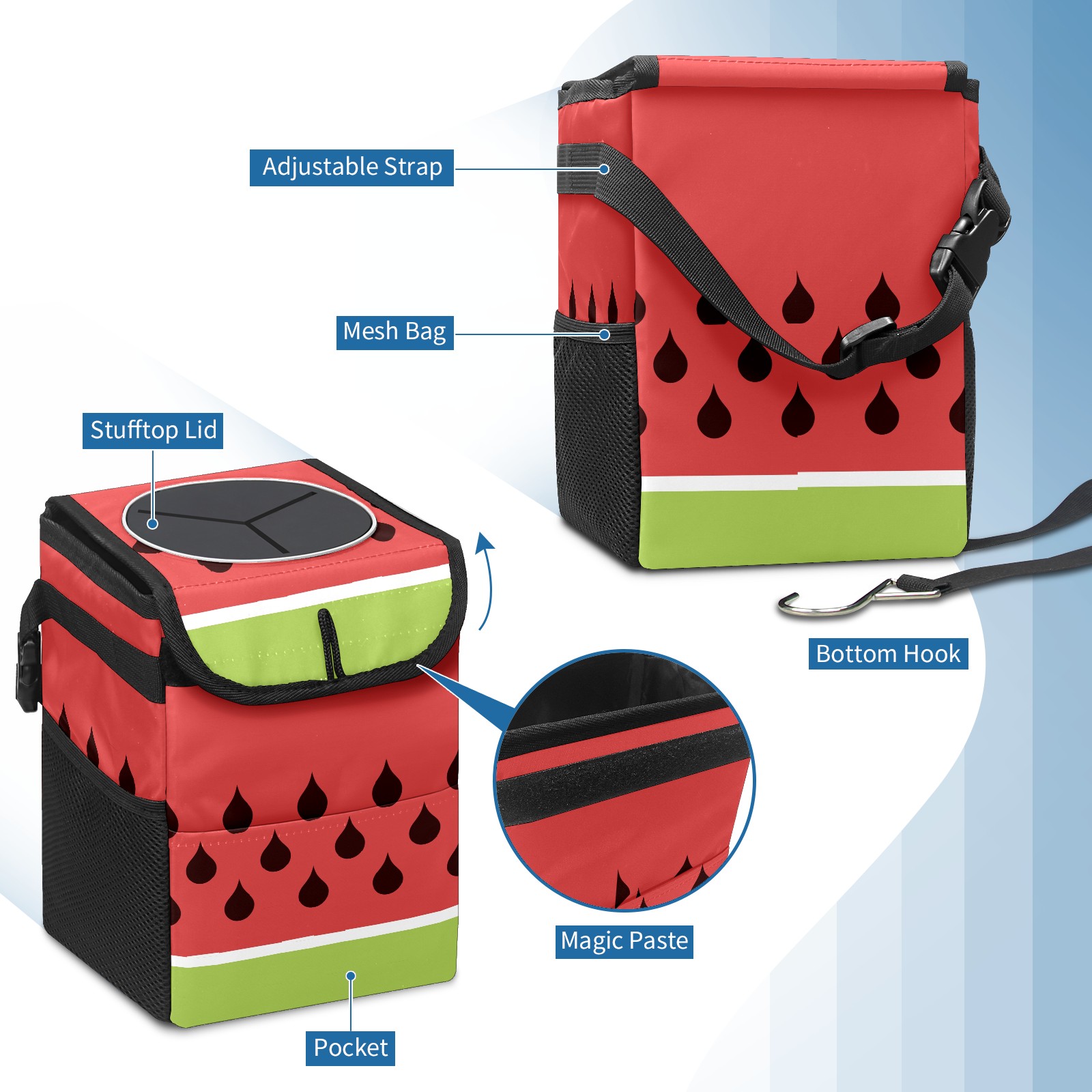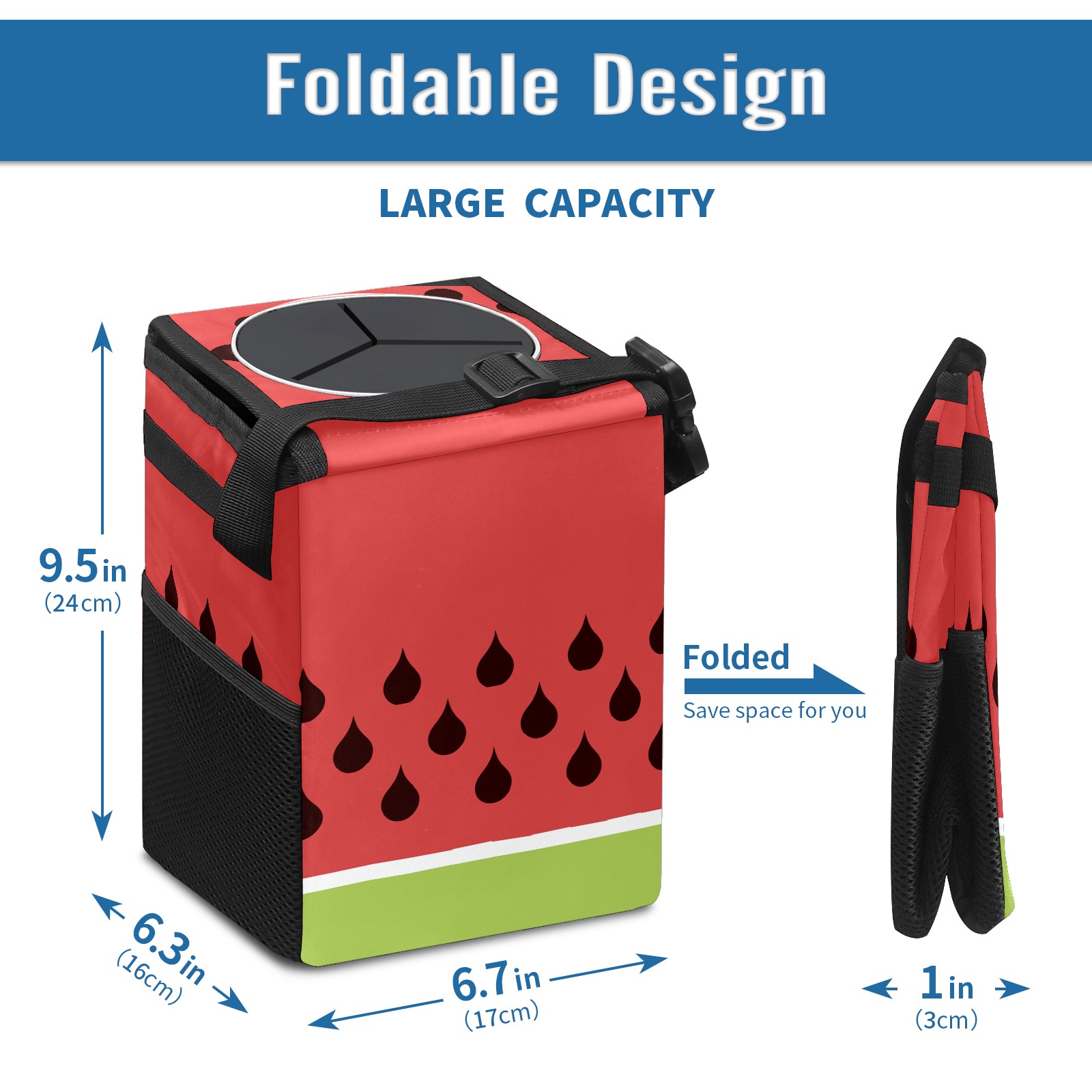 Car Garbage Can — Multi-functional, Lightweight Portable, Reusable Vehicle Trash Can, Waterproof with Sufficient Storage Capacity Watermelon