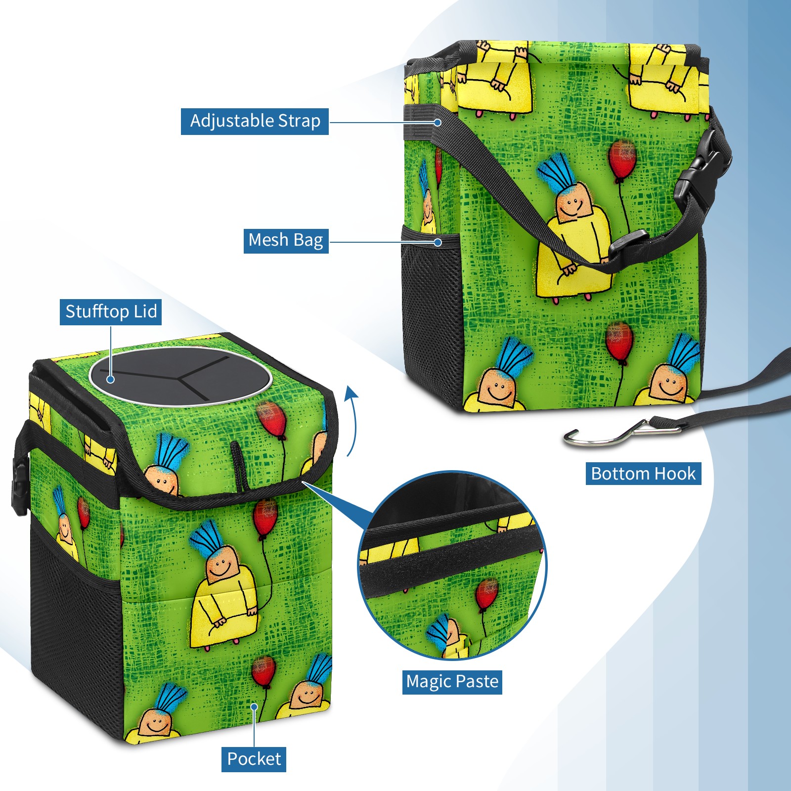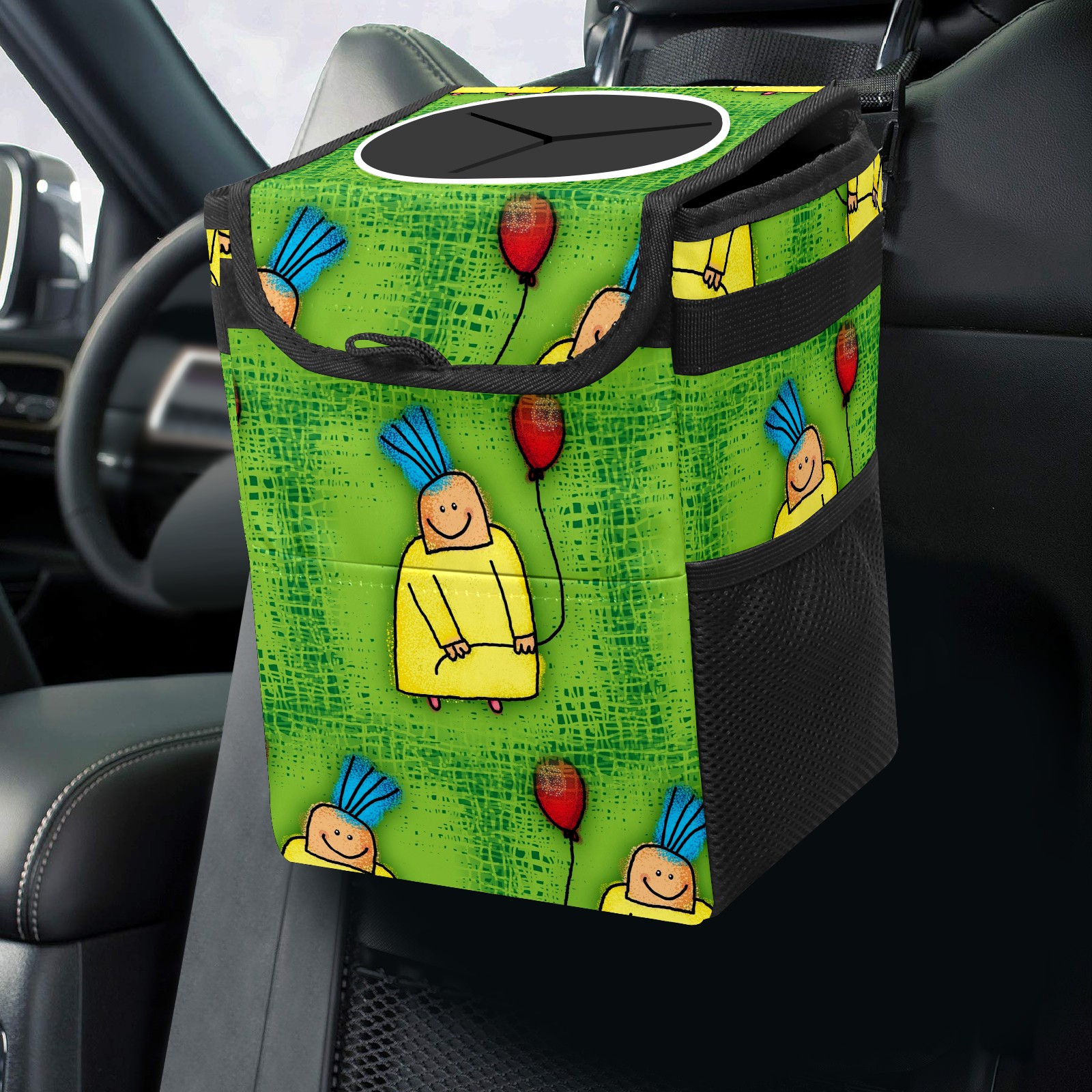 Car Garbage Can — Multi-functional, Lightweight Portable, Reusable Vehicle Trash Can, Waterproof with Sufficient Storage Capacity Cartoon Boy