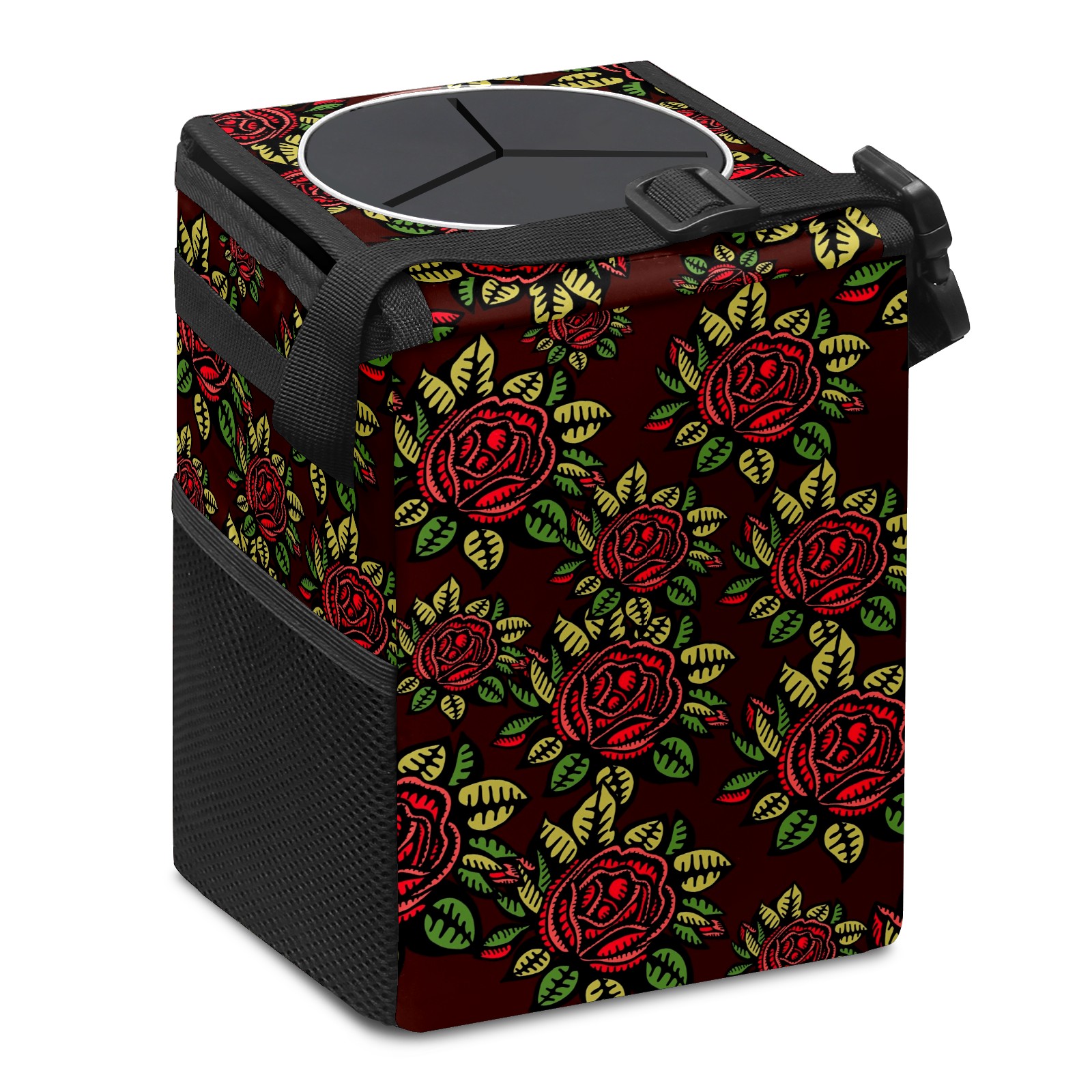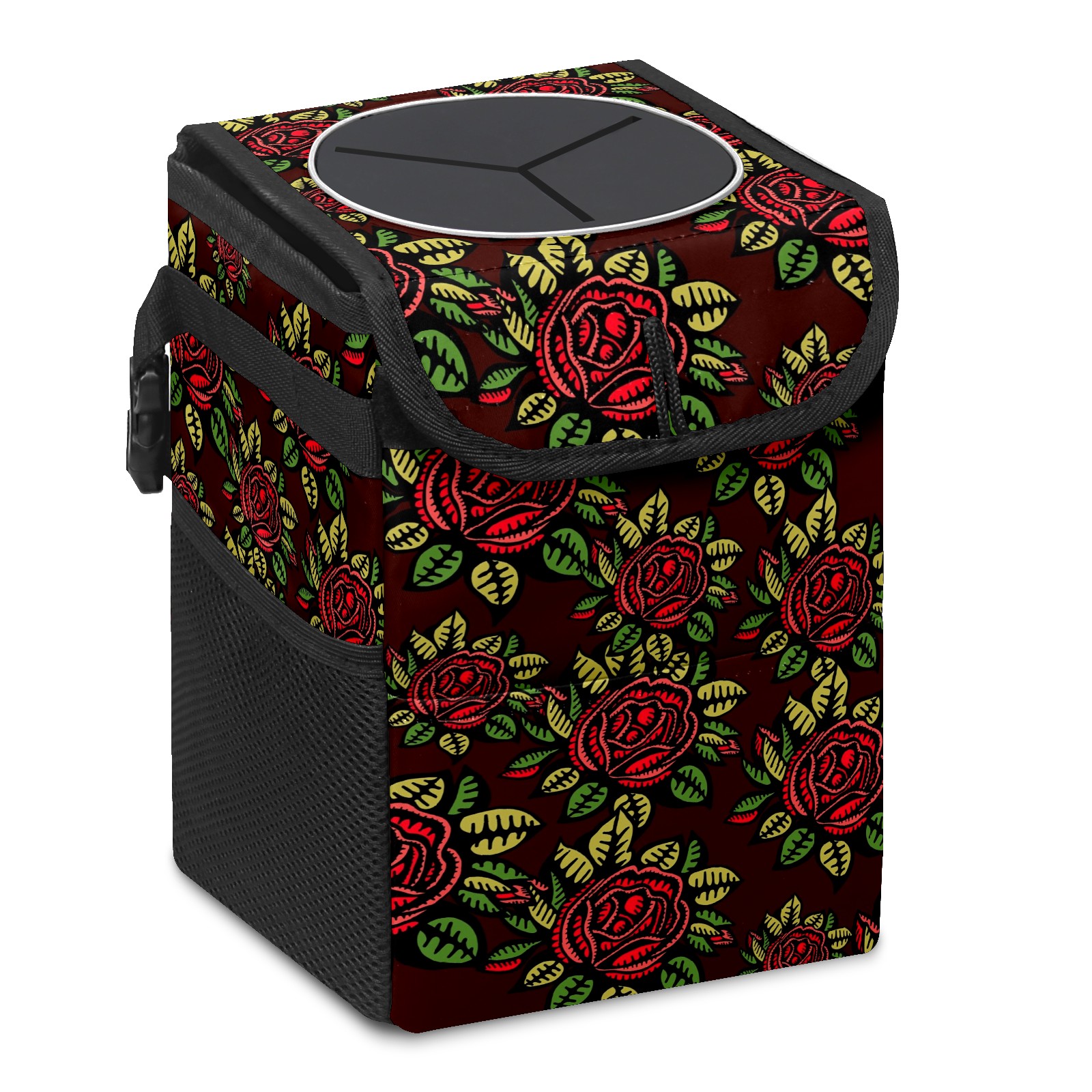 Car Garbage Can — Multi-functional, Lightweight Portable, Reusable Vehicle Trash Can, Waterproof with Sufficient Storage Capacity Red Rose