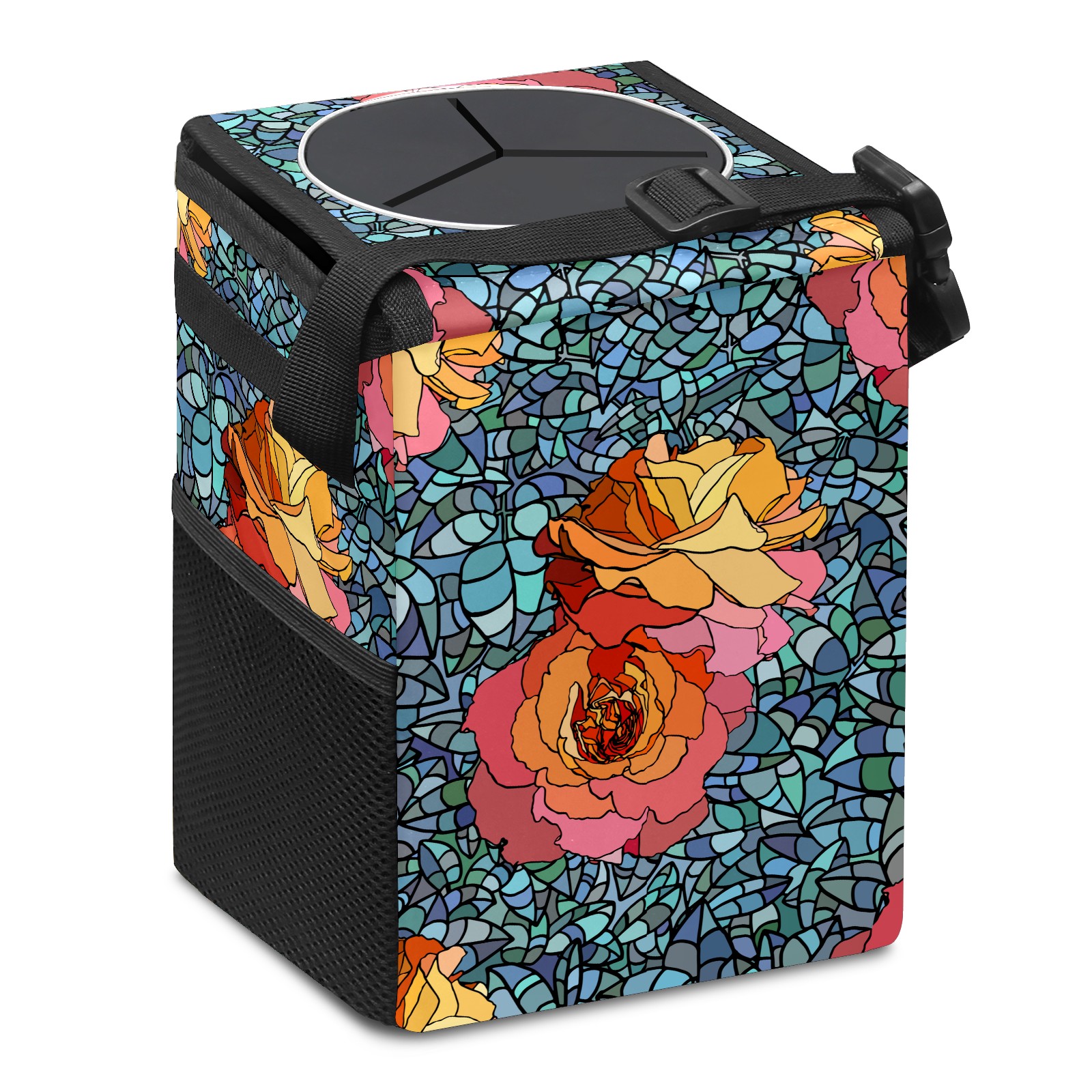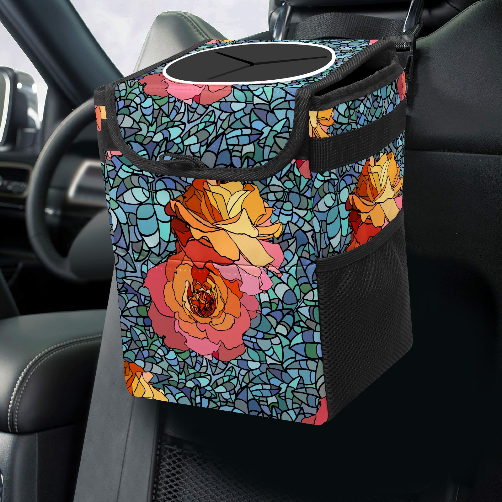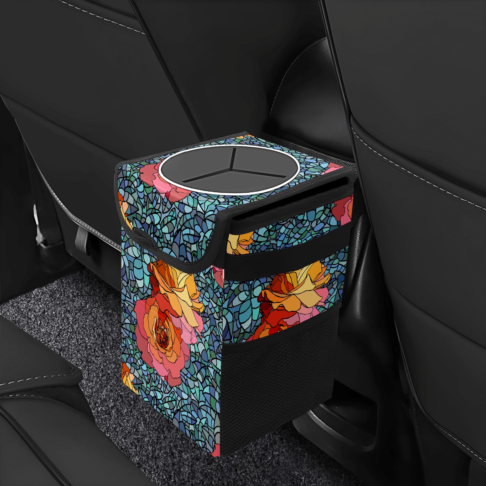 Car Garbage Can — Multi-functional, Lightweight Portable, Reusable Vehicle Trash Can, Waterproof with Sufficient Storage Capacity Red Flowers