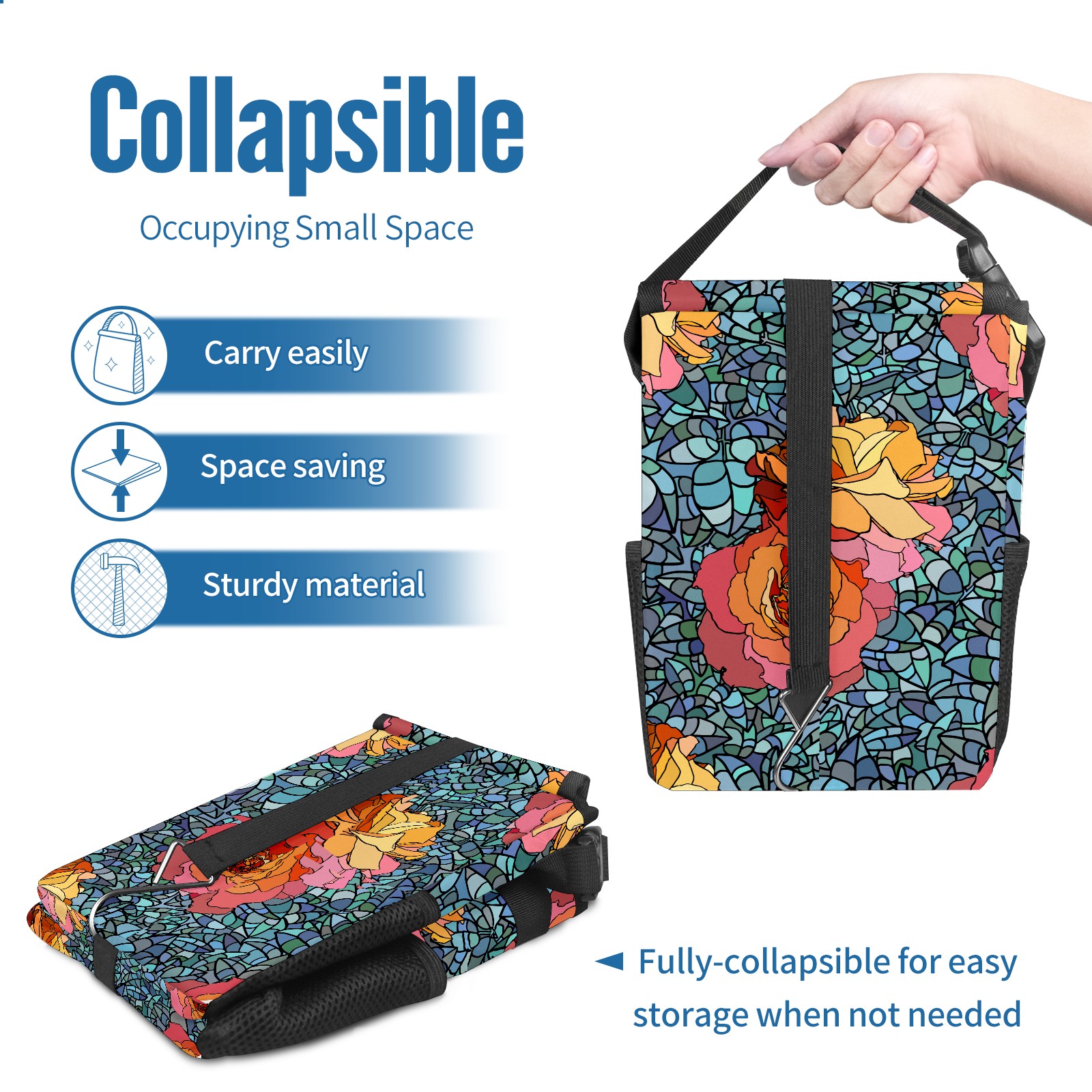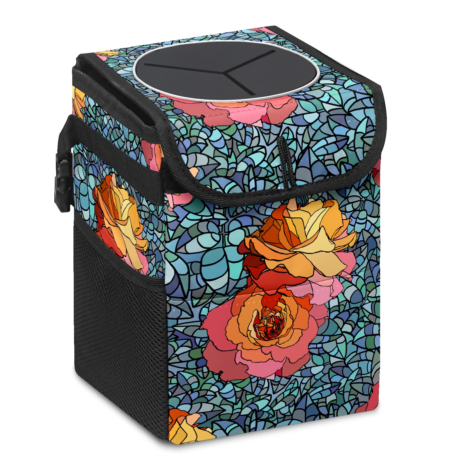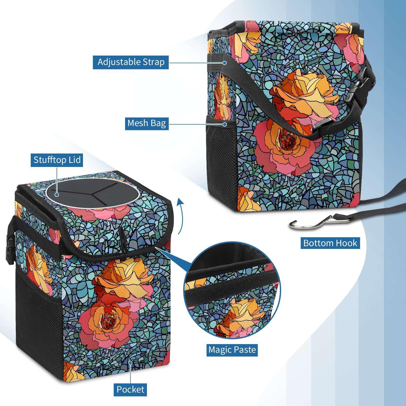 Car Garbage Can — Multi-functional, Lightweight Portable, Reusable Vehicle Trash Can, Waterproof with Sufficient Storage Capacity Red Flowers