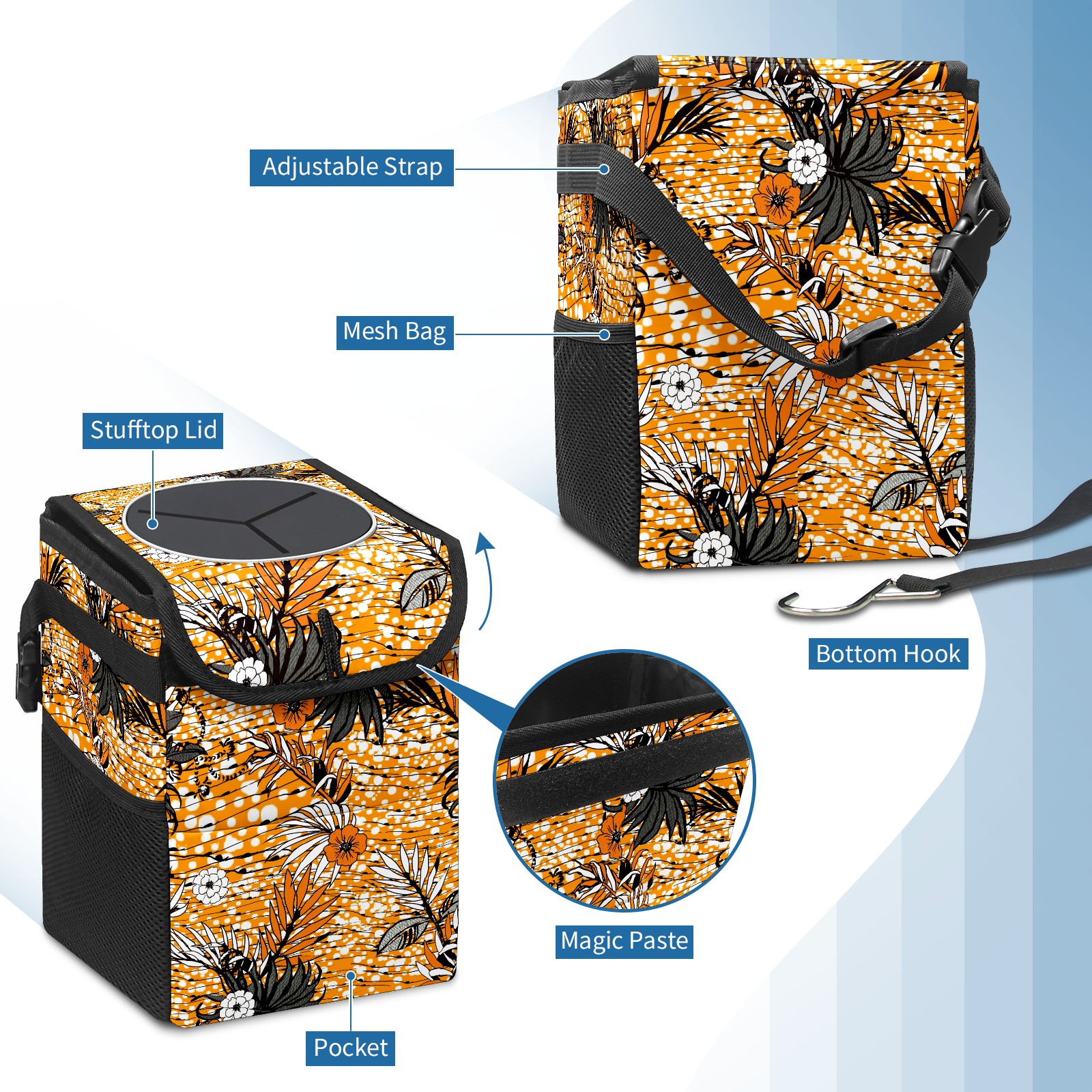 Car Garbage Can — Multi-functional, Lightweight Portable, Reusable Vehicle Trash Can, Waterproof with Sufficient Storage Capacity Leaf Flowers