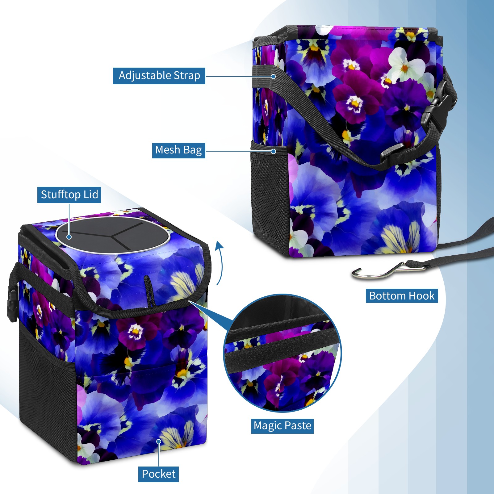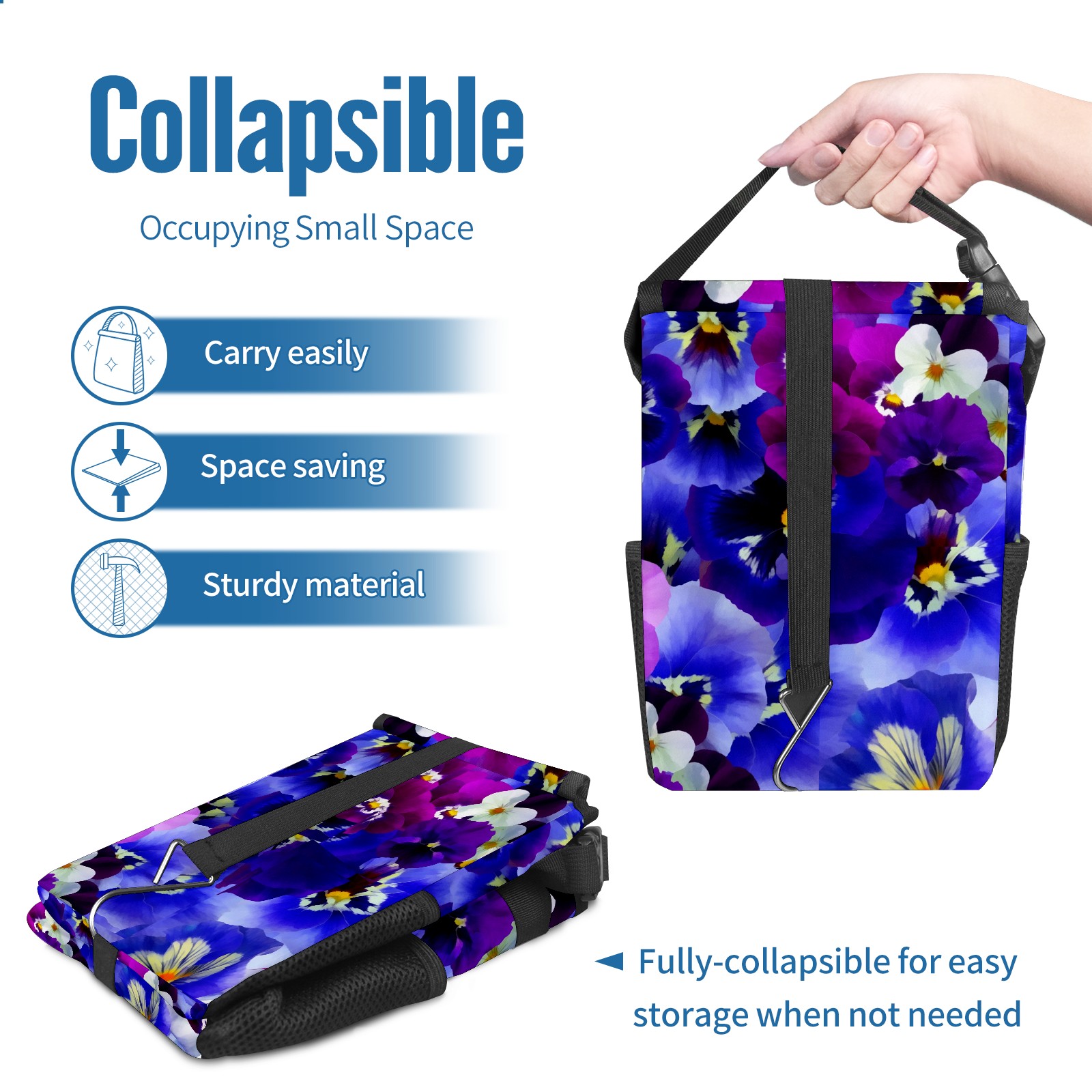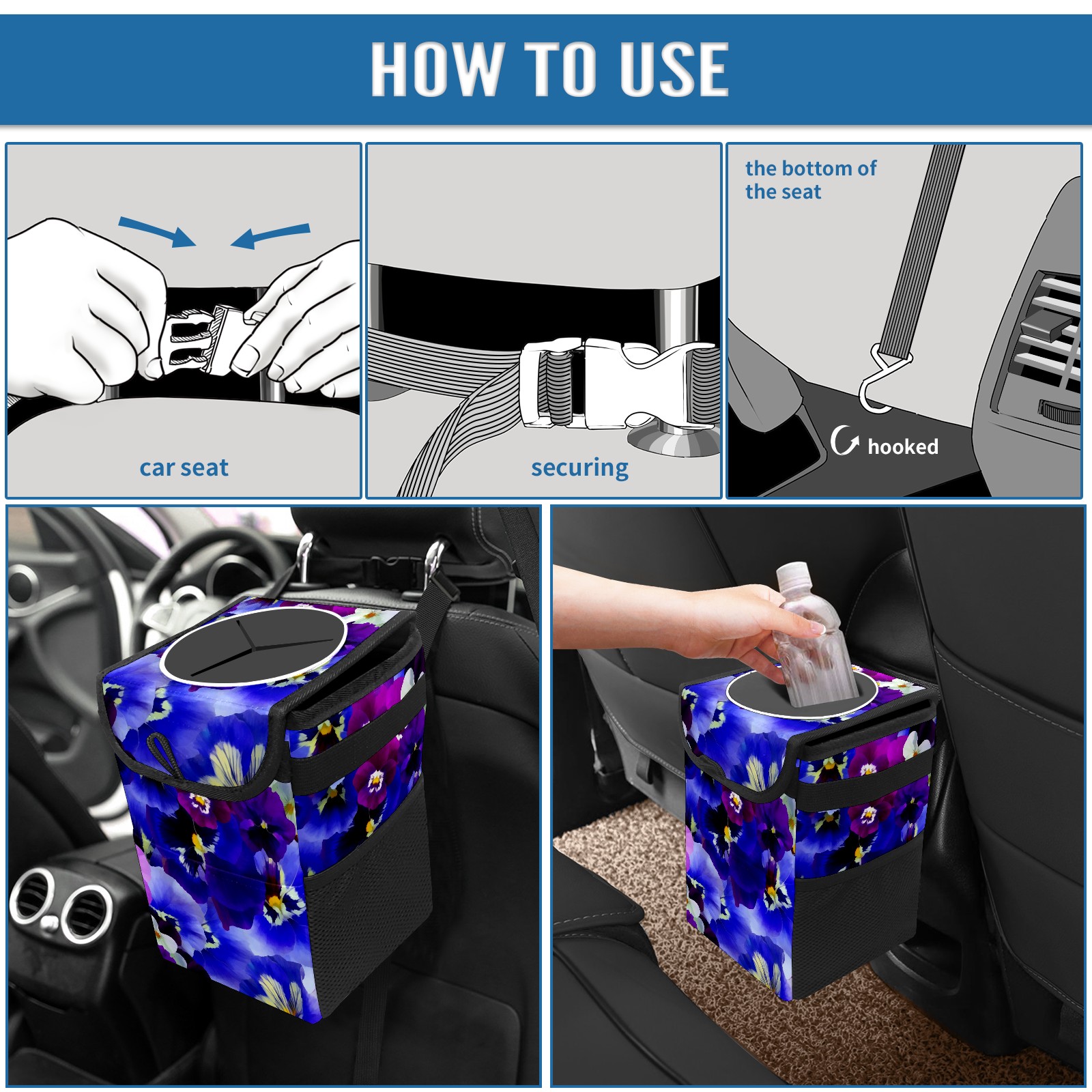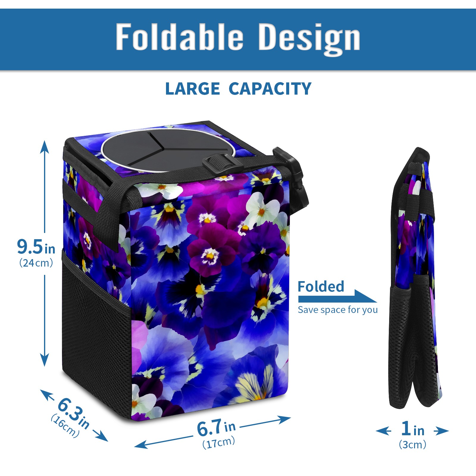 Car Garbage Can — Multi-functional, Lightweight Portable, Reusable Vehicle Trash Can, Waterproof with Sufficient Storage Capacity Color Flowers