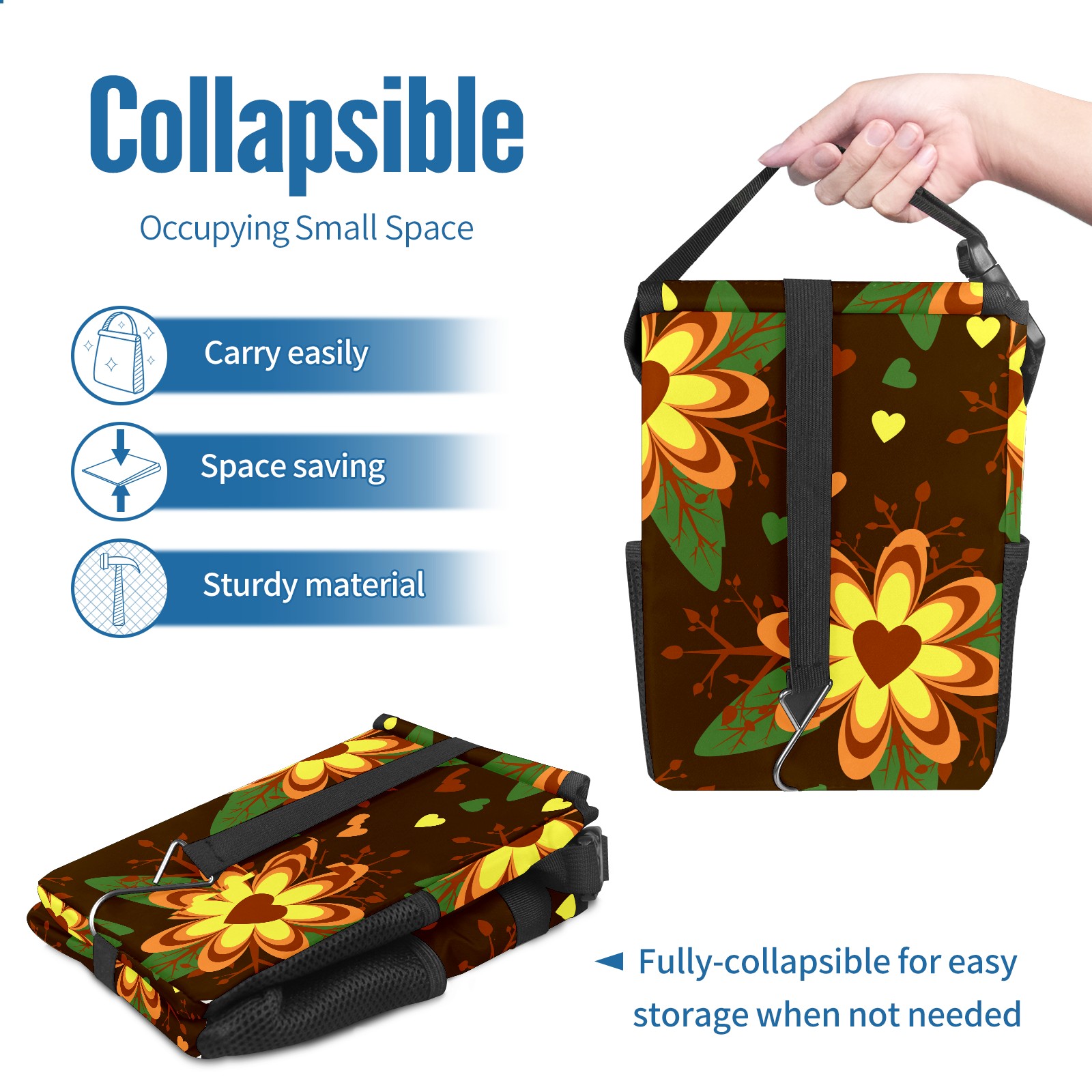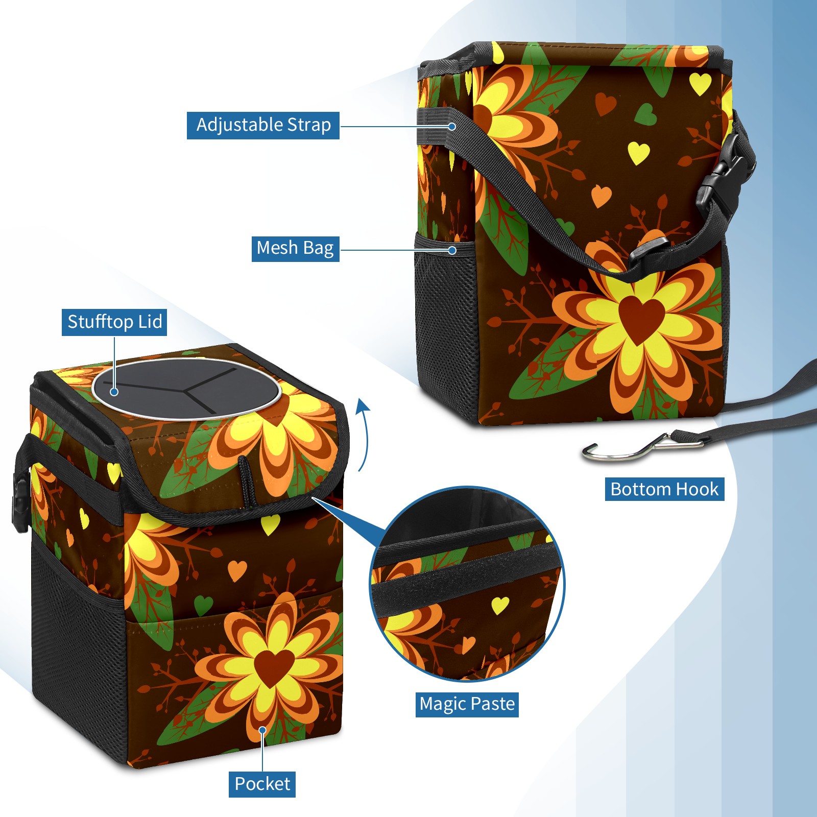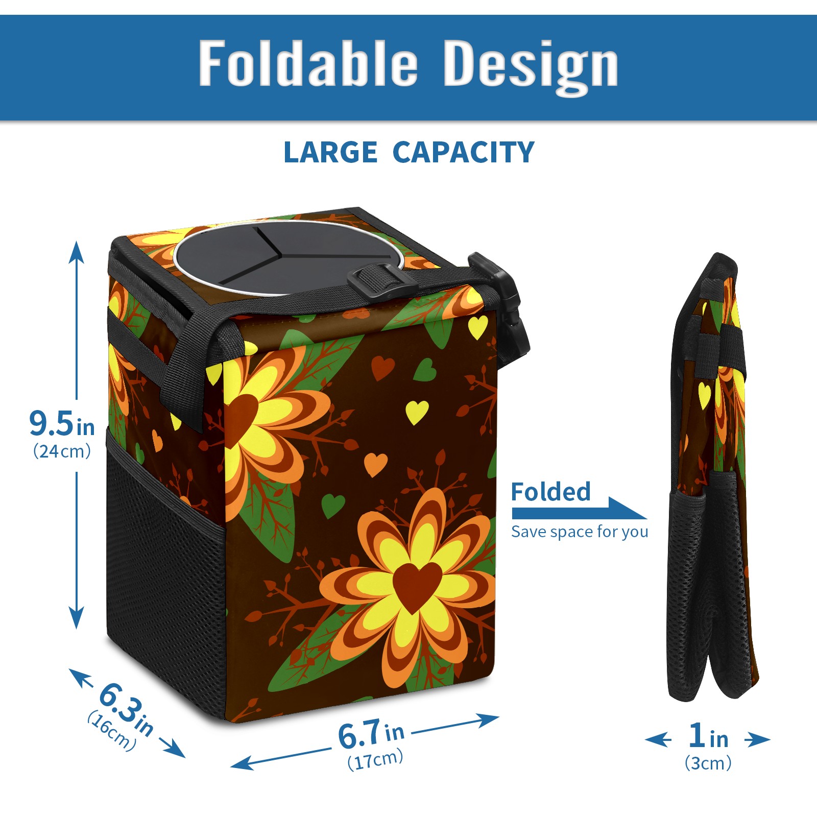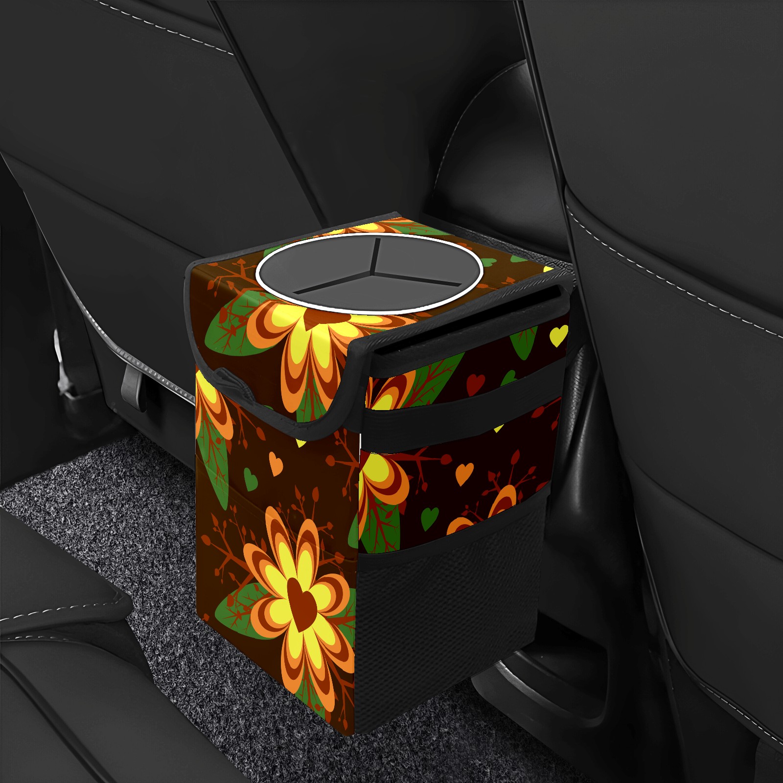 Car Garbage Can — Multi-functional, Lightweight Portable, Reusable Vehicle Trash Can, Waterproof with Sufficient Storage Capacity Floral Pattern