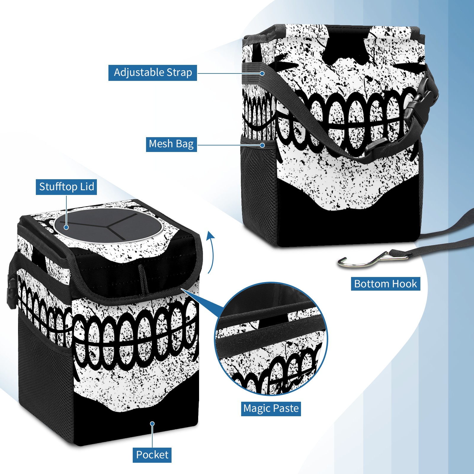 Car Garbage Can — Multi-functional, Lightweight Portable, Reusable Vehicle Trash Can, Waterproof with Sufficient Storage Capacity Skull Face
