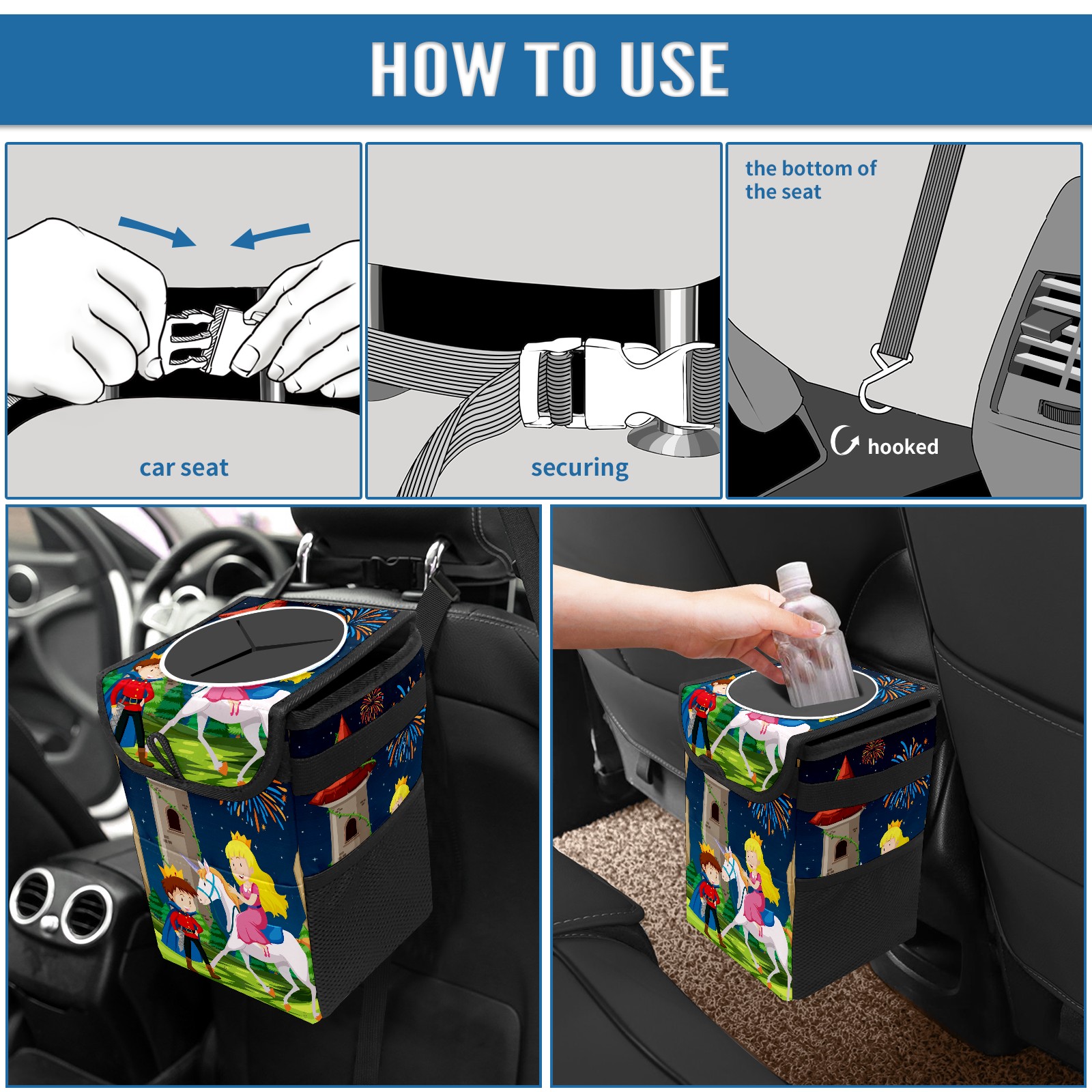 Car Garbage Can — Multi-functional, Lightweight Portable, Reusable Vehicle Trash Can, Waterproof with Sufficient Storage Capacity Blond Princess