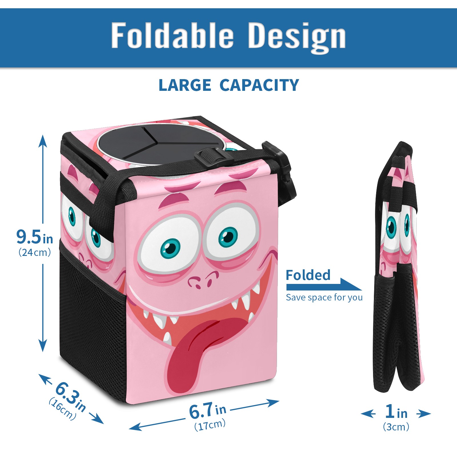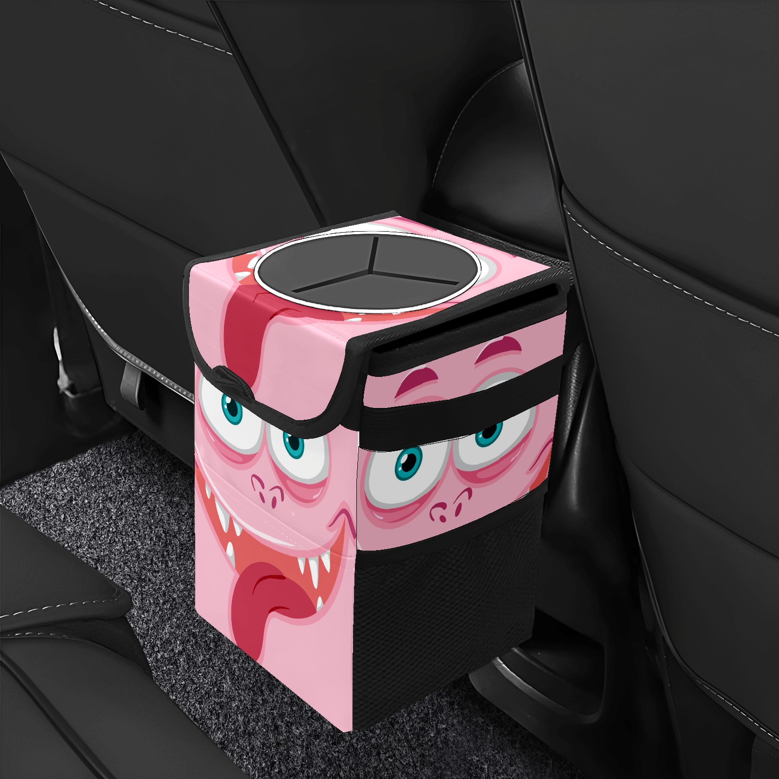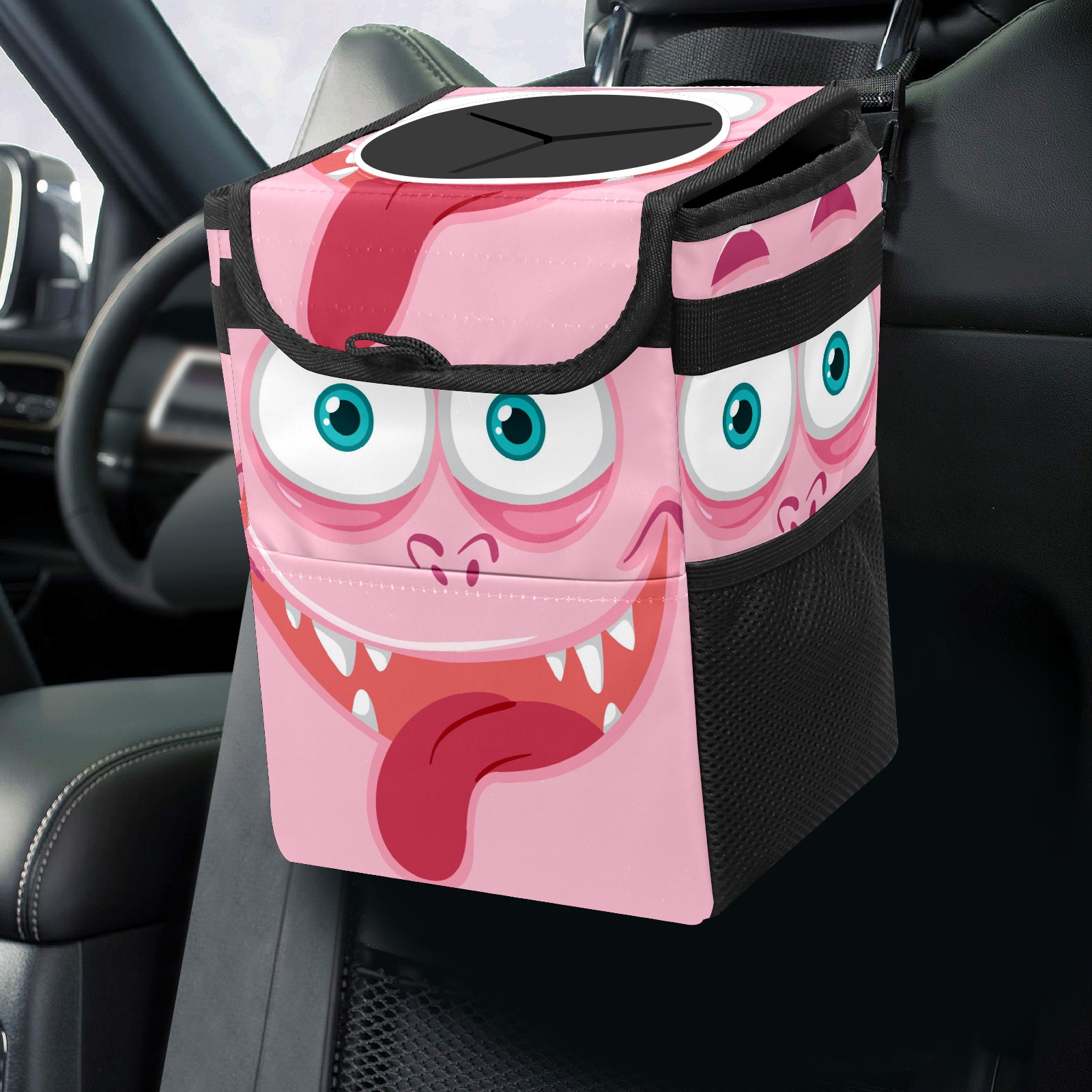 Car Garbage Can — Multi-functional, Lightweight Portable, Reusable Vehicle Trash Can, Waterproof with Sufficient Storage Capacity Pink Monster