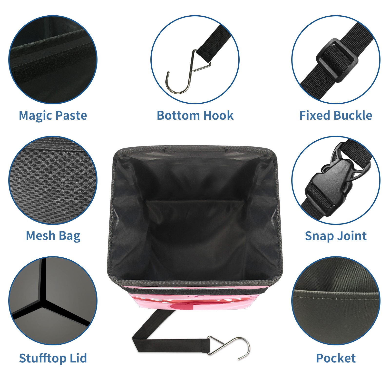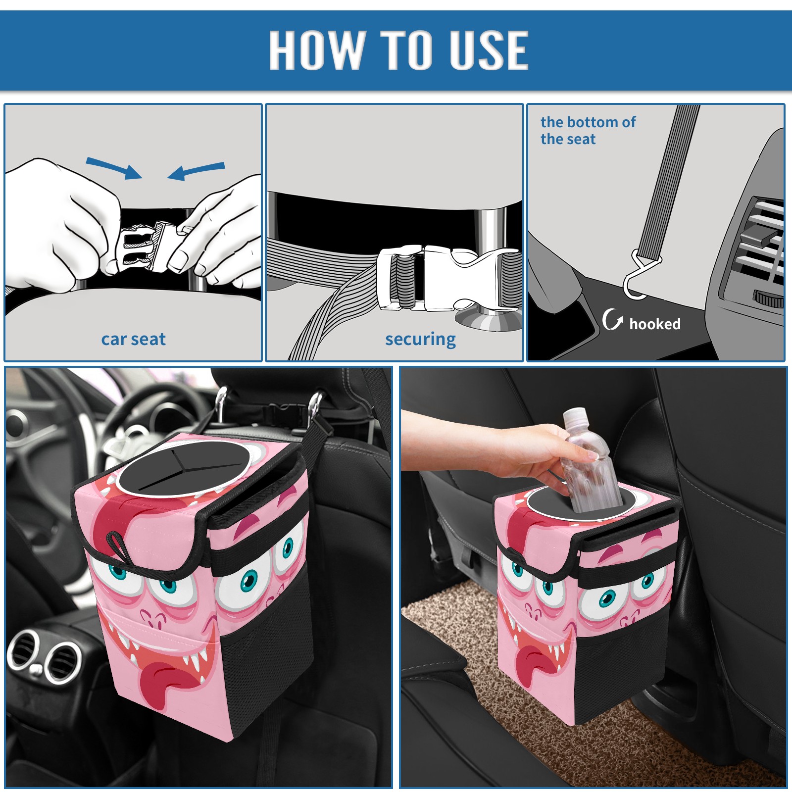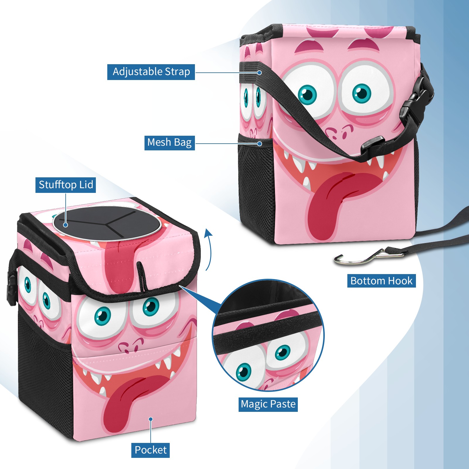 Car Garbage Can — Multi-functional, Lightweight Portable, Reusable Vehicle Trash Can, Waterproof with Sufficient Storage Capacity Pink Monster