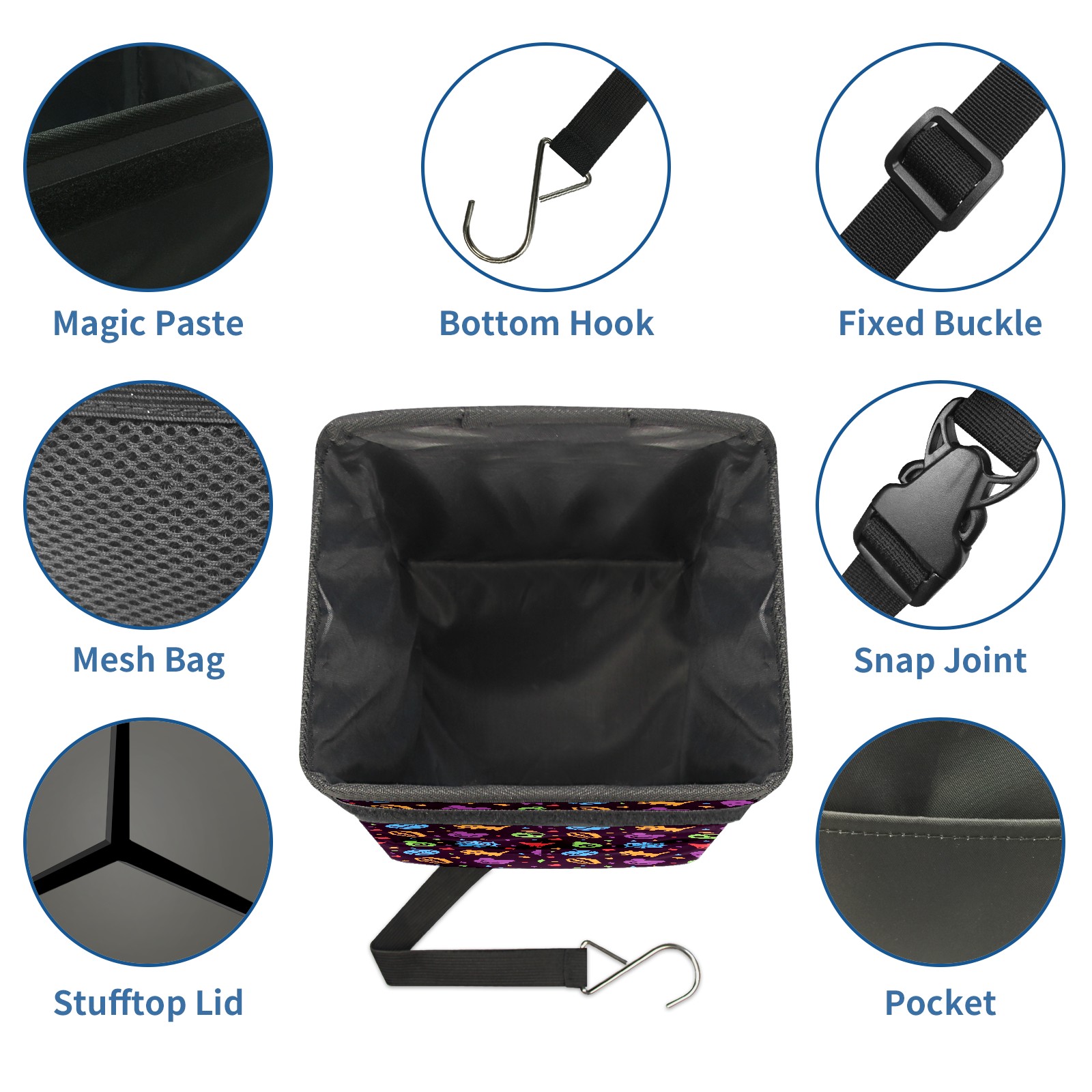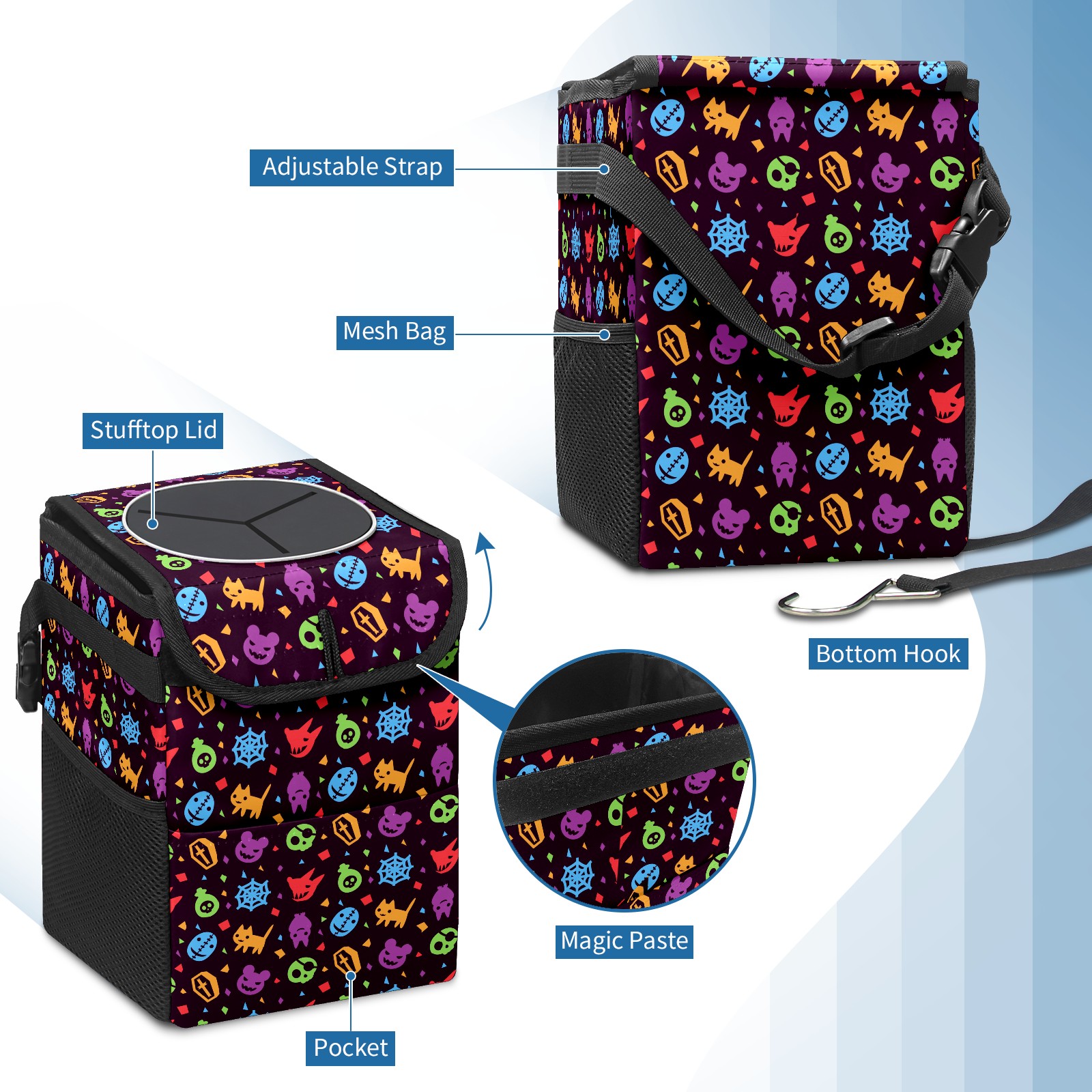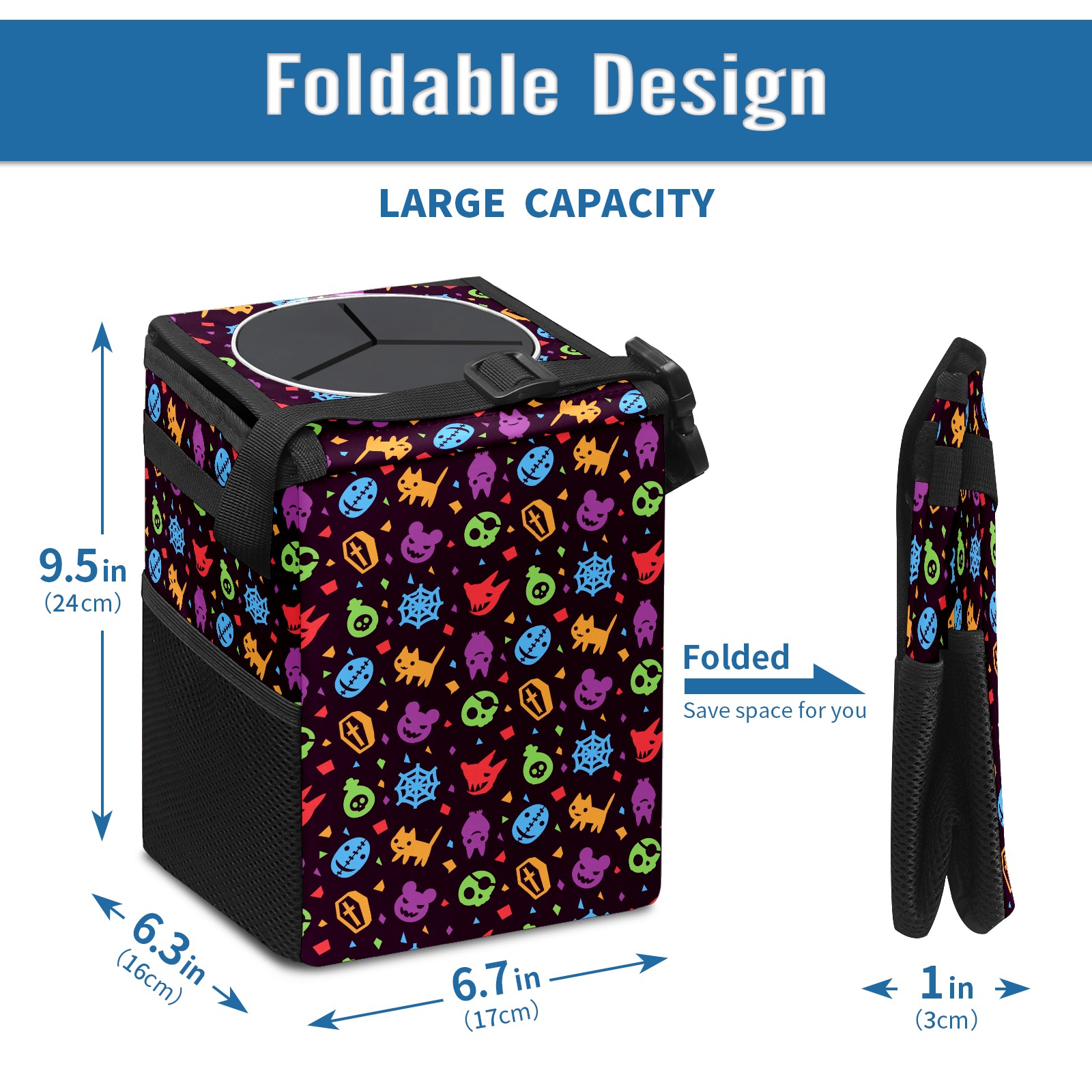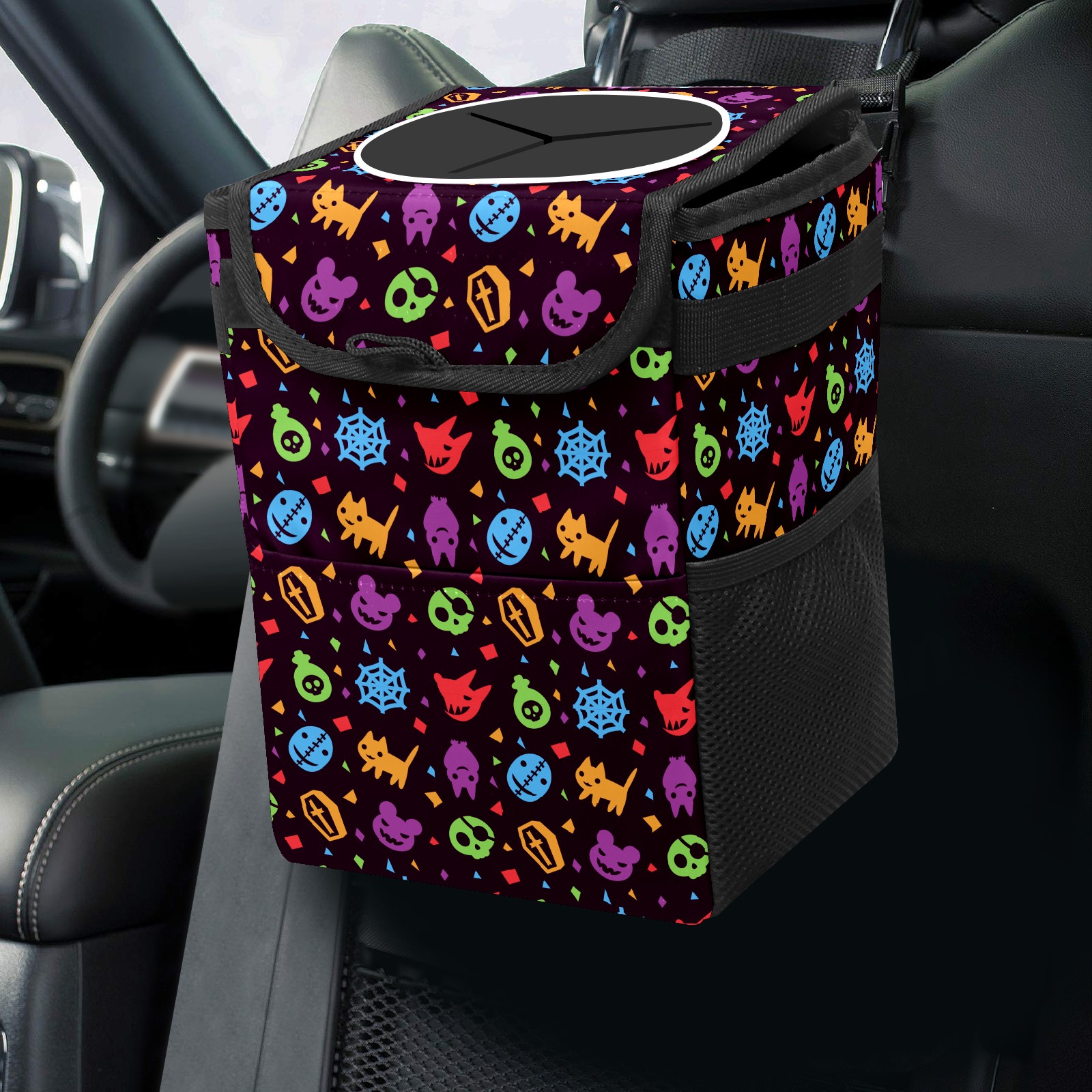 Car Garbage Can — Multi-functional, Lightweight Portable, Reusable Vehicle Trash Can, Waterproof with Sufficient Storage Capacity Hallowen Pattern