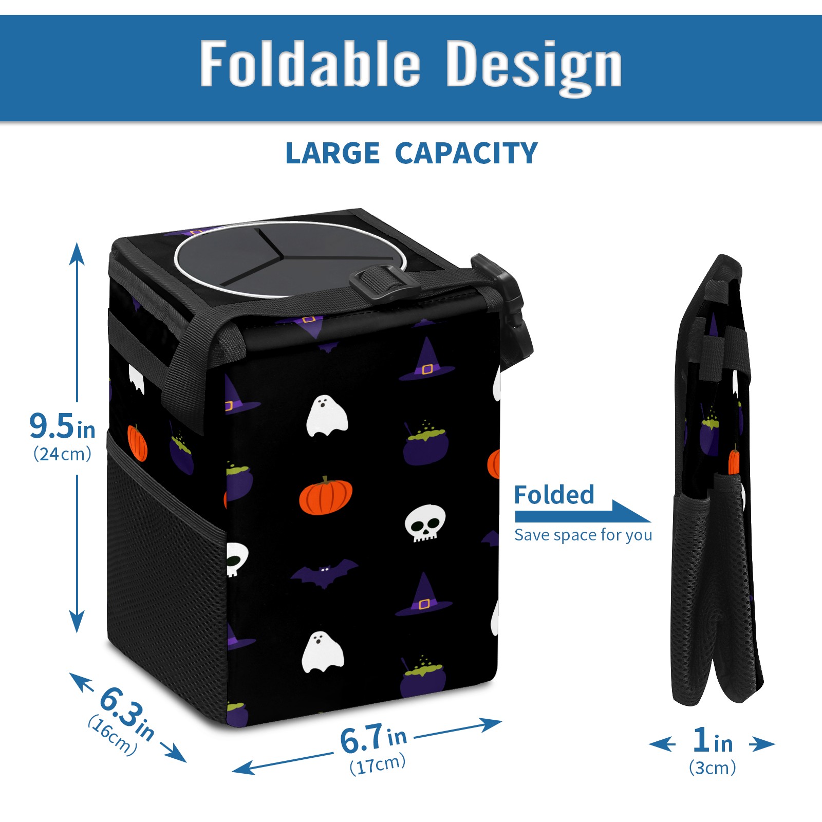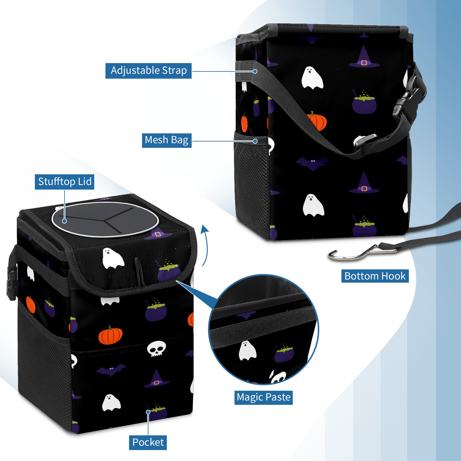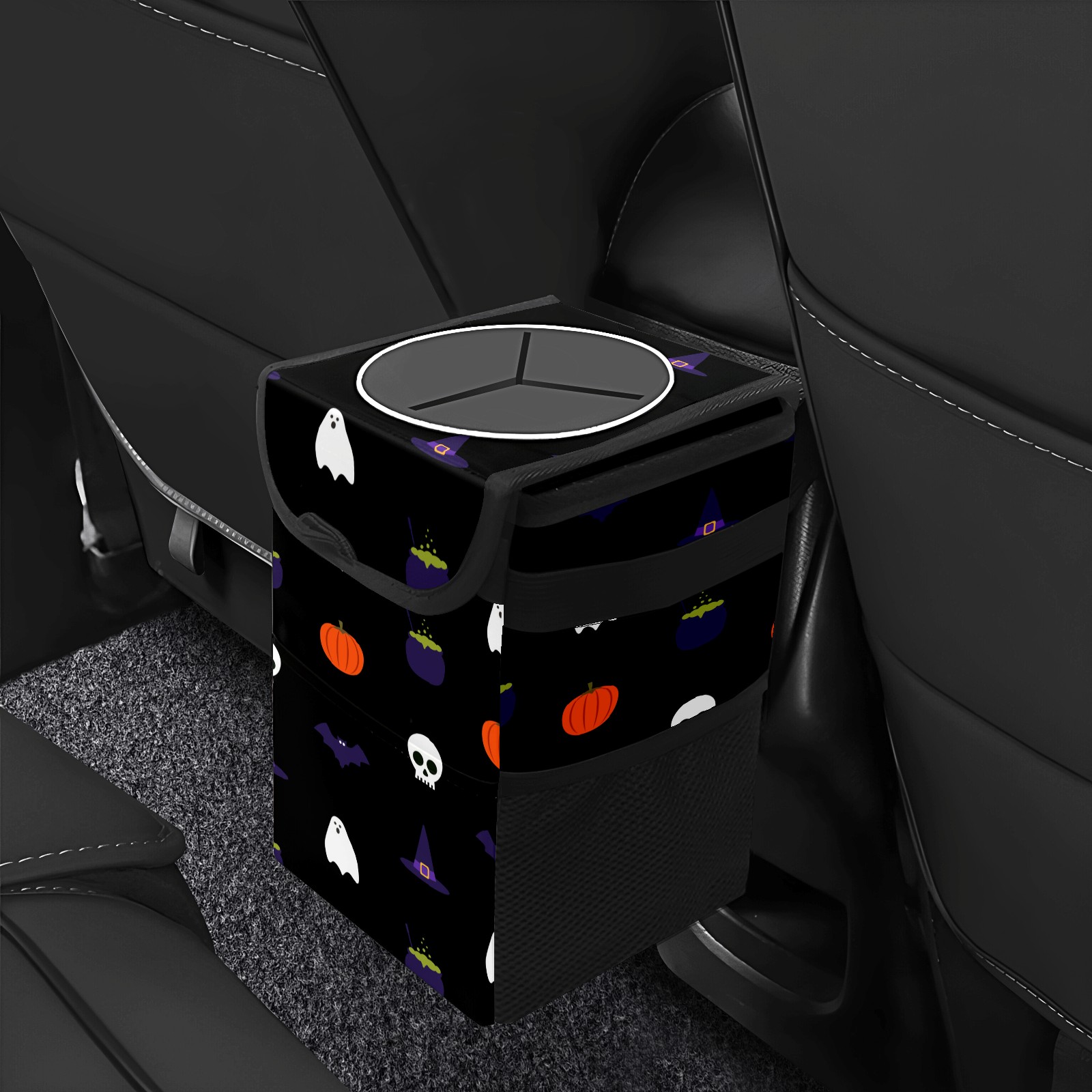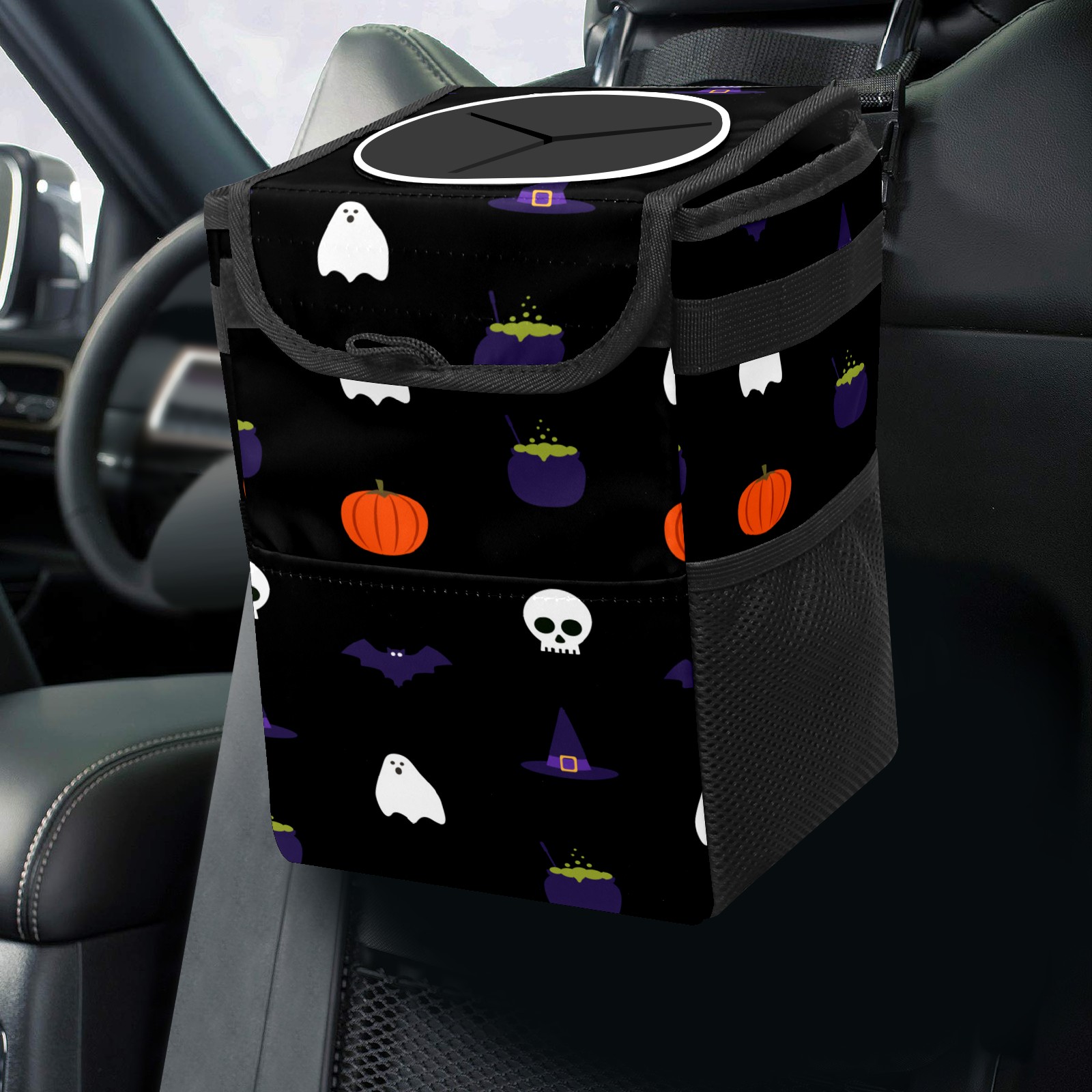 Car Garbage Can — Multi-functional, Lightweight Portable, Reusable Vehicle Trash Can, Waterproof with Sufficient Storage Capacity Halloween Pattern