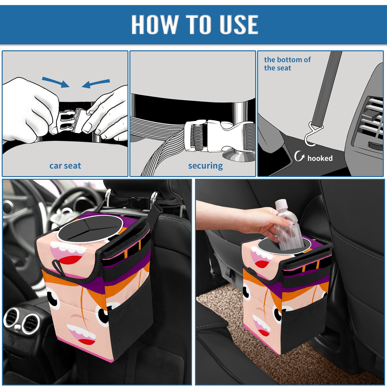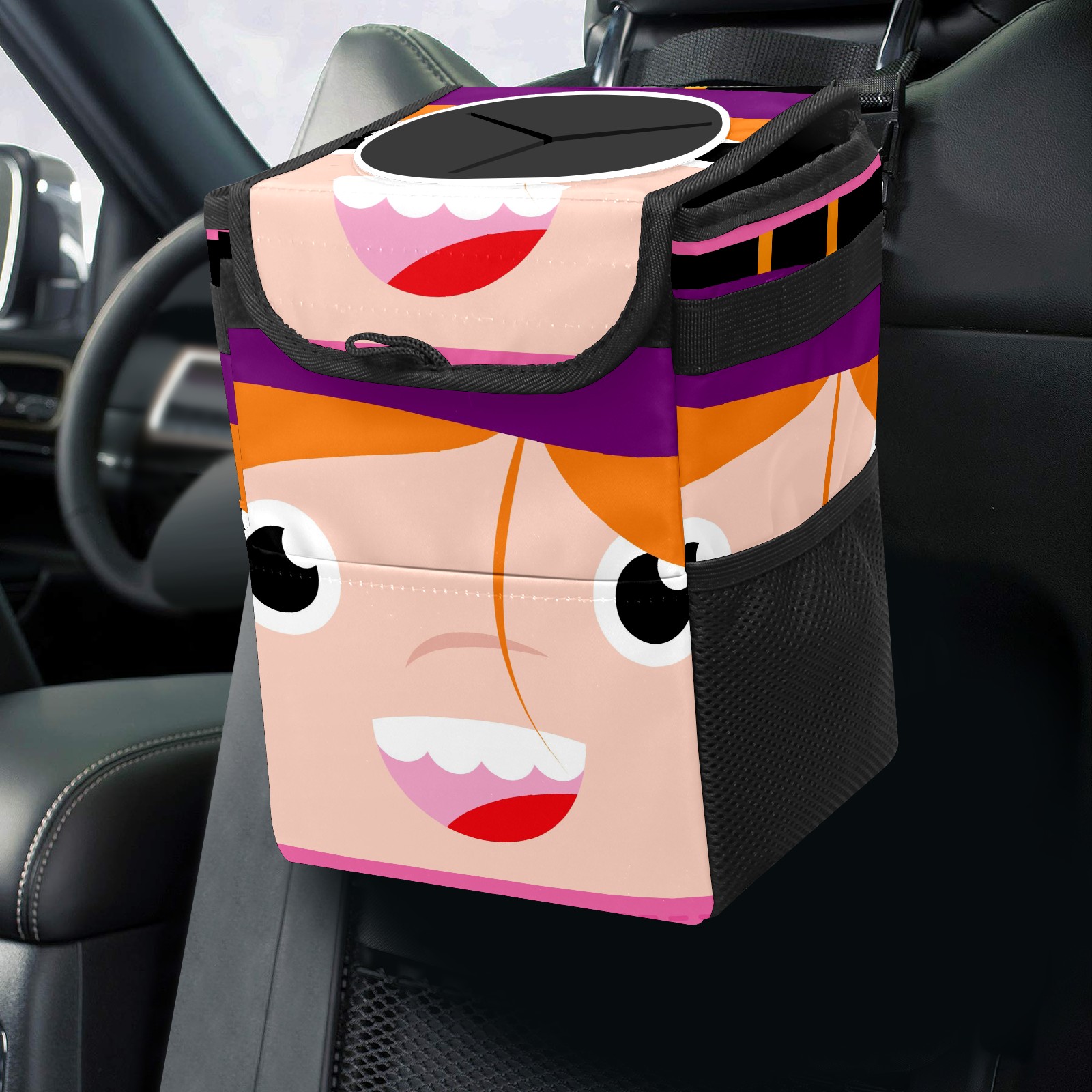 Car Garbage Can — Multi-functional, Lightweight Portable, Reusable Vehicle Trash Can, Waterproof with Sufficient Storage Capacity Halloween Face