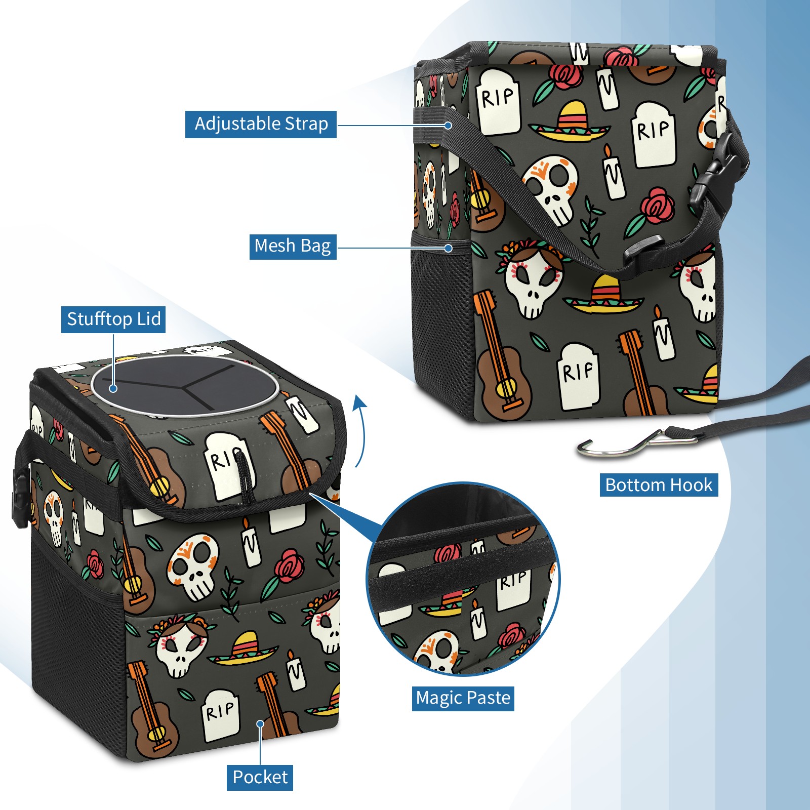 Car Garbage Can — Multi-functional, Lightweight Portable, Reusable Vehicle Trash Can, Waterproof with Sufficient Storage Capacity Day Of The Dead