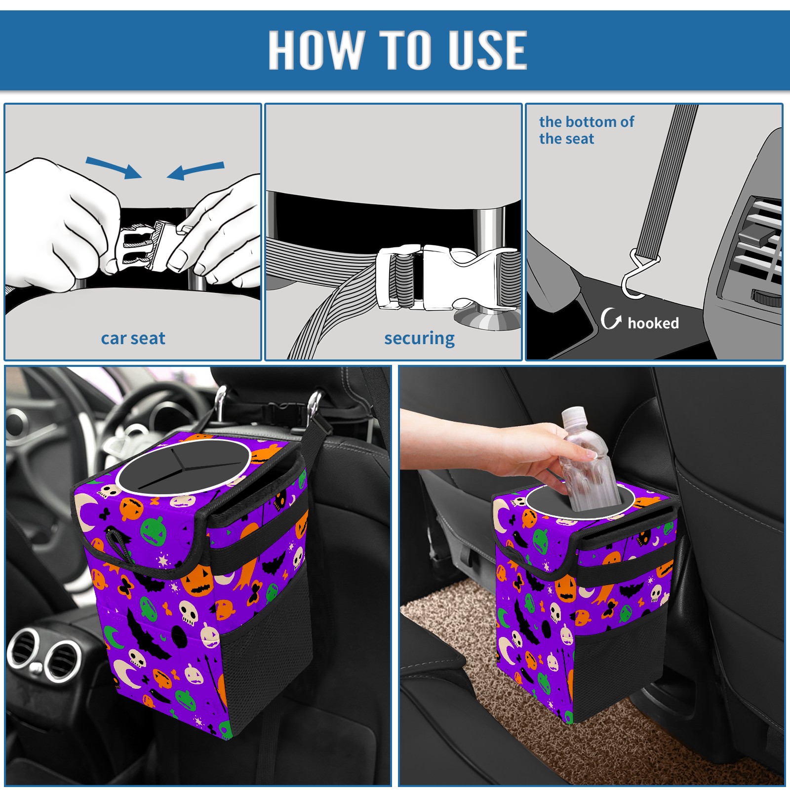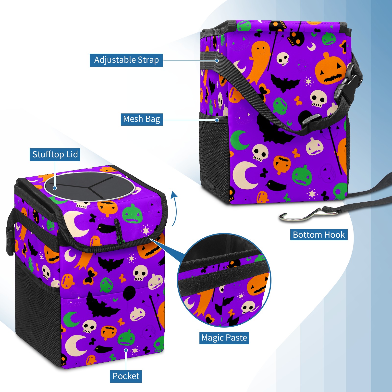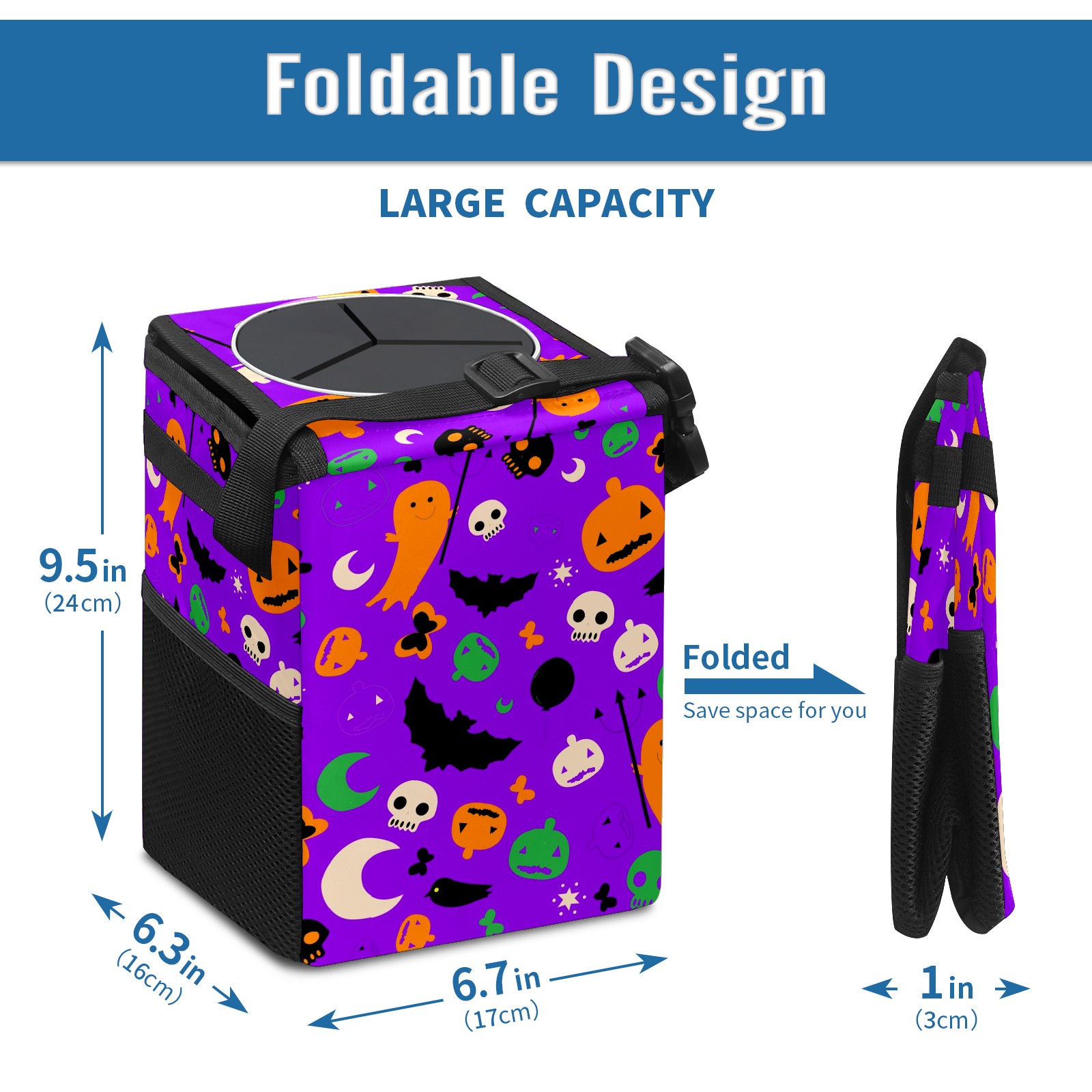 Car Garbage Can — Multi-functional, Lightweight Portable, Reusable Vehicle Trash Can, Waterproof with Sufficient Storage Capacity Skull Pumpkin
