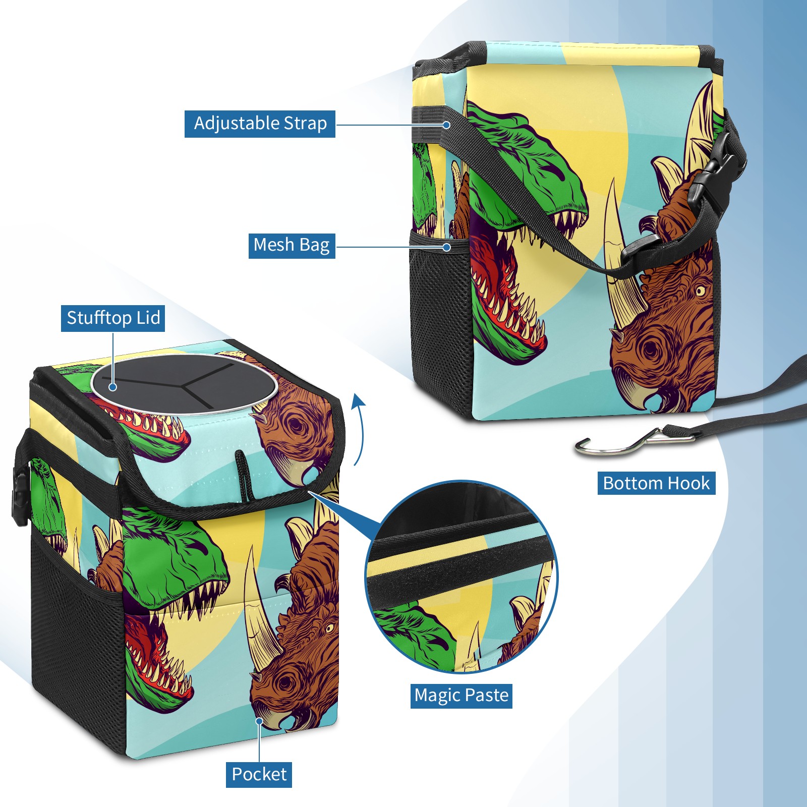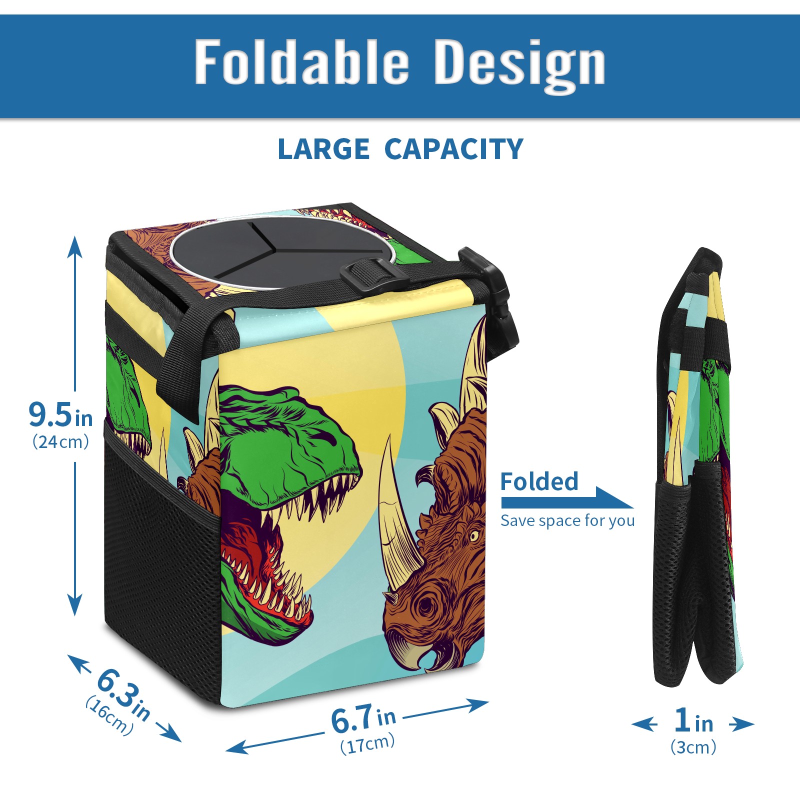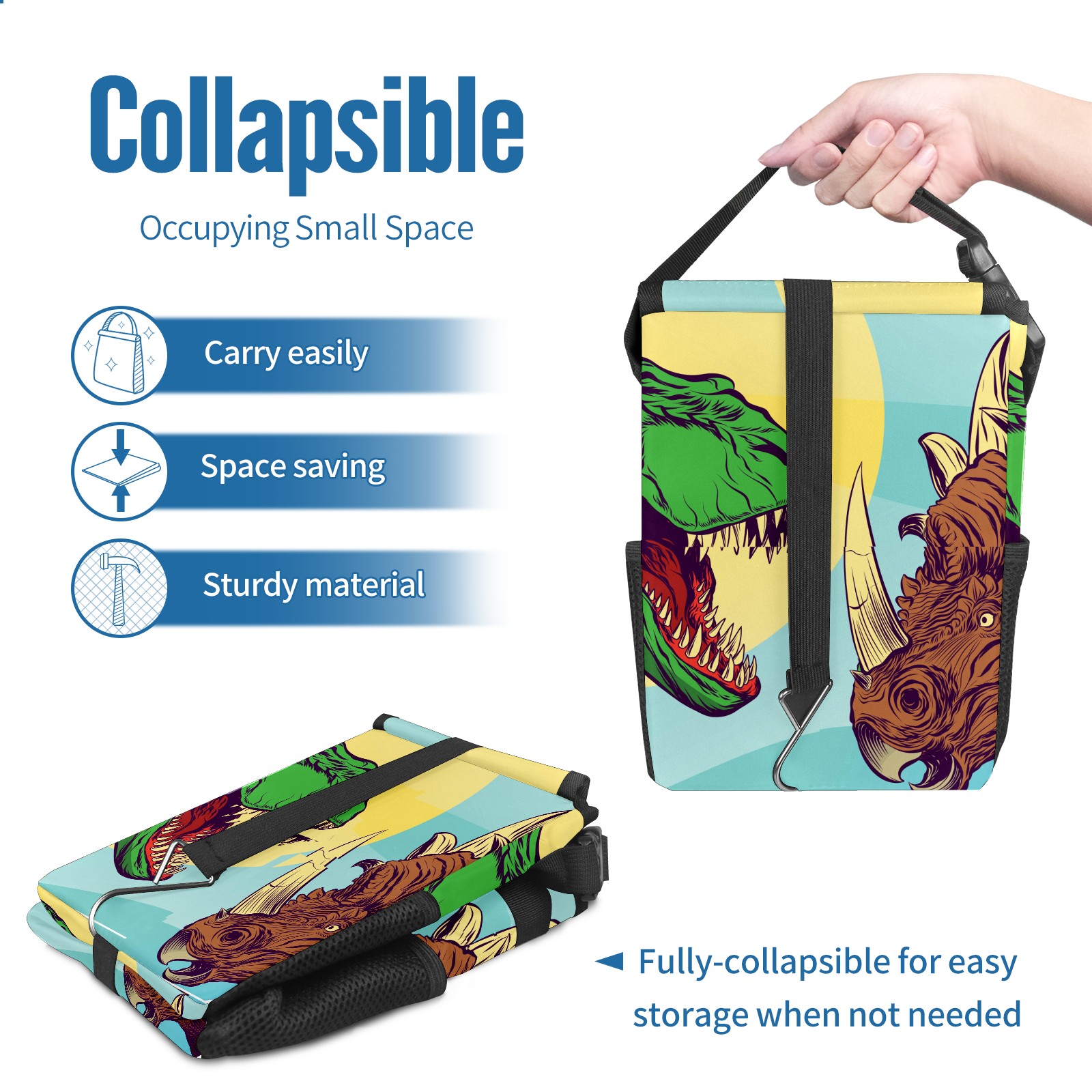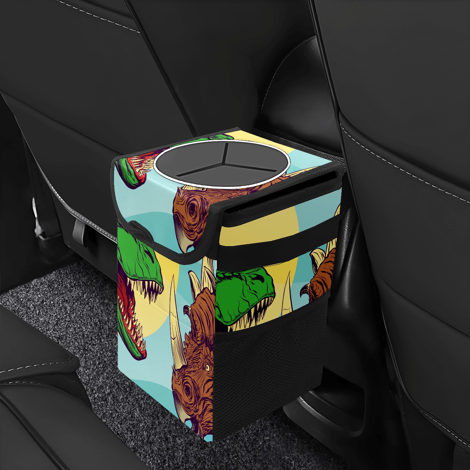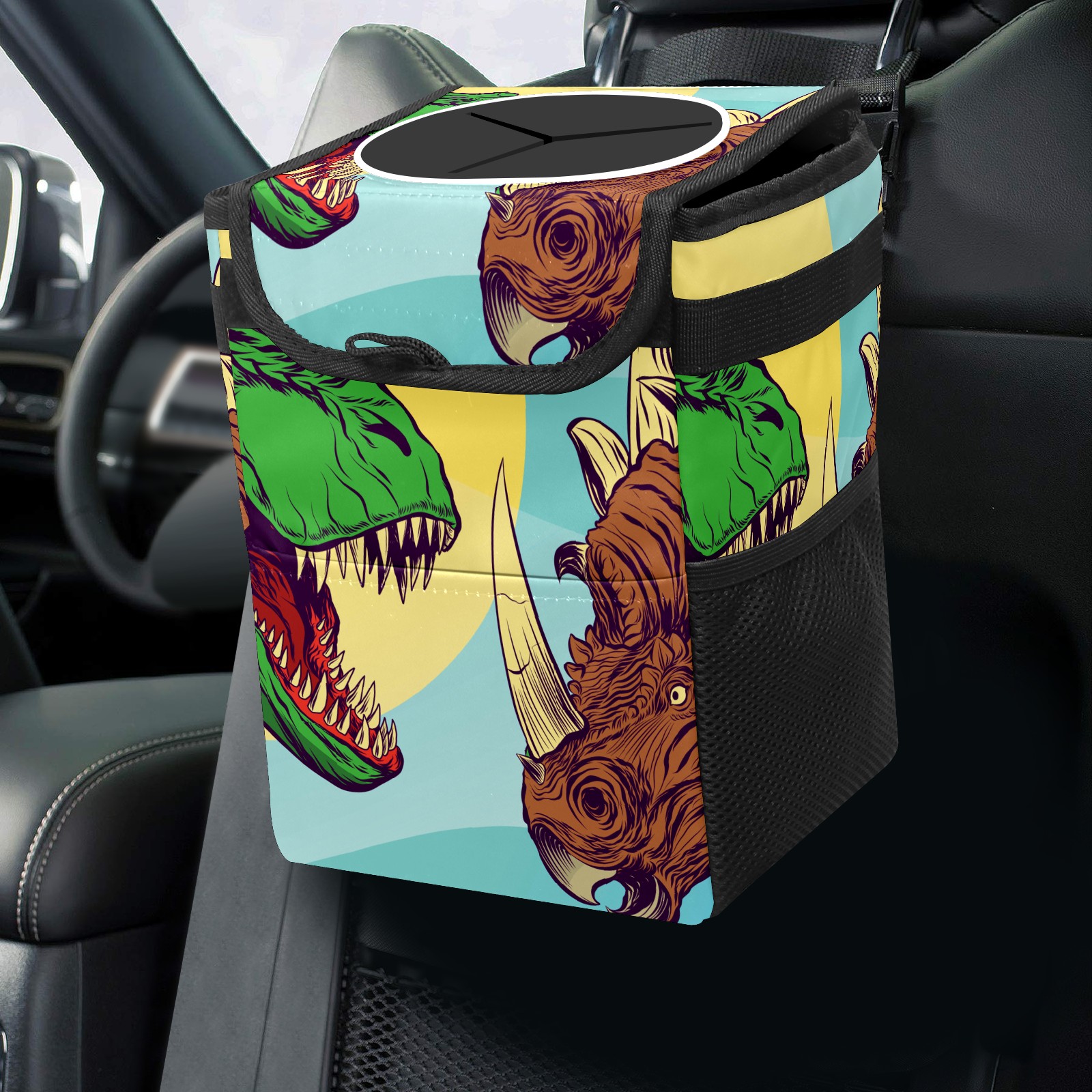 Car Garbage Can — Multi-functional, Lightweight Portable, Reusable Vehicle Trash Can, Waterproof with Sufficient Storage Capacity Green Dinosaur