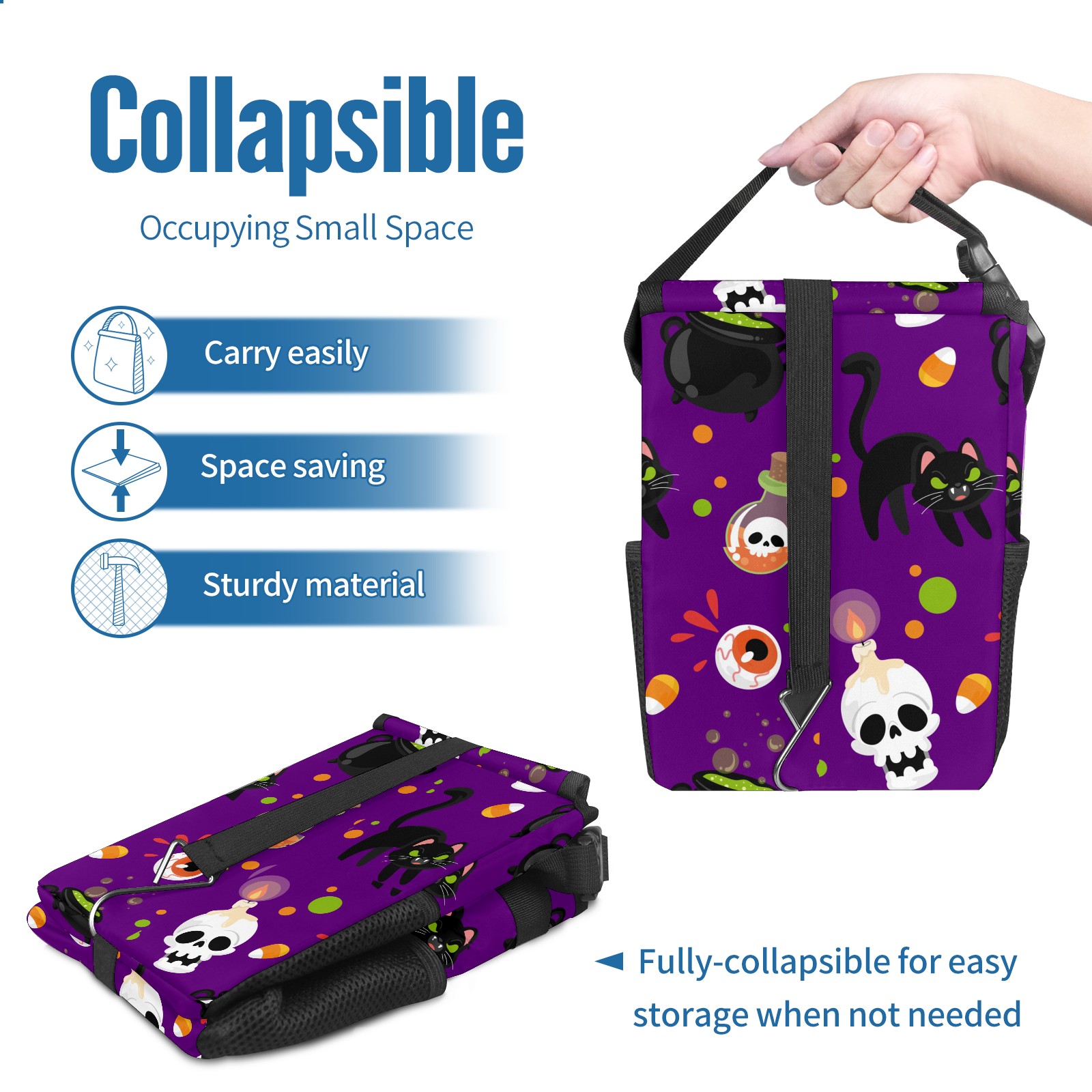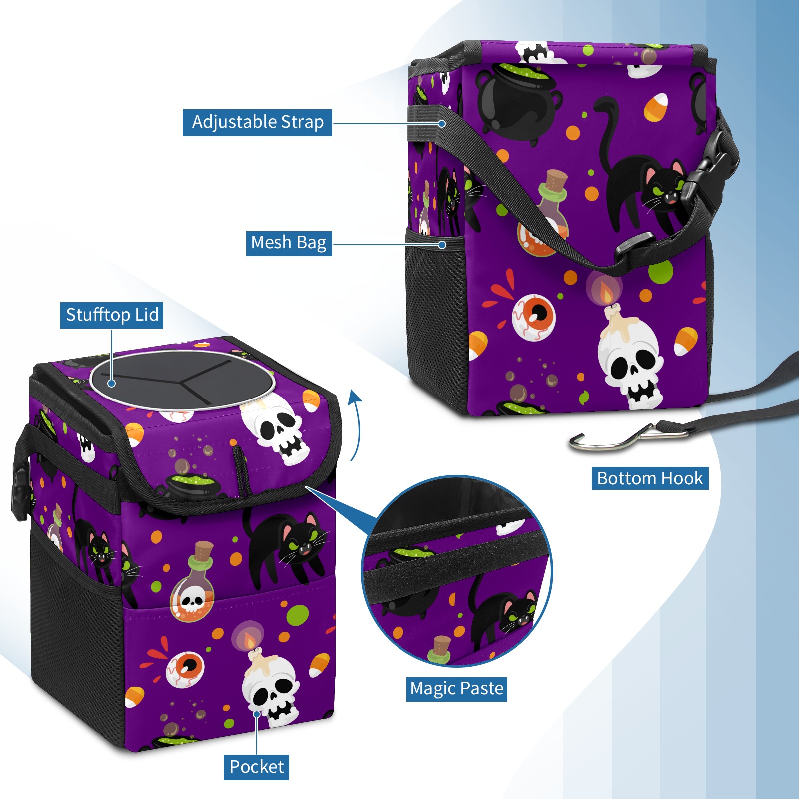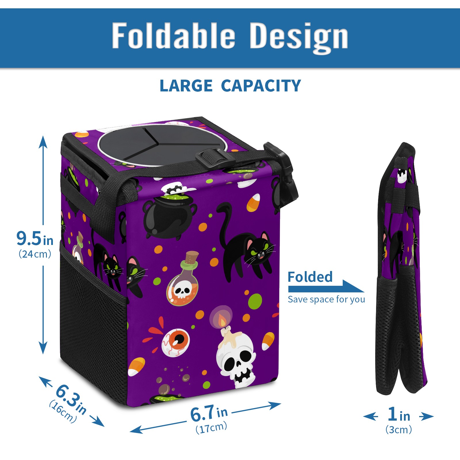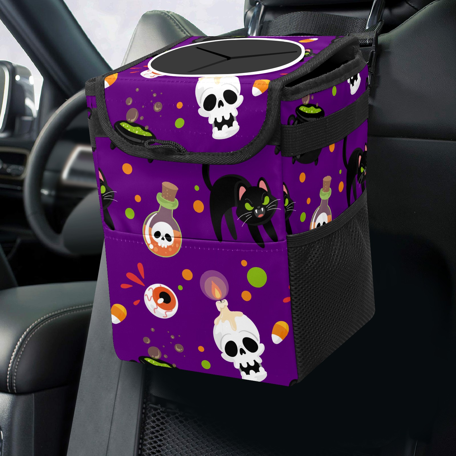 Car Garbage Can — Multi-functional, Lightweight Portable, Reusable Vehicle Trash Can, Waterproof with Sufficient Storage Capacity Skull Candle