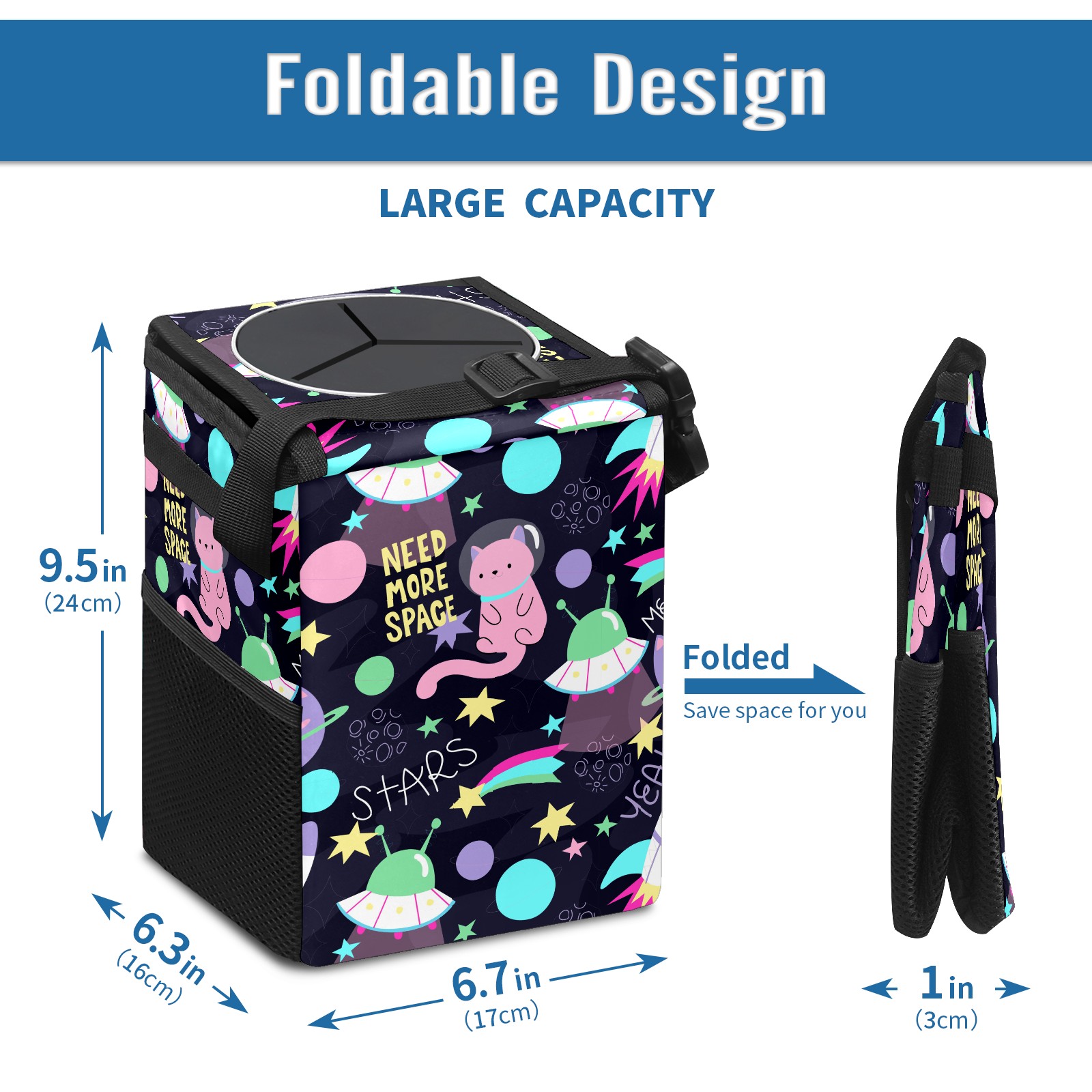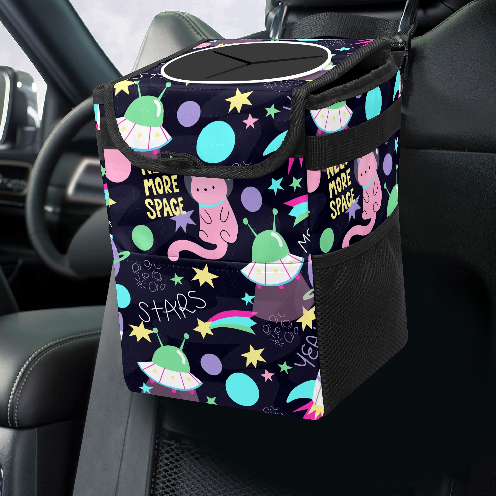 • <p>Keep your car neat with this practical car trash can—built for durability, versatility, and on-the-go convenience! Crafted from quality twill fabric with a waterproof lining, it prevents leaks, keeping seats/floors clean. Clean easily: empty directly or secure a disposable bag with side clips. Adjustable pull cord fits floor, seat, or headrest. 9.5x6.3x6.7 inches, ample space for daily trash, folds flat for storage. More than a trash can, it doubles as a storage bag for cups, toys, docs, and small gadgets—must-have car interior accessory. Installs in seconds on seats, console, or gear shift; adjustable straps keep it stable, no slipping on bumpy roads. Perfect gift for new car owners!</p>
