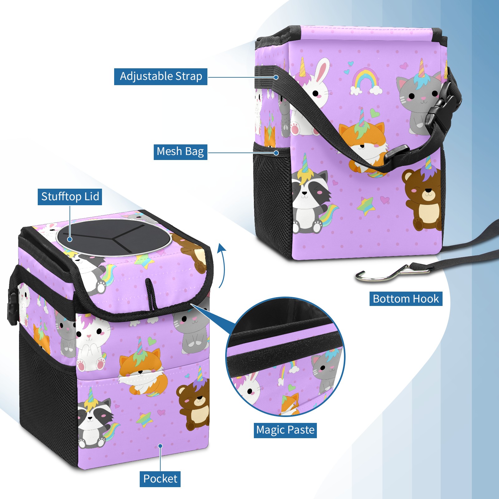 Car Garbage Can — Multi-functional, Lightweight Portable, Reusable Vehicle Trash Can, Waterproof with Sufficient Storage Capacity Cartoon Animal