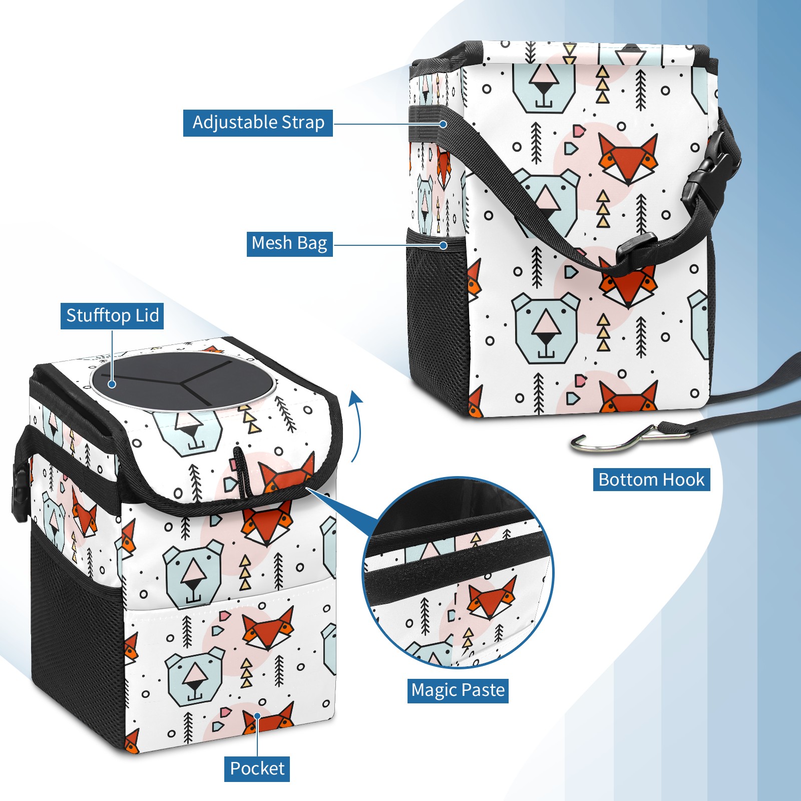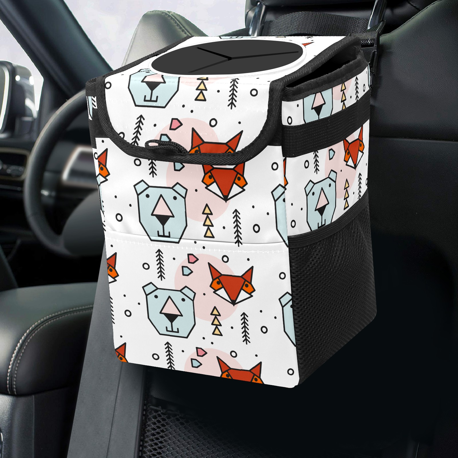 Car Garbage Can — Multi-functional, Lightweight Portable, Reusable Vehicle Trash Can, Waterproof with Sufficient Storage Capacity Fox Bear