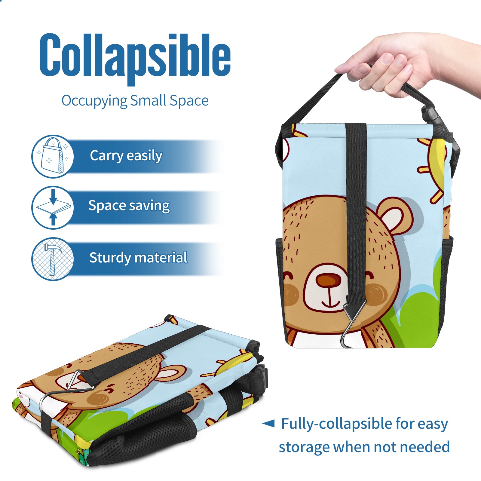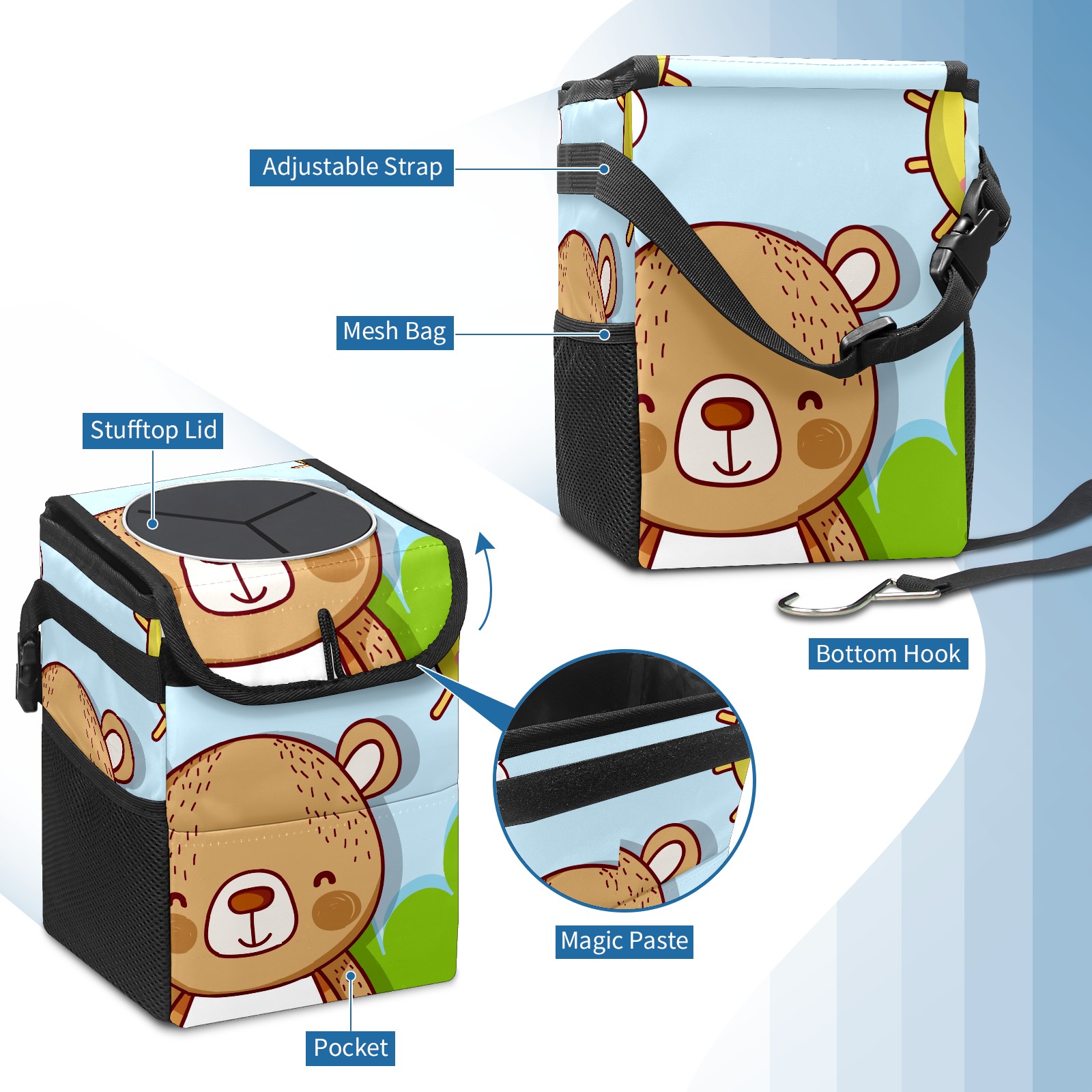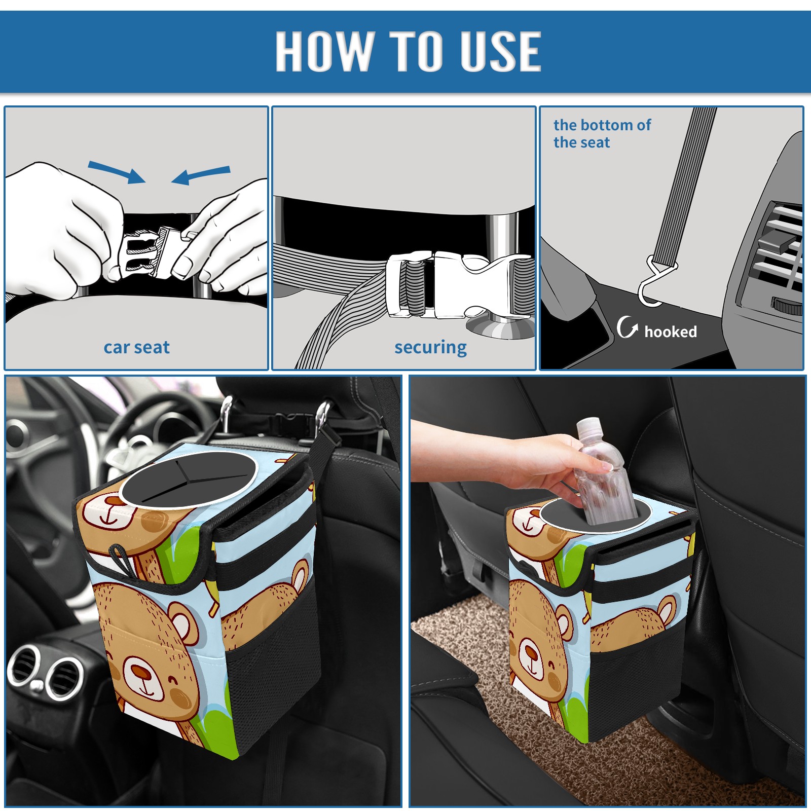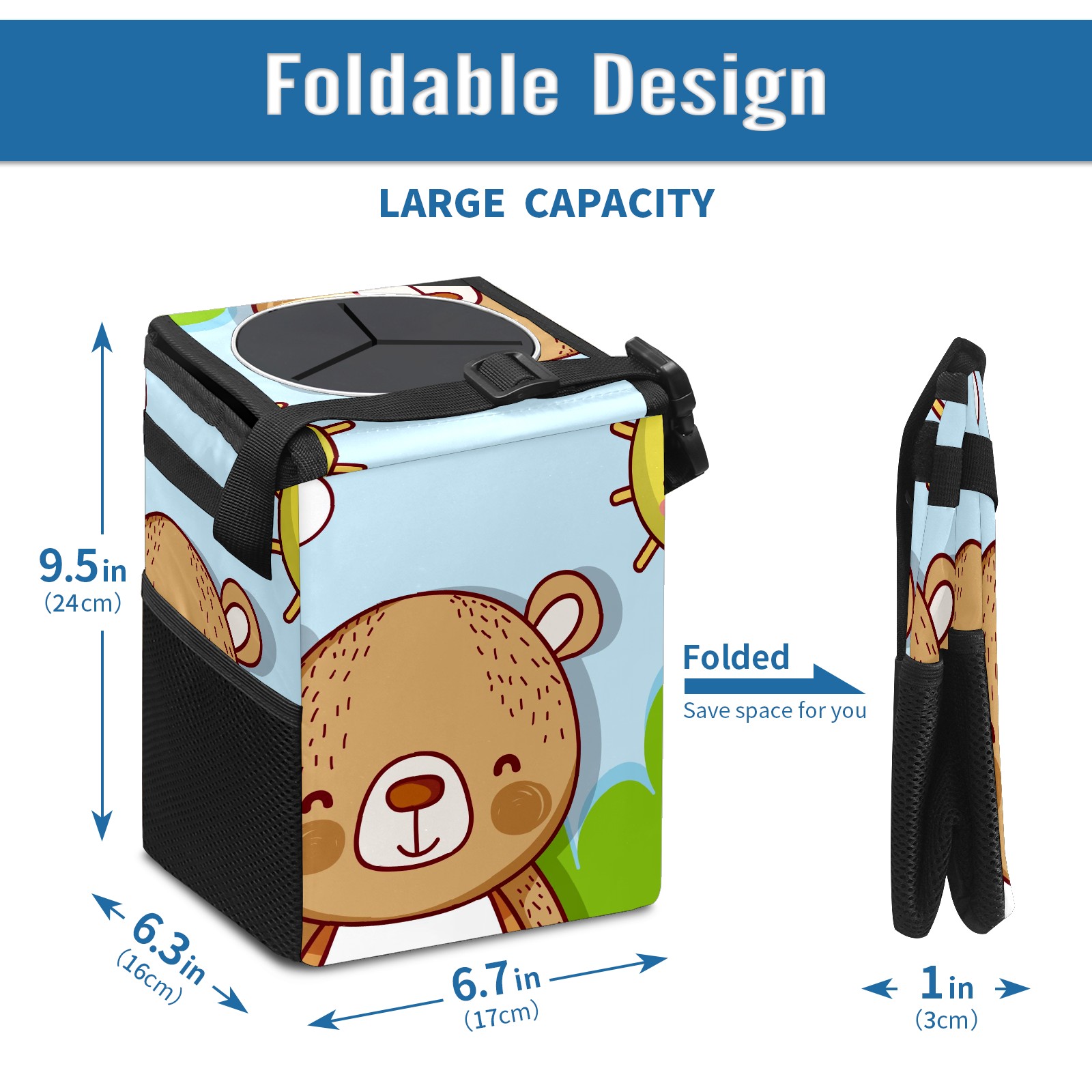Car Garbage Can — Multi-functional, Lightweight Portable, Reusable Vehicle Trash Can, Waterproof with Sufficient Storage Capacity Cartoon Bear