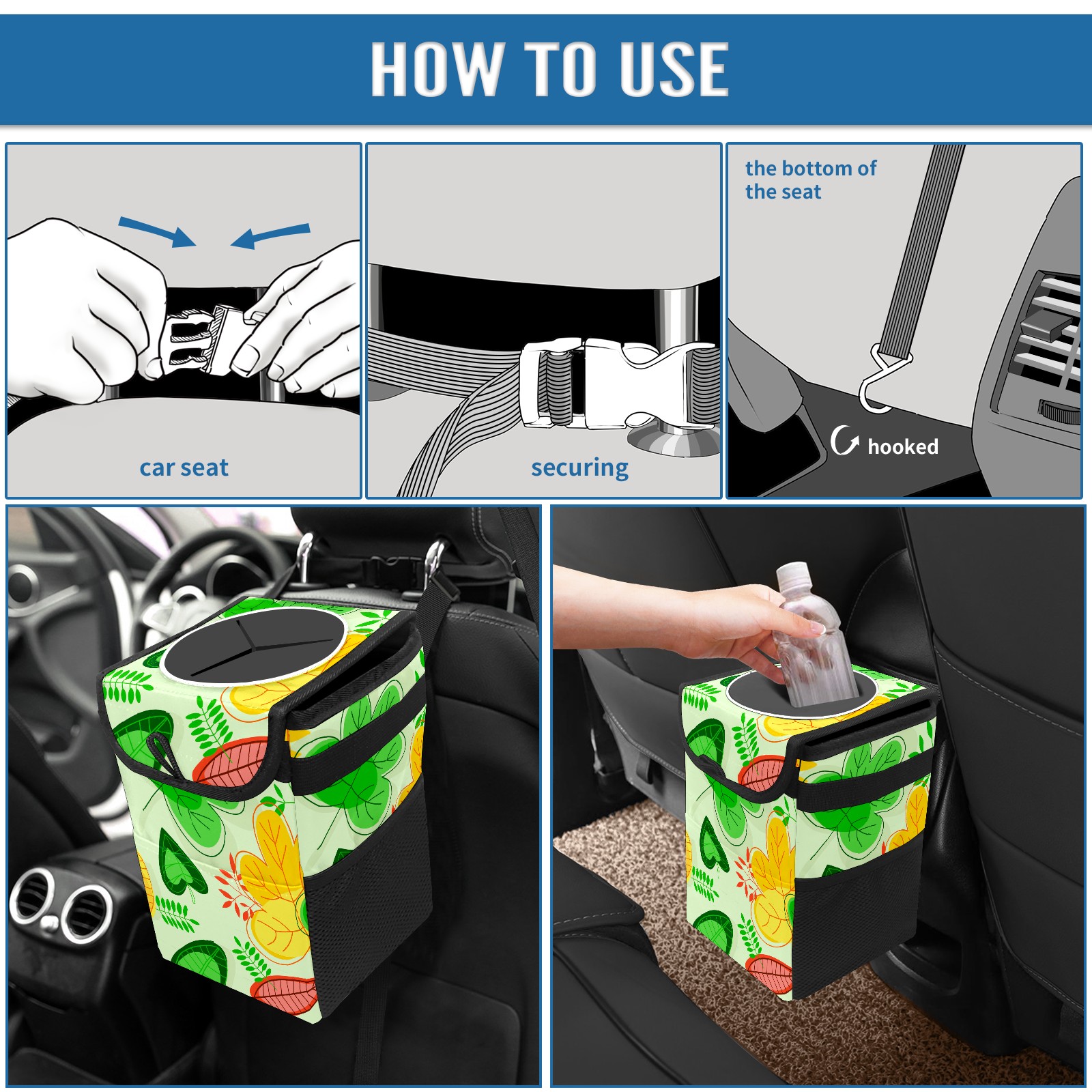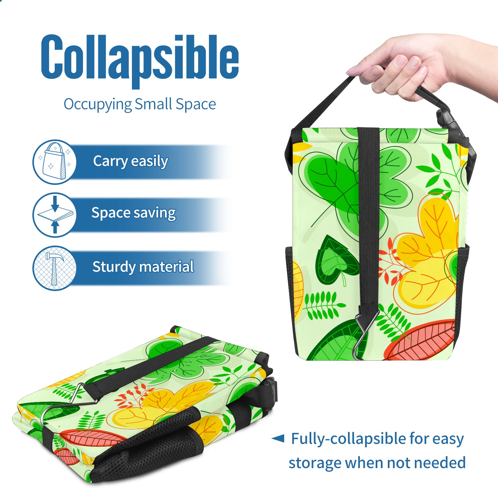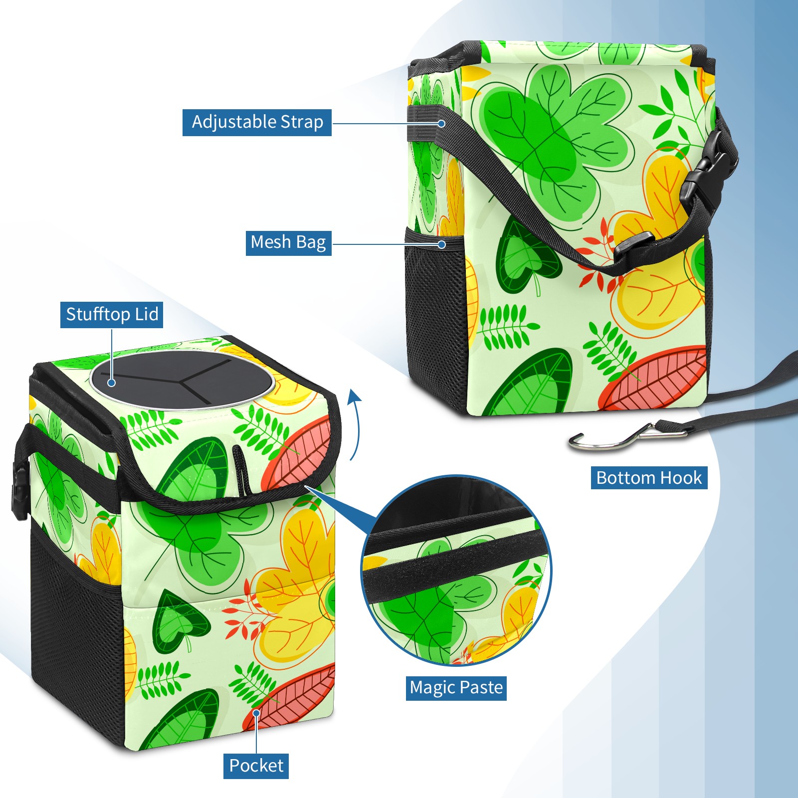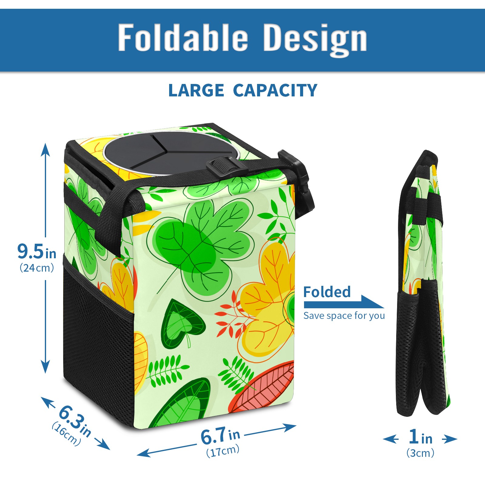 Car Garbage Can — Multi-functional, Lightweight Portable, Reusable Vehicle Trash Can, Waterproof with Sufficient Storage Capacity Color Leaf