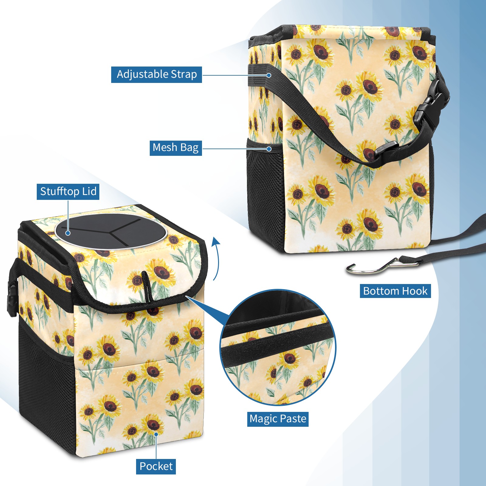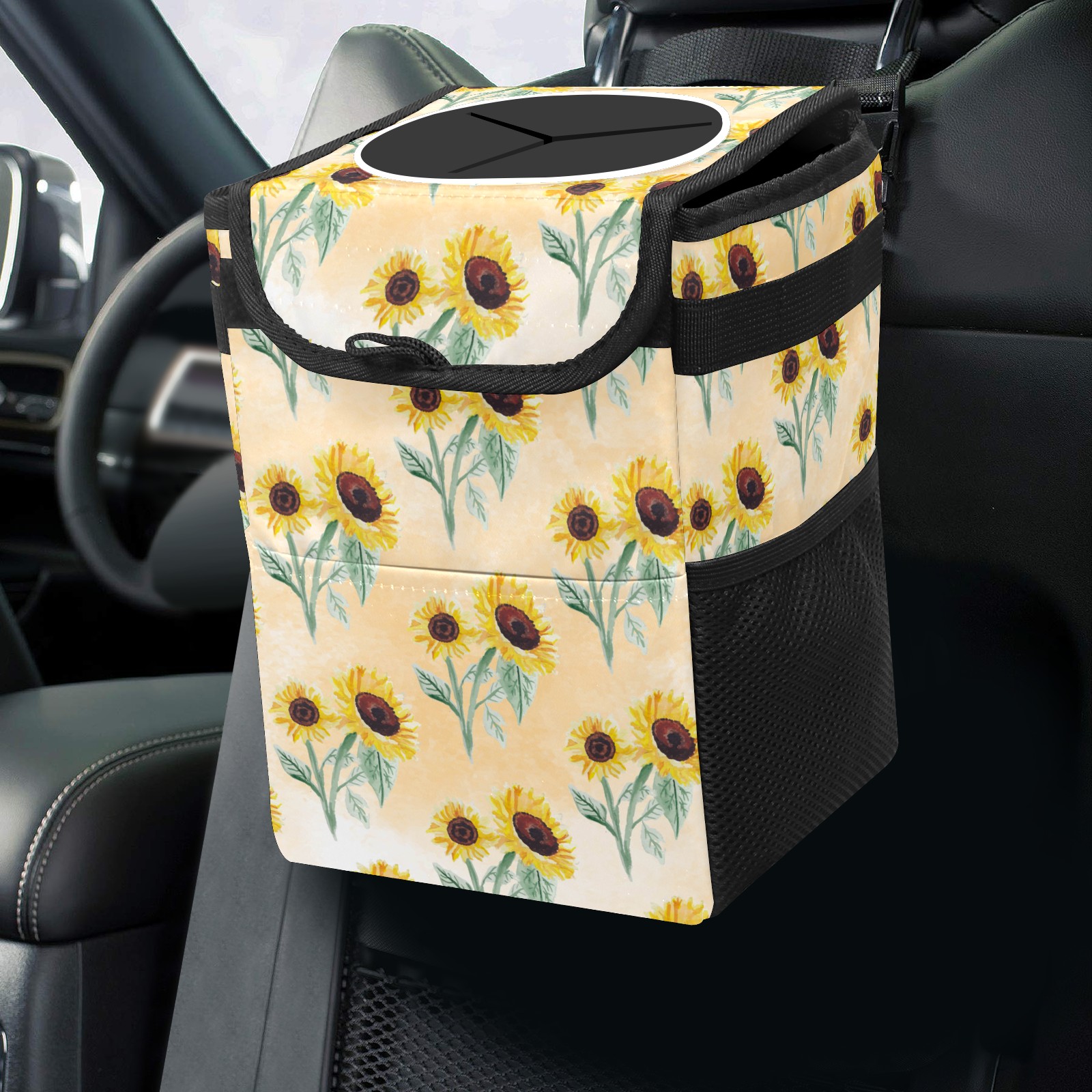 Car Garbage Can — Multi-functional, Lightweight Portable, Reusable Vehicle Trash Can, Waterproof with Sufficient Storage Capacity Sunflower Leaf