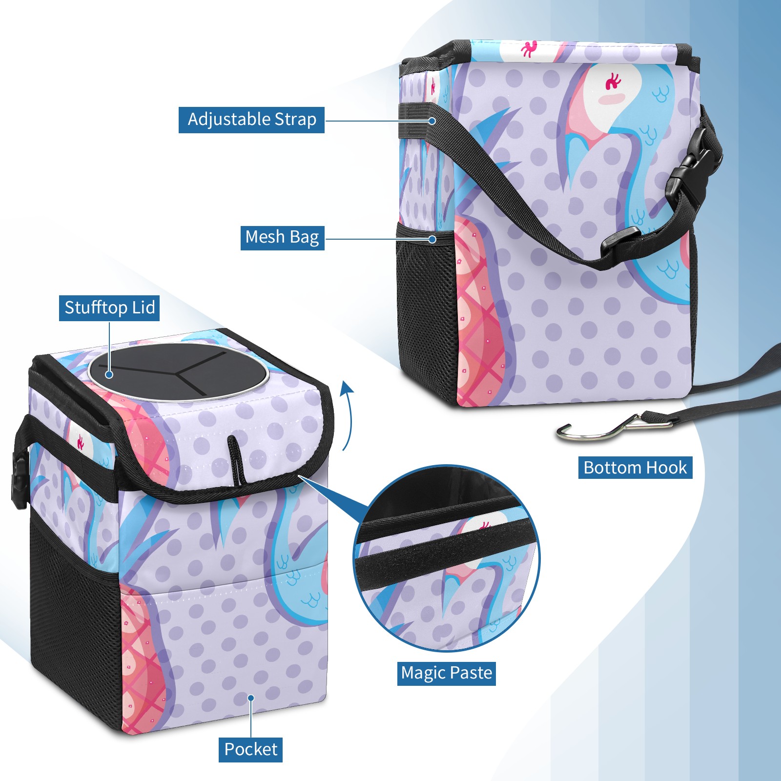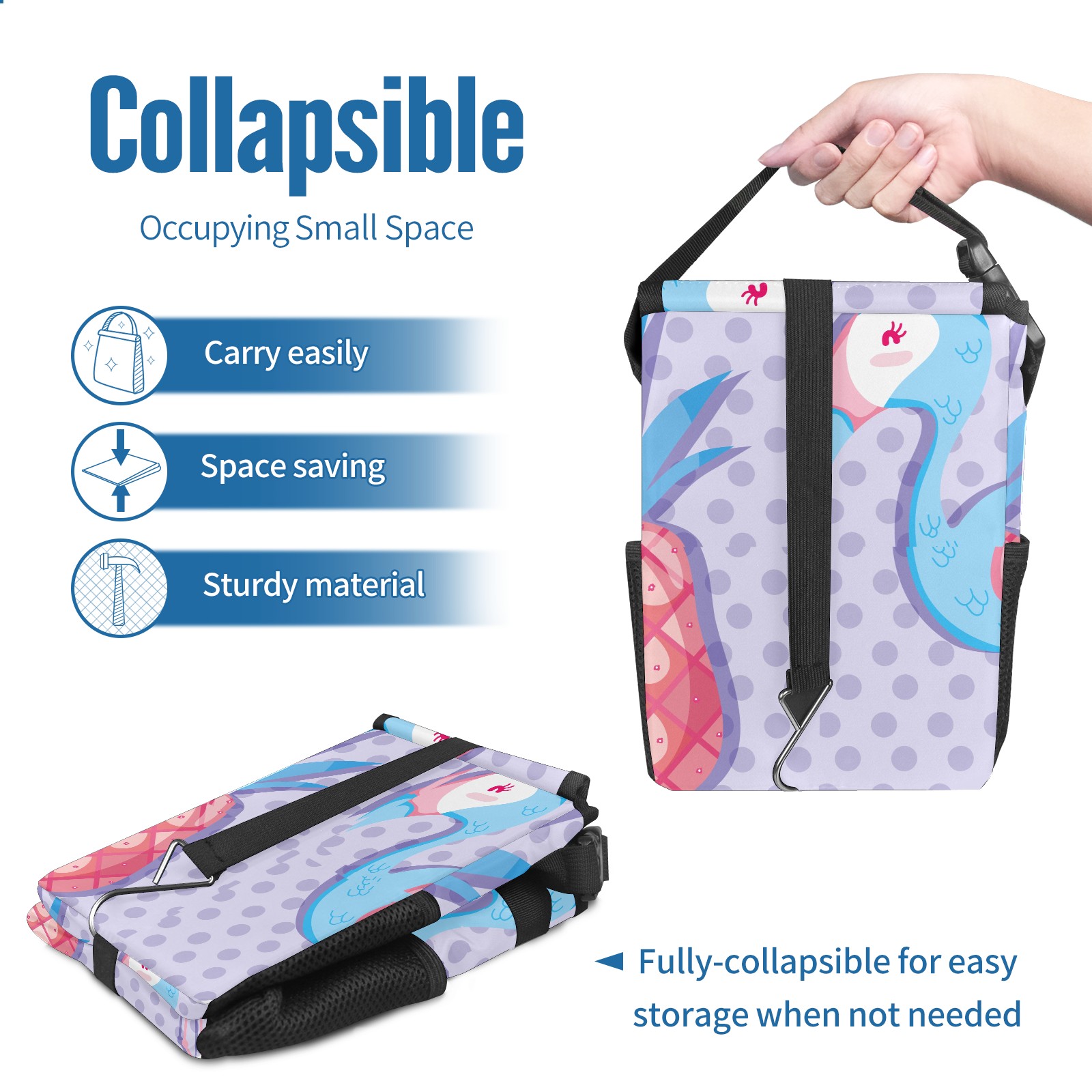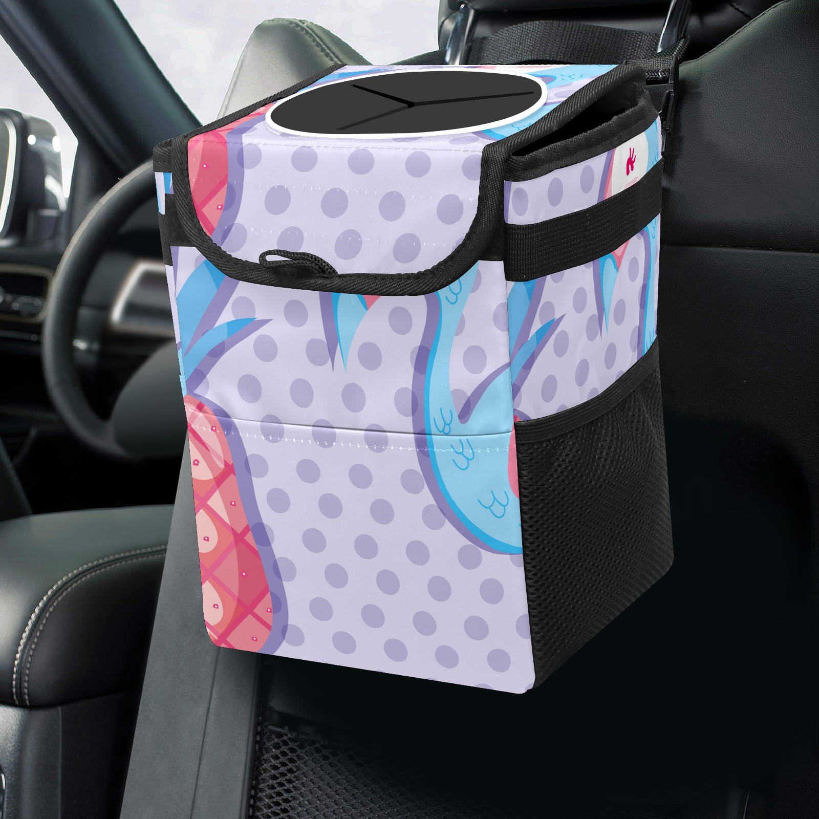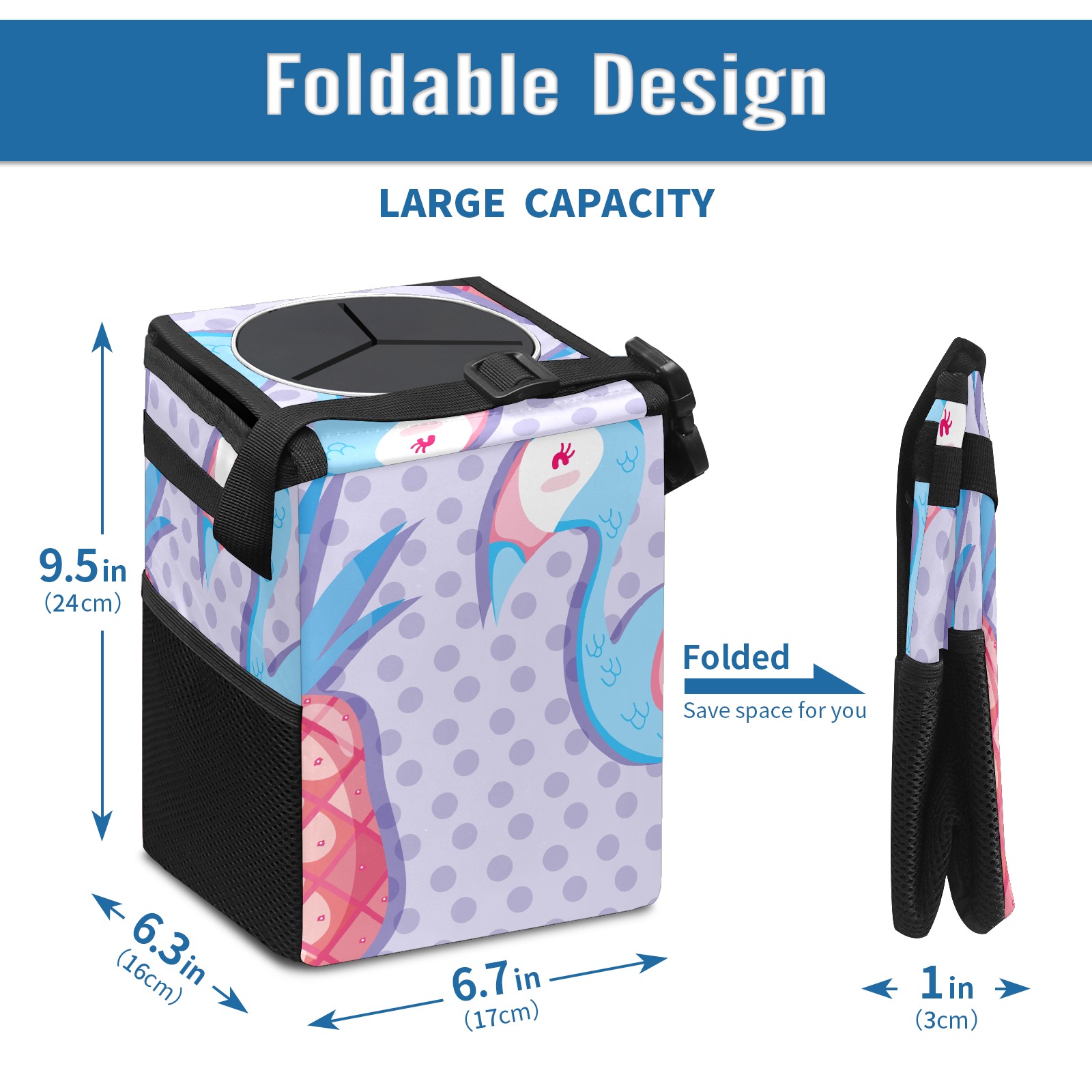 Car Garbage Can — Multi-functional, Lightweight Portable, Reusable Vehicle Trash Can, Waterproof with Sufficient Storage Capacity Cute Flamingo