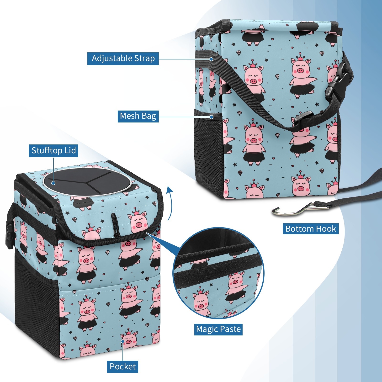 Car Garbage Can — Multi-functional, Lightweight Portable, Reusable Vehicle Trash Can, Waterproof with Sufficient Storage Capacity Cartoon Pig