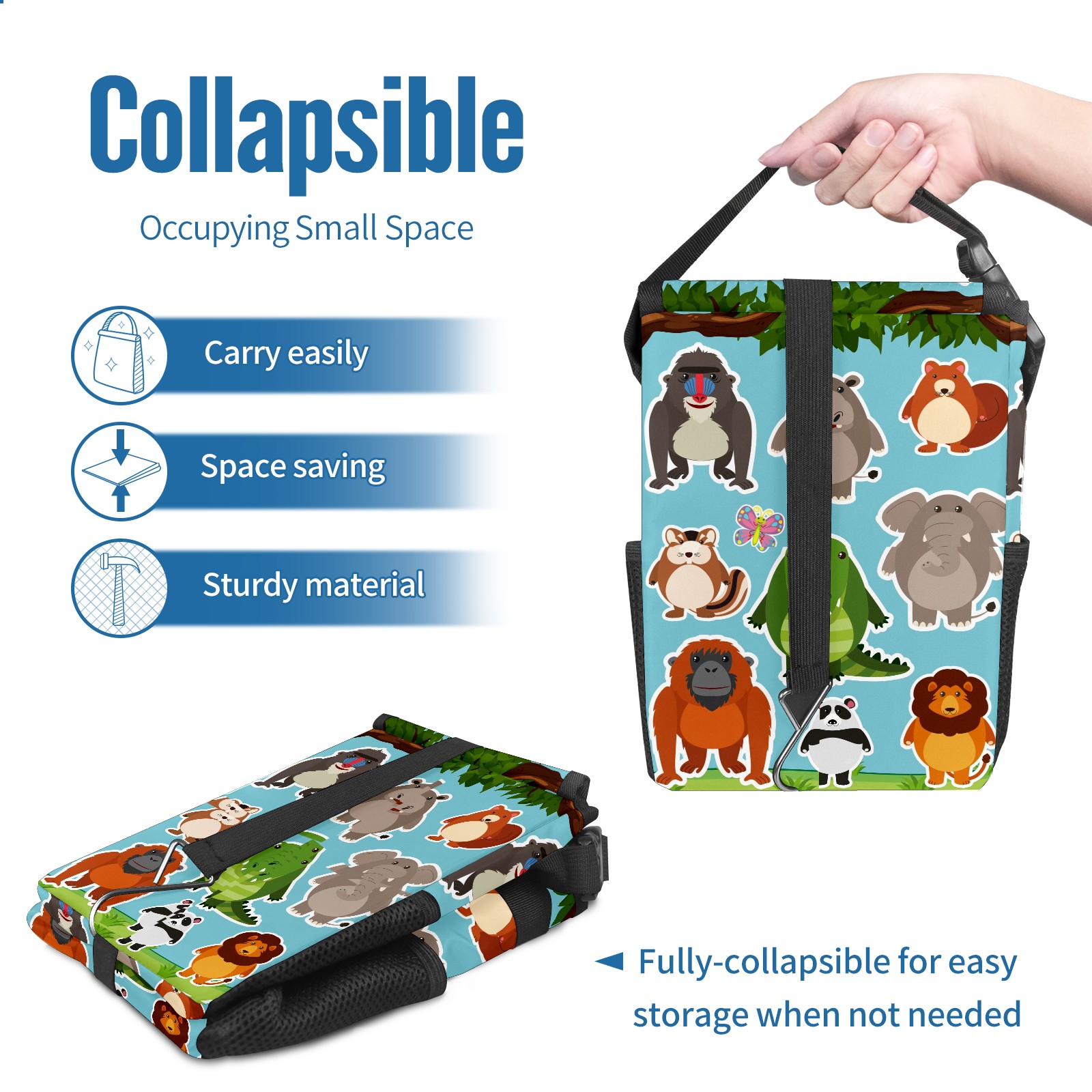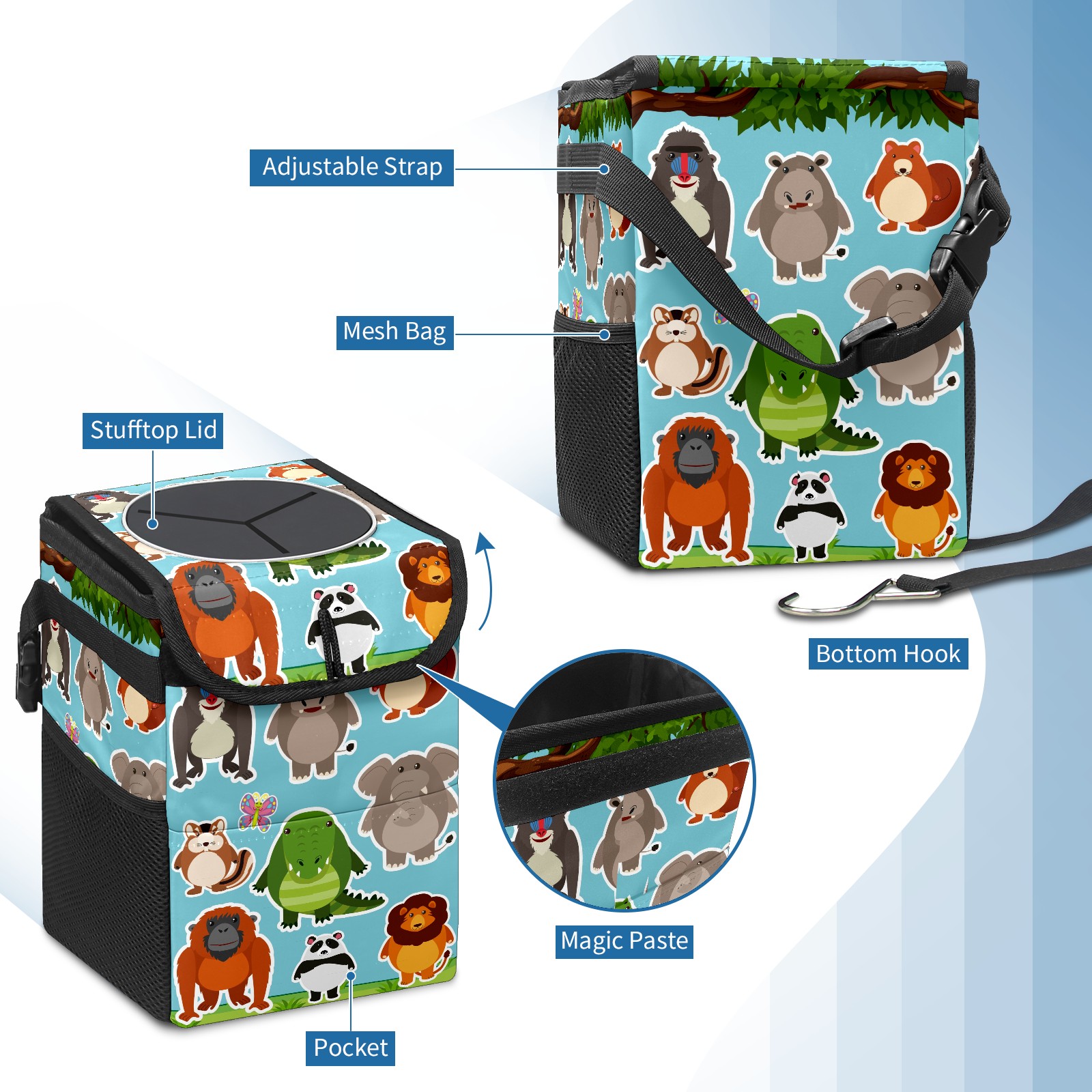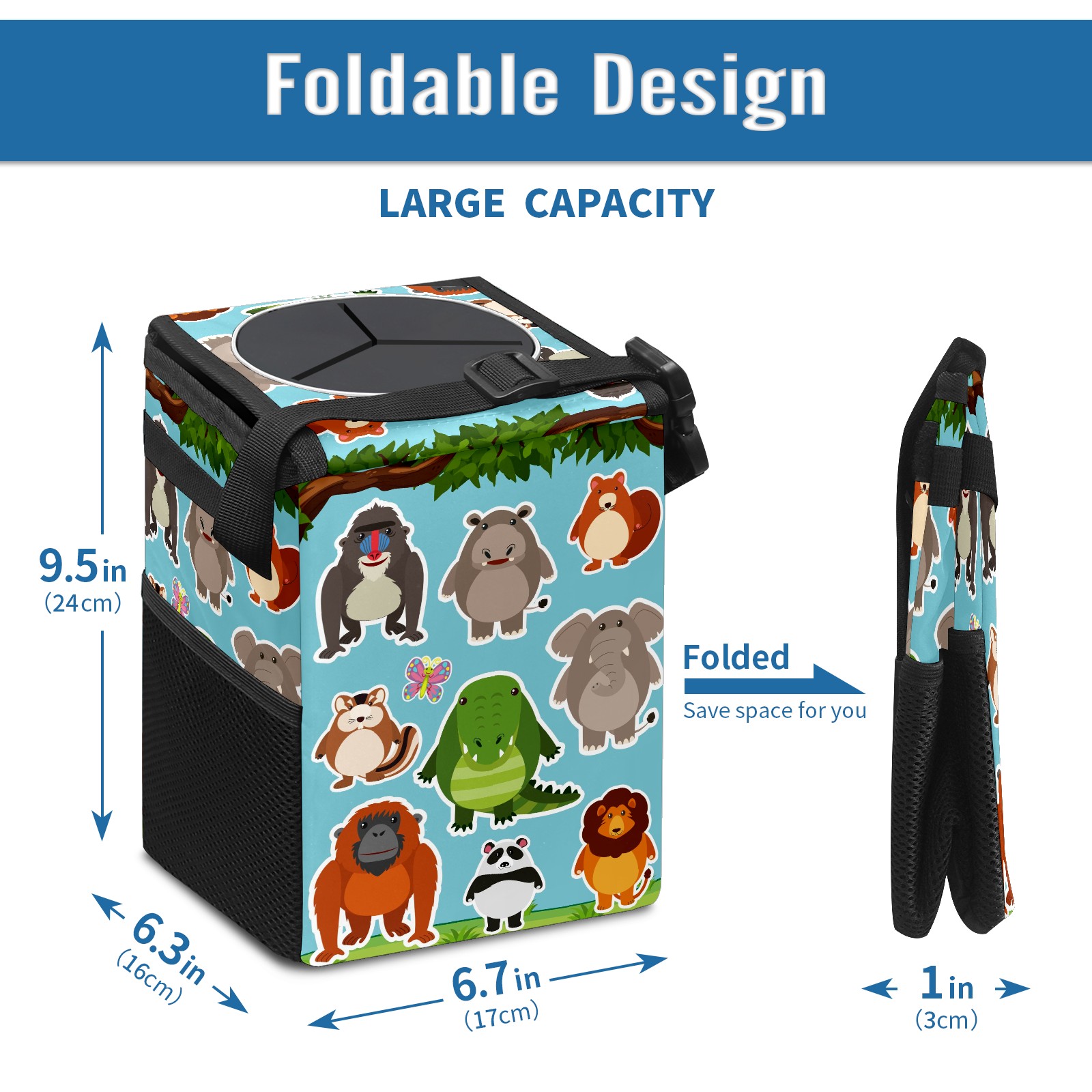 Car Garbage Can — Multi-functional, Lightweight Portable, Reusable Vehicle Trash Can, Waterproof with Sufficient Storage Capacity Cute Animals