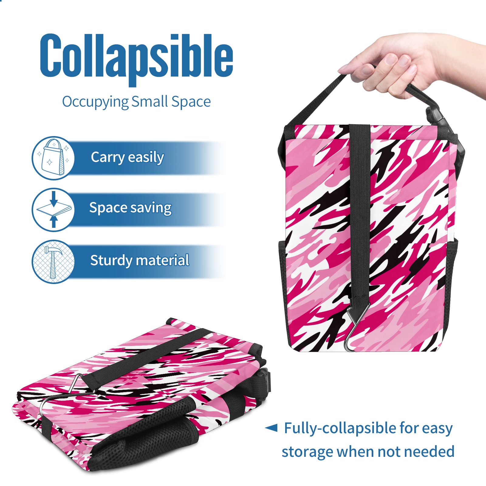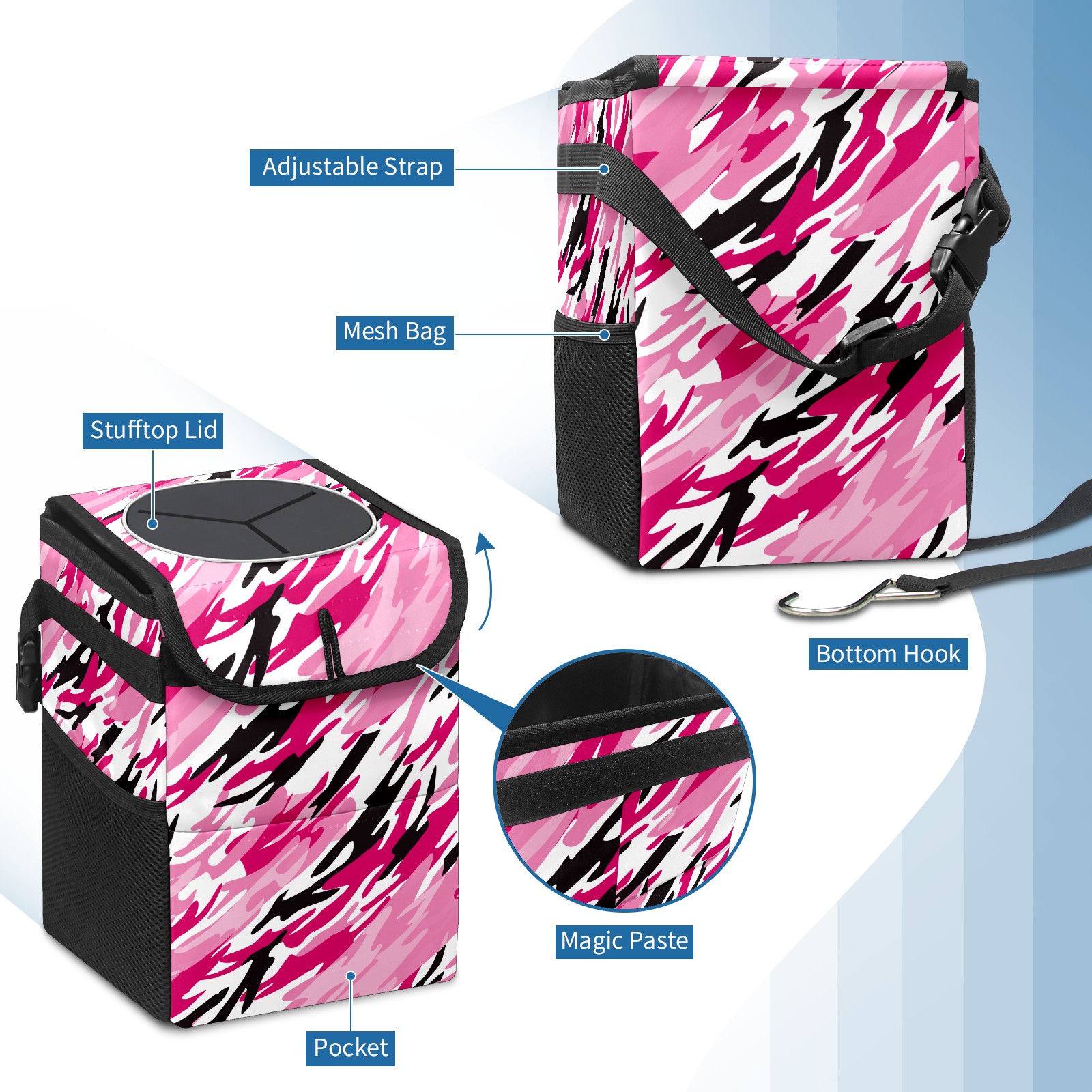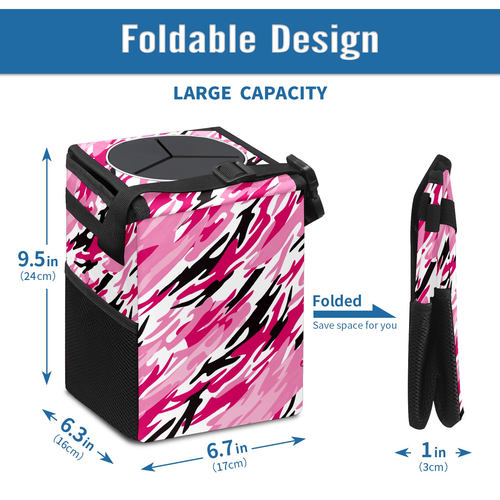 Car Garbage Can — Multi-functional, Lightweight Portable, Reusable Vehicle Trash Can, Waterproof with Sufficient Storage Capacity Pink Camo