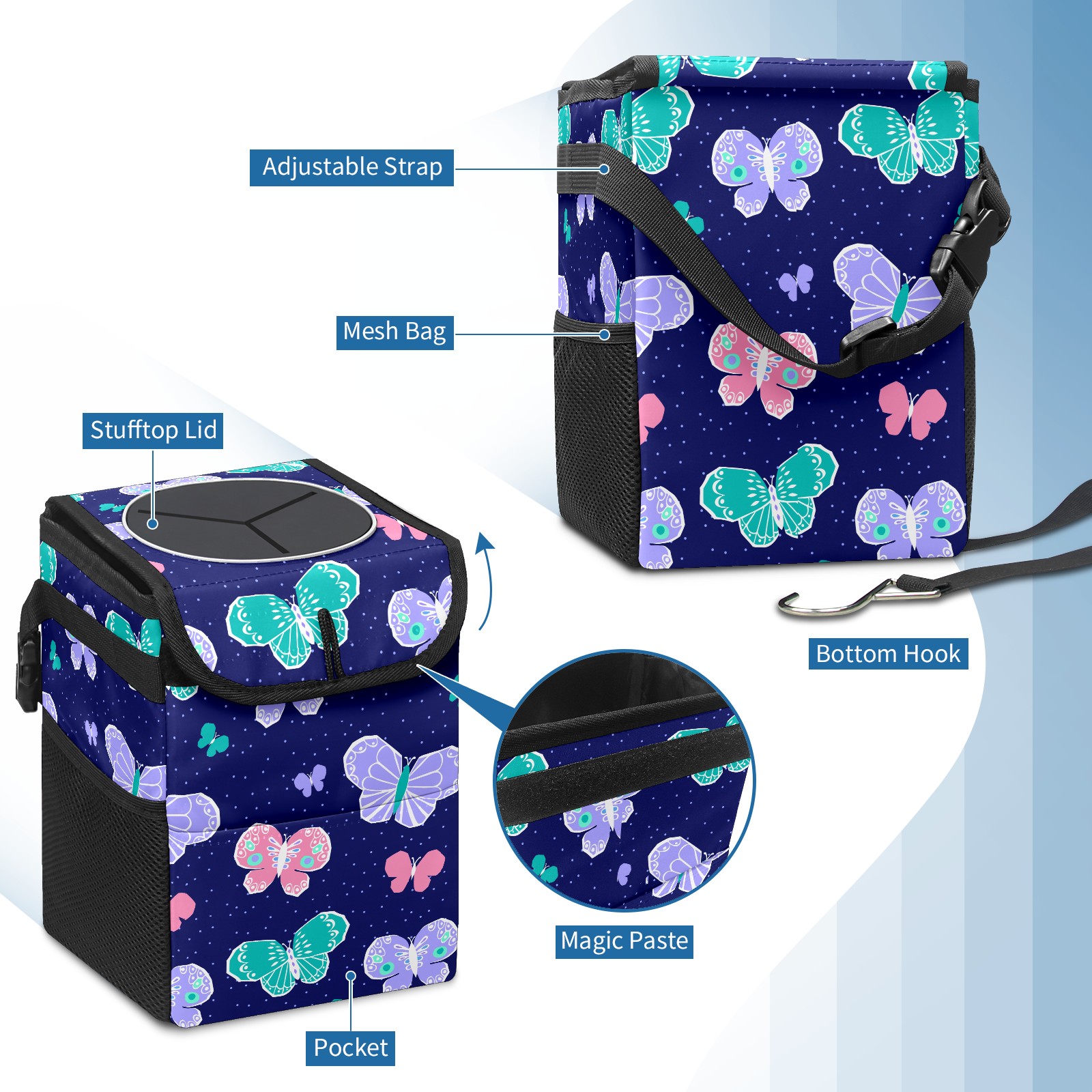 Car Garbage Can — Multi-functional, Lightweight Portable, Reusable Vehicle Trash Can, Waterproof with Sufficient Storage Capacity Paper Butterfly