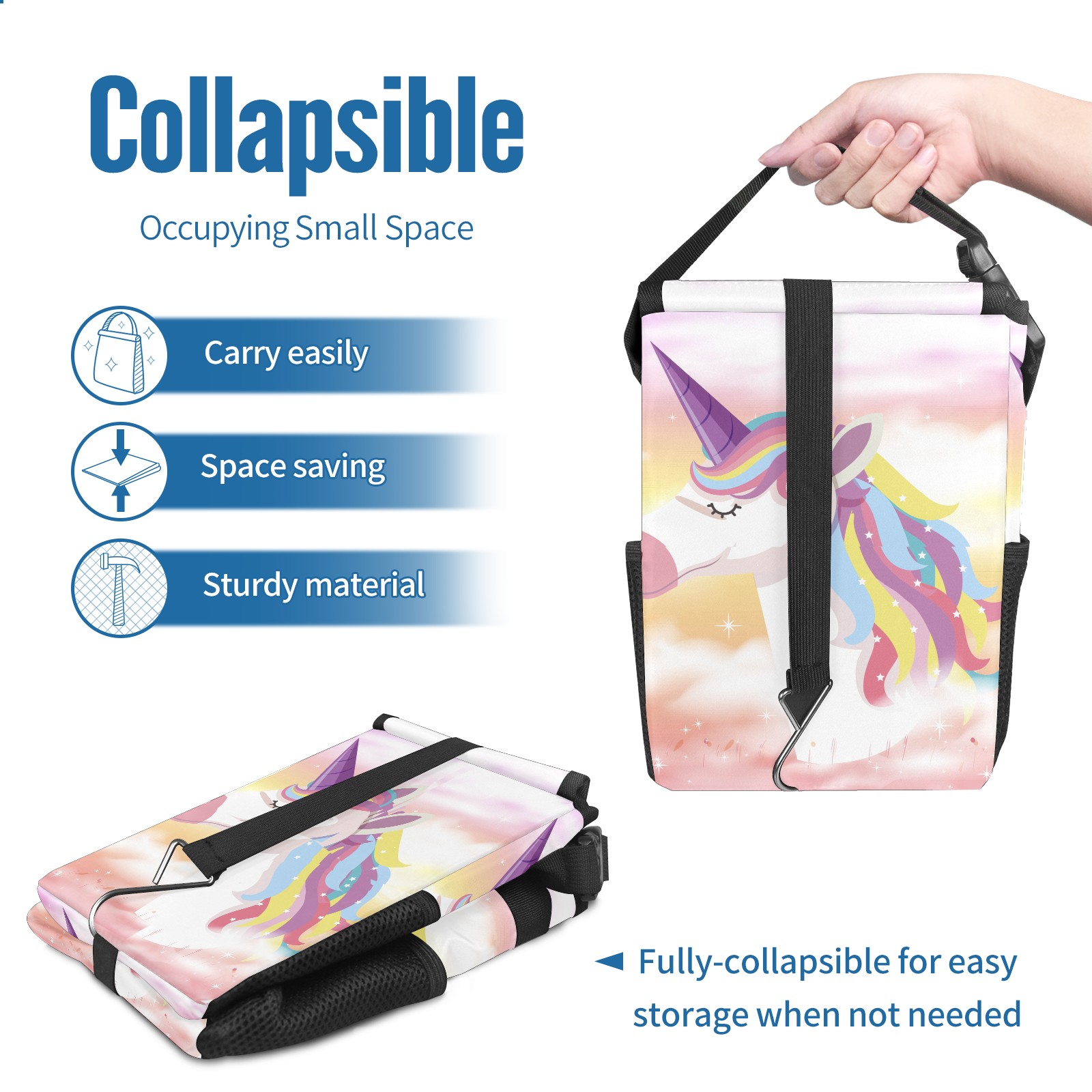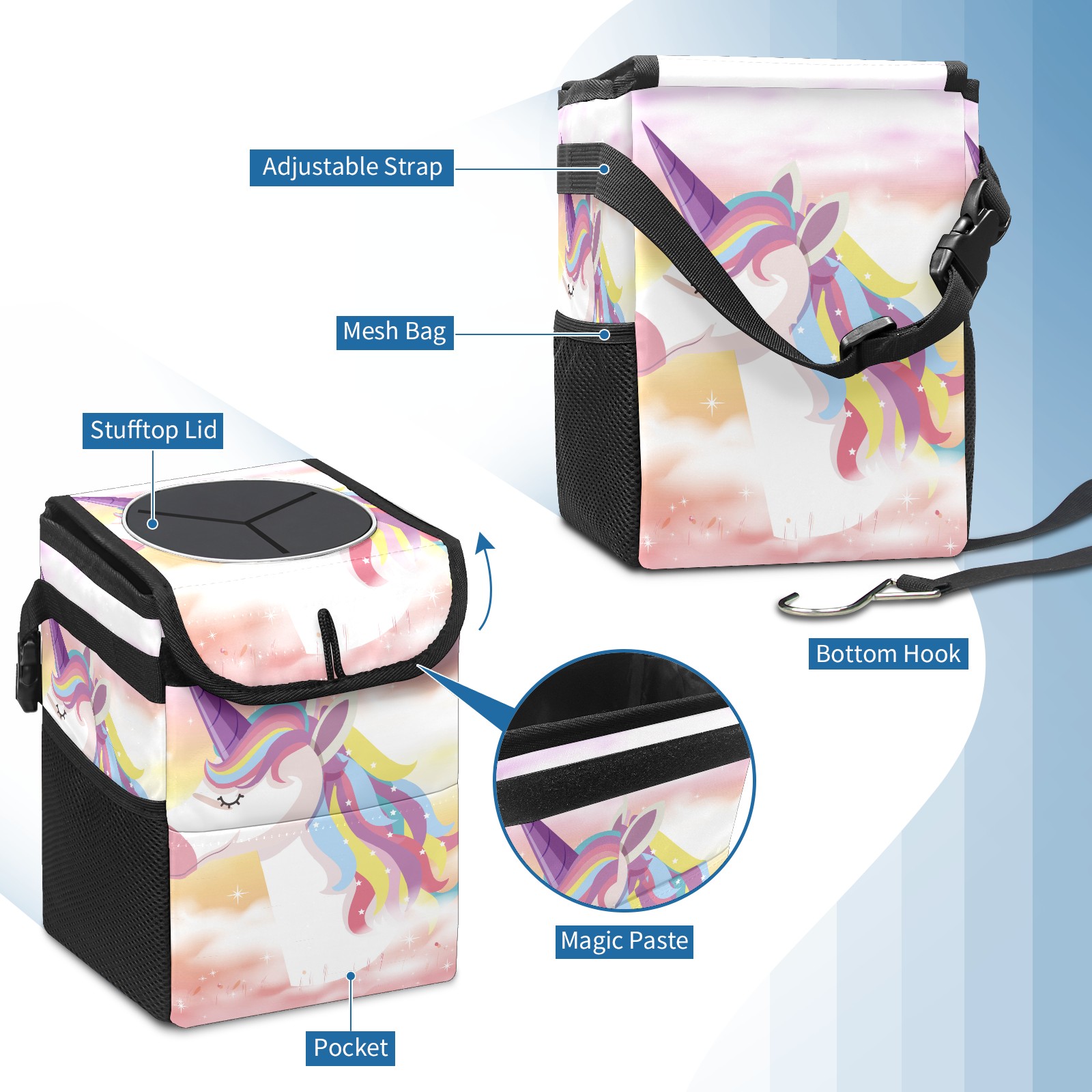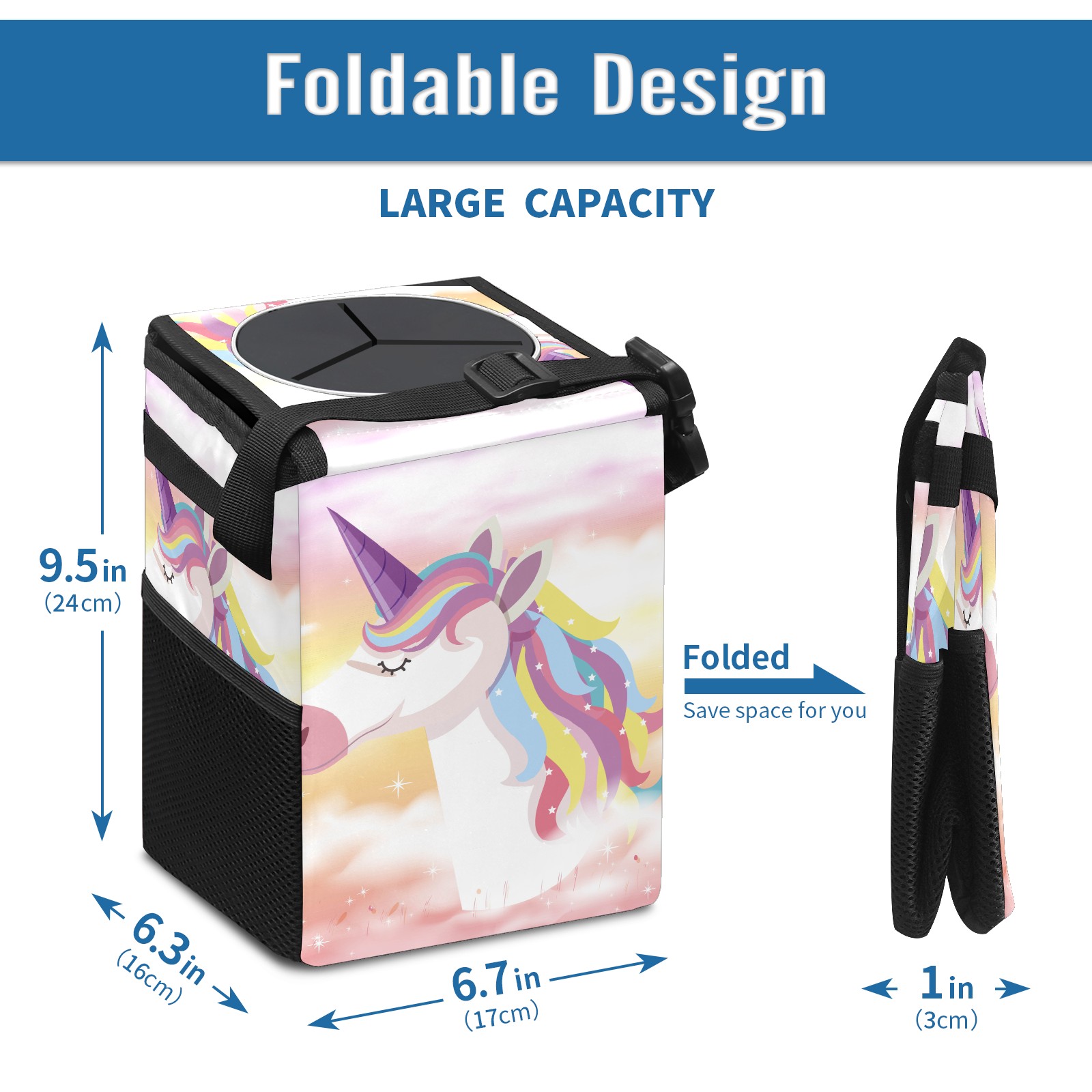 Car Garbage Can — Multi-functional, Lightweight Portable, Reusable Vehicle Trash Can, Waterproof with Sufficient Storage Capacity Rainbow Cloud