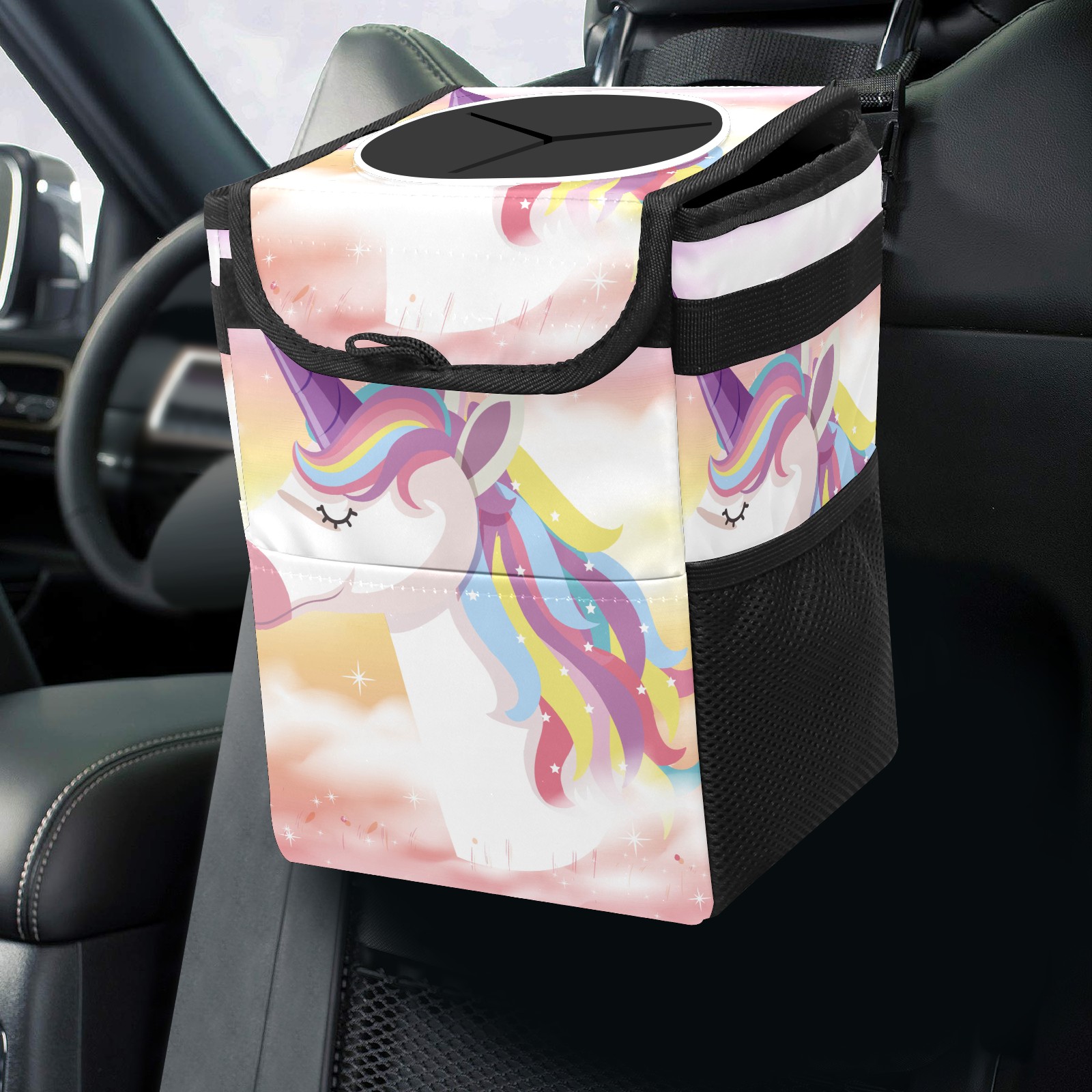 • <p>Keep your car neat with this practical car trash can—built for durability, versatility, and on-the-go convenience! Crafted from quality twill fabric with a waterproof lining, it prevents leaks, keeping seats/floors clean. Clean easily: empty directly or secure a disposable bag with side clips. Adjustable pull cord fits floor, seat, or headrest. 9.5x6.3x6.7 inches, ample space for daily trash, folds flat for storage. More than a trash can, it doubles as a storage bag for cups, toys, docs, and small gadgets—must-have car interior accessory. Installs in seconds on seats, console, or gear shift; adjustable straps keep it stable, no slipping on bumpy roads. Perfect gift for new car owners!</p>