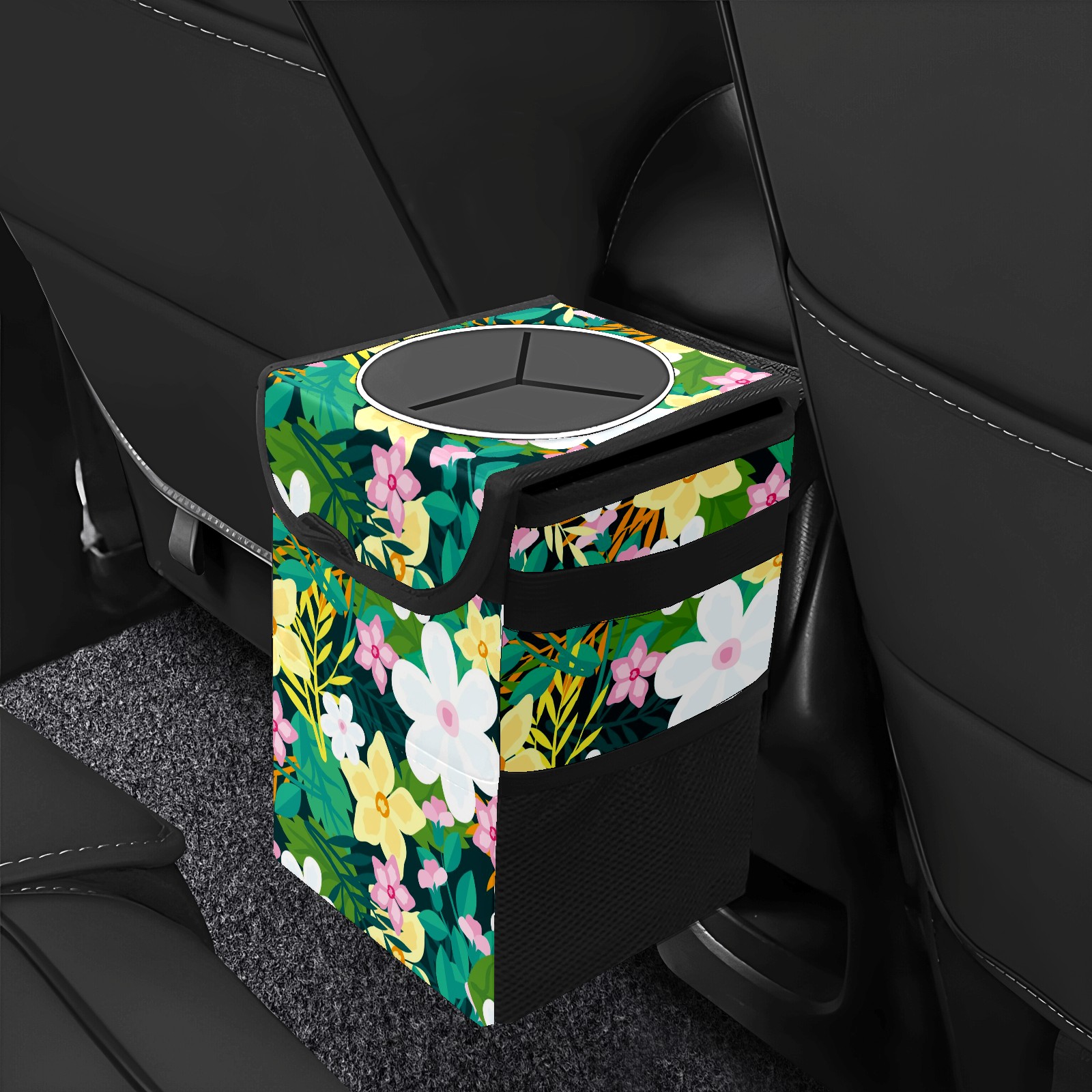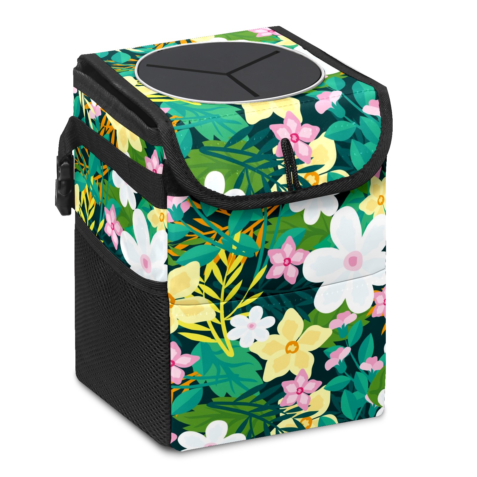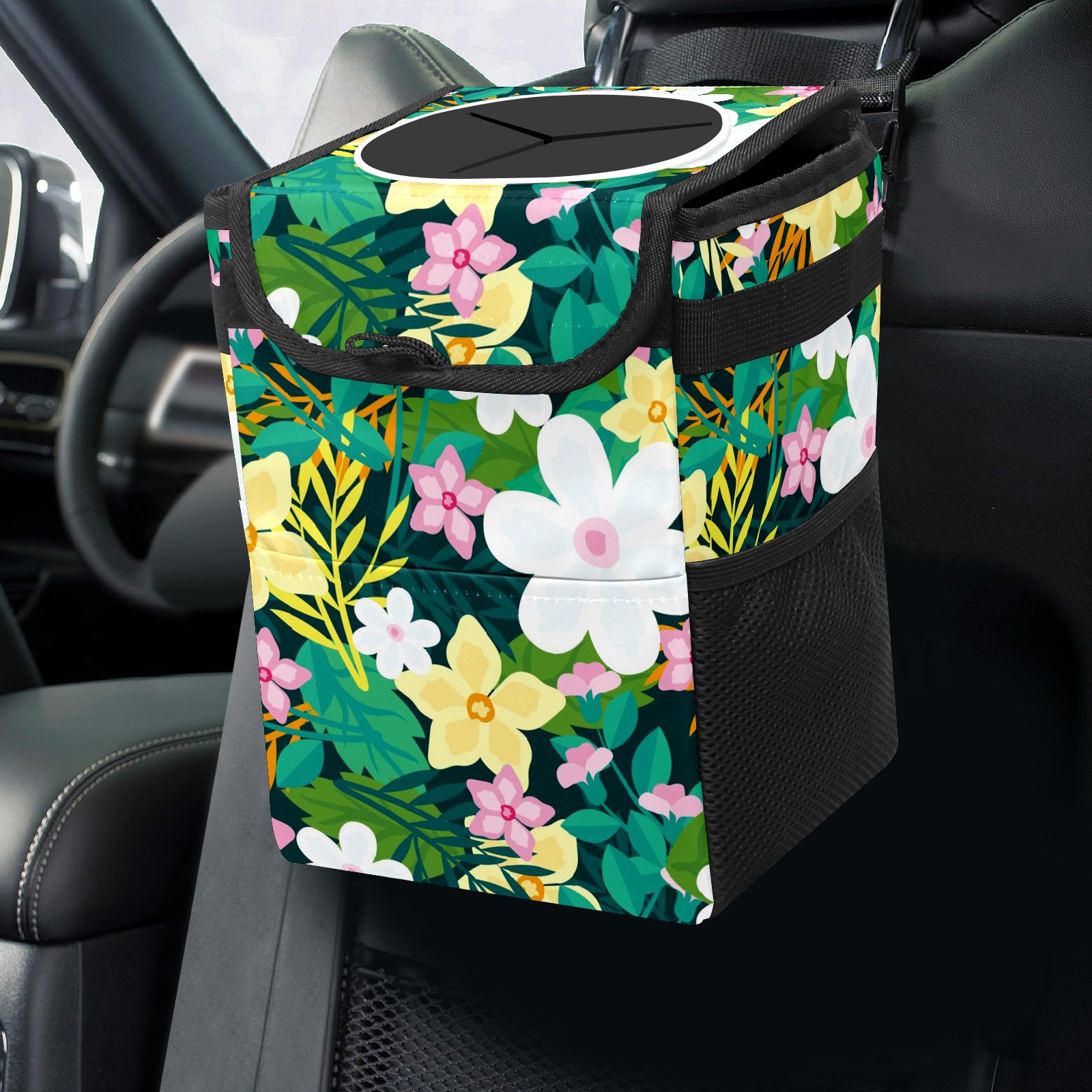 Car Garbage Can — Multi-functional, Lightweight Portable, Reusable Vehicle Trash Can, Waterproof with Sufficient Storage Capacity Floral Background