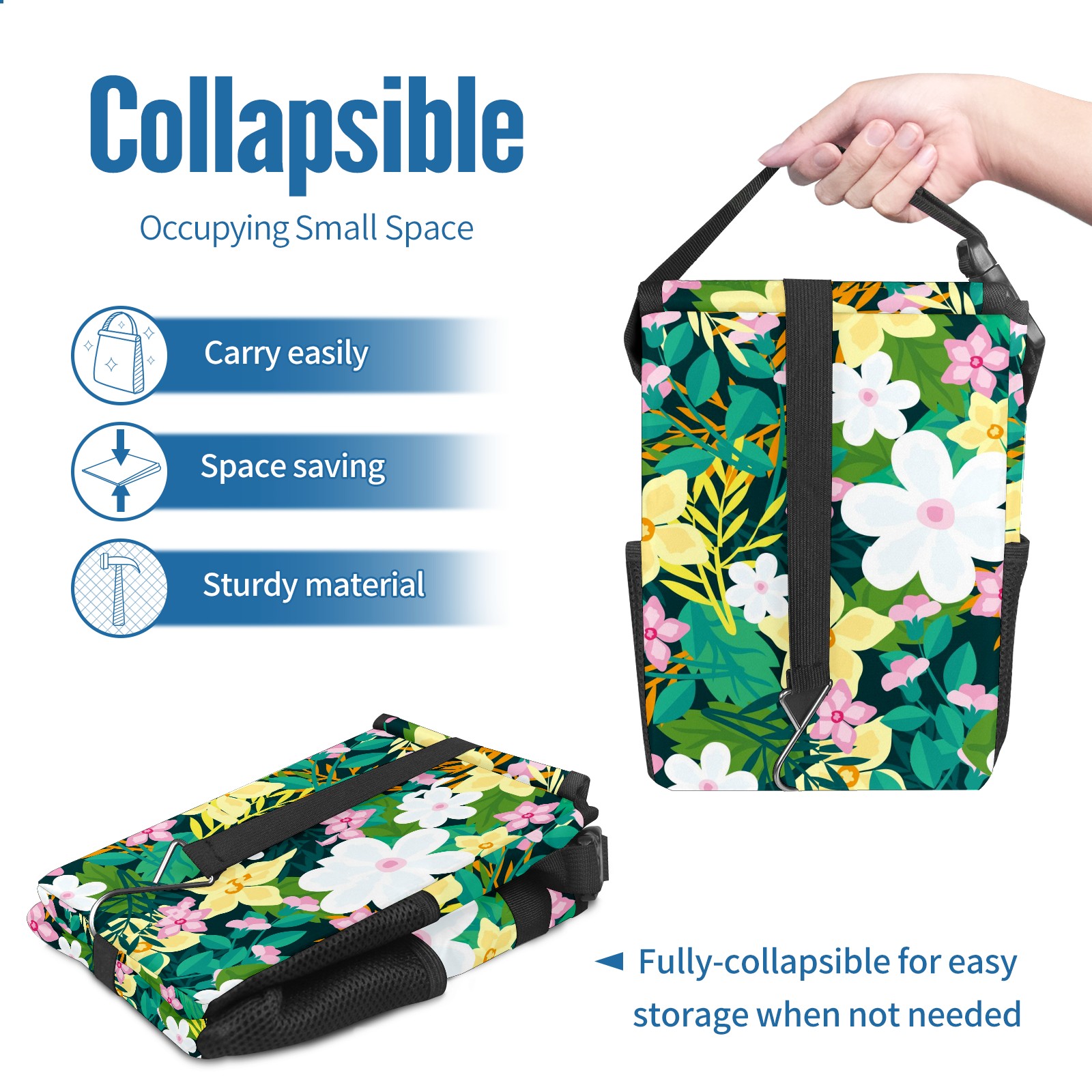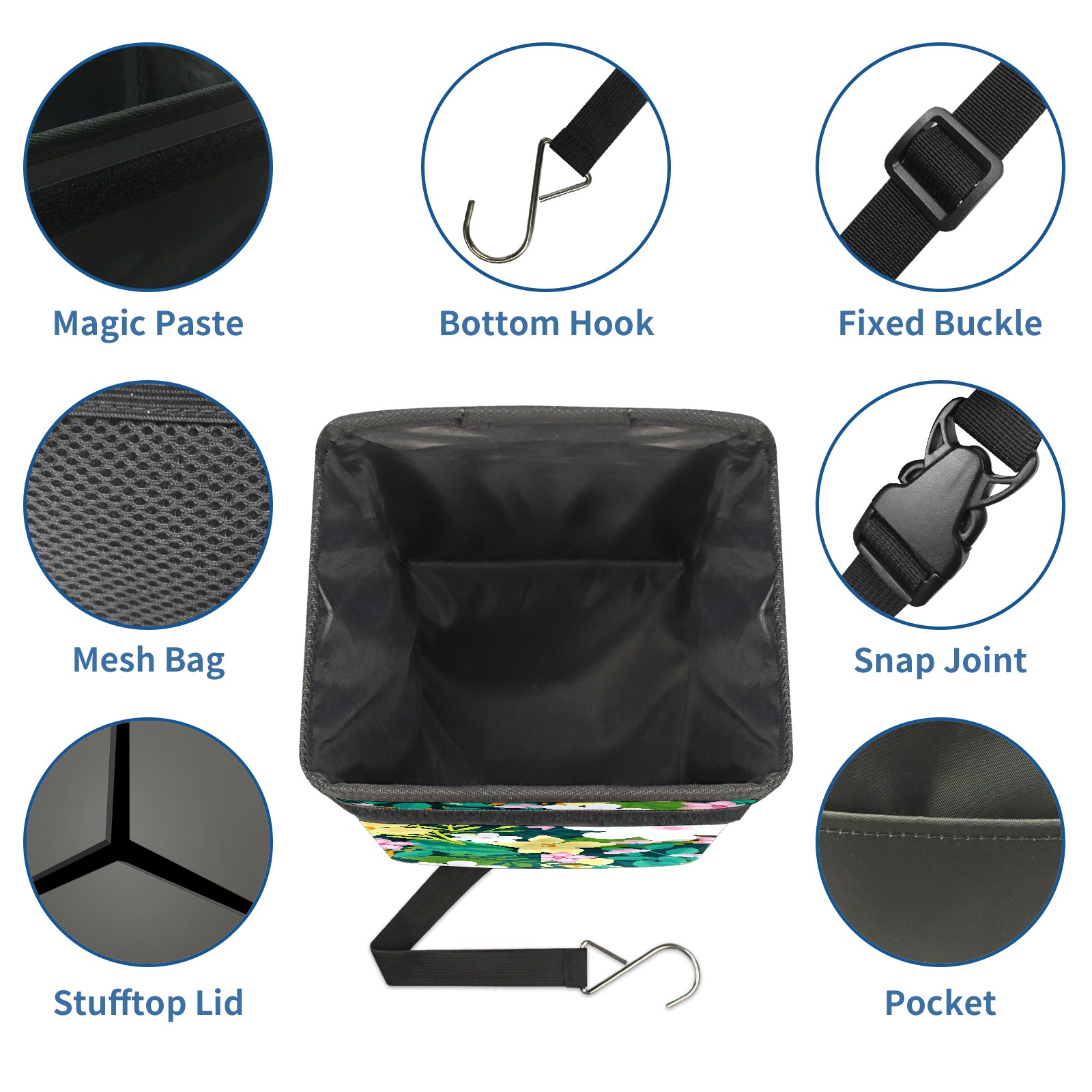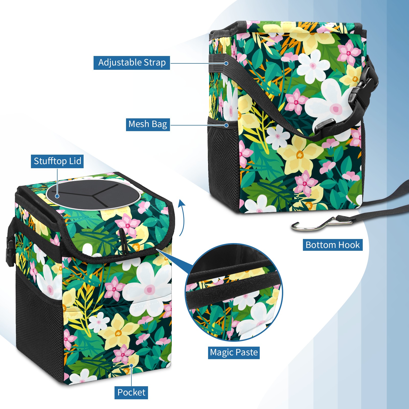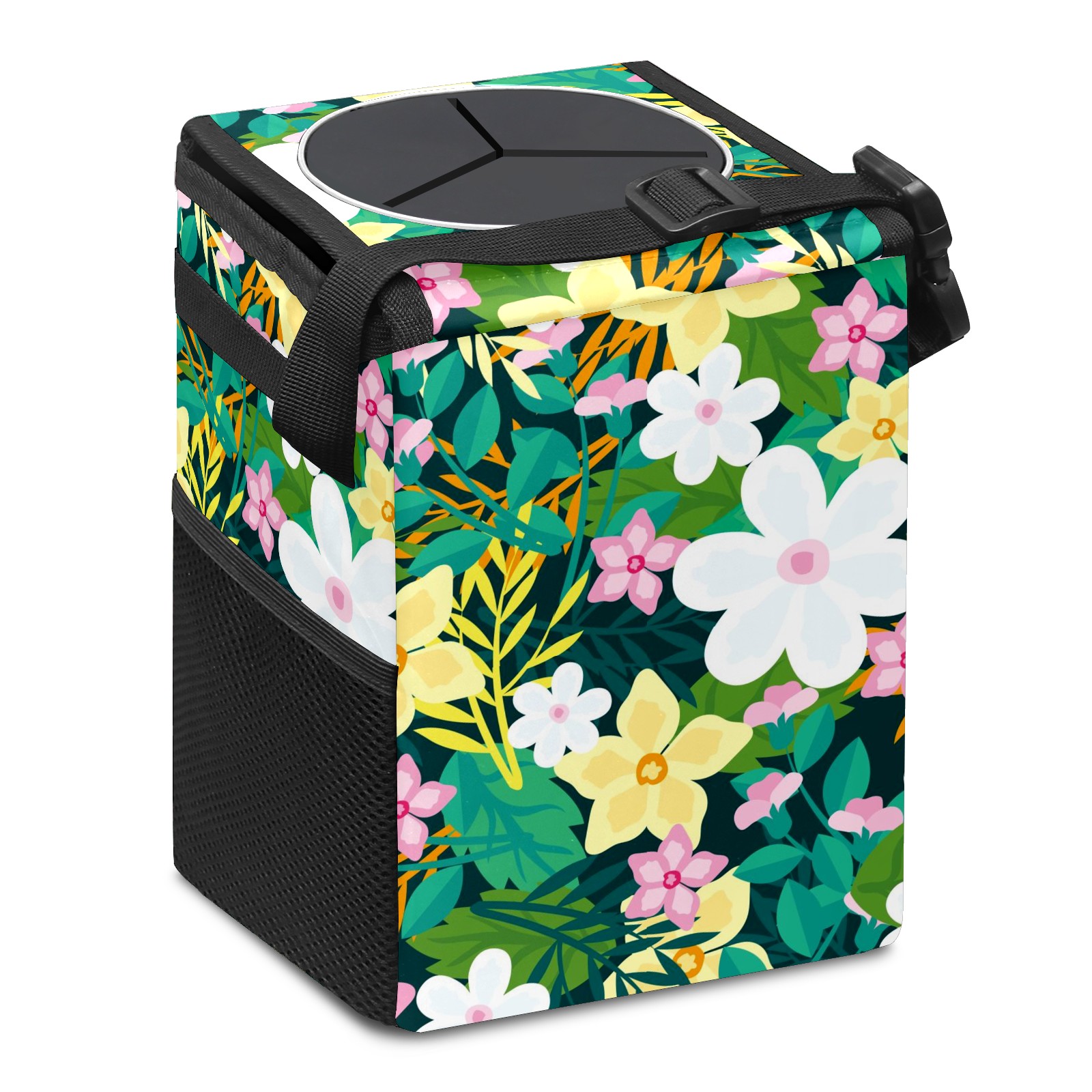 Car Garbage Can — Multi-functional, Lightweight Portable, Reusable Vehicle Trash Can, Waterproof with Sufficient Storage Capacity Floral Background